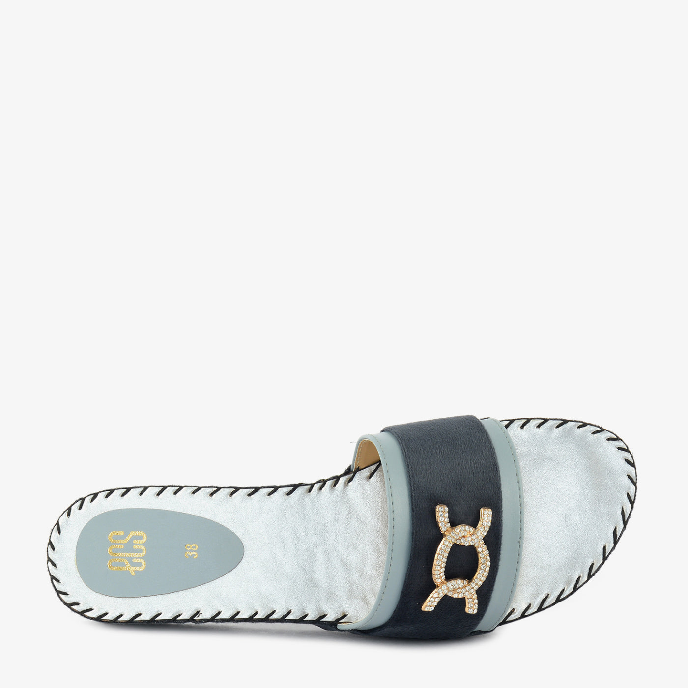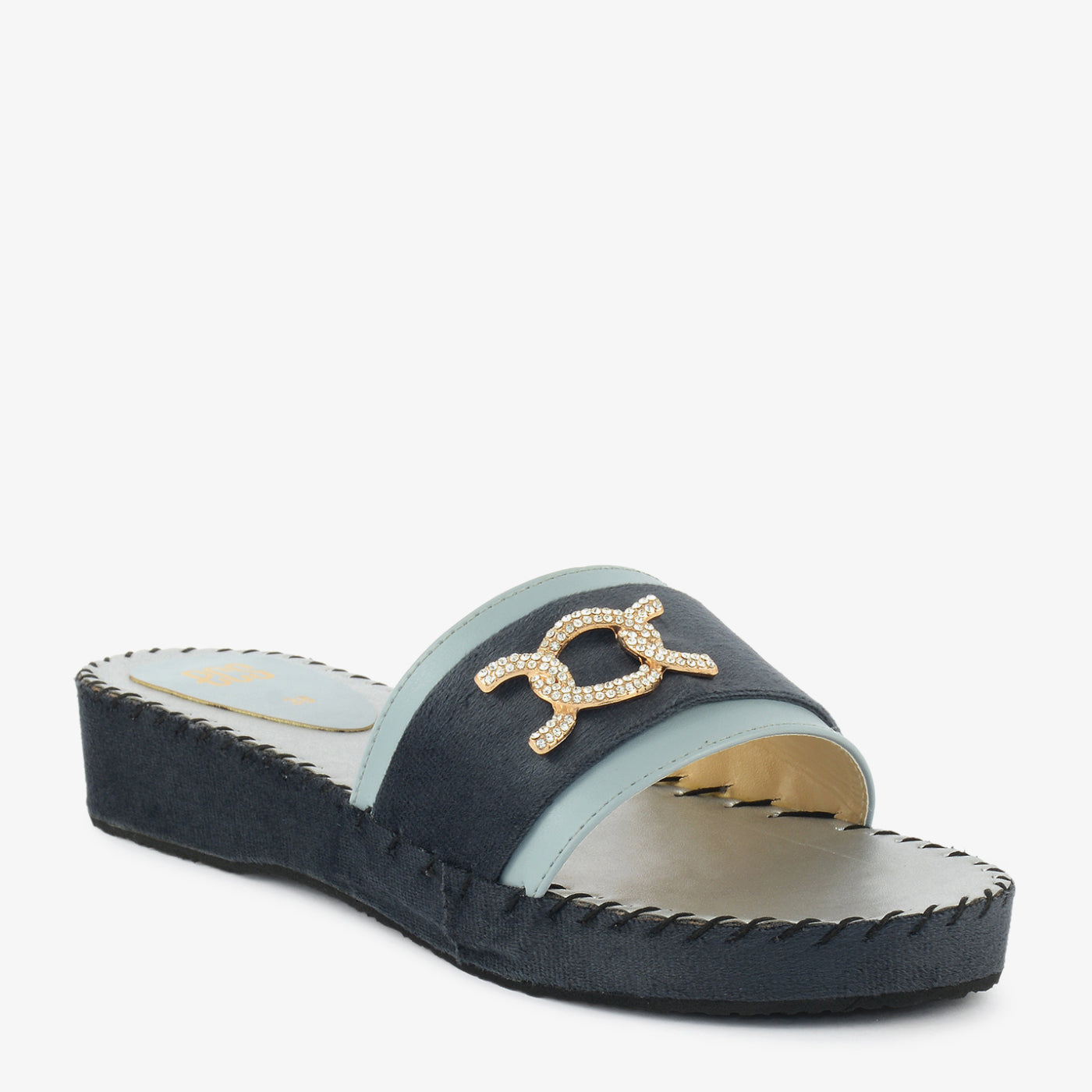 This slipper are the perfect blend of comfort and style. The soft suede upper and sparkling embellishments add a touch of glam to your outfit. The comfortable wedge heel and slip-on design make them easy to wear all day long.