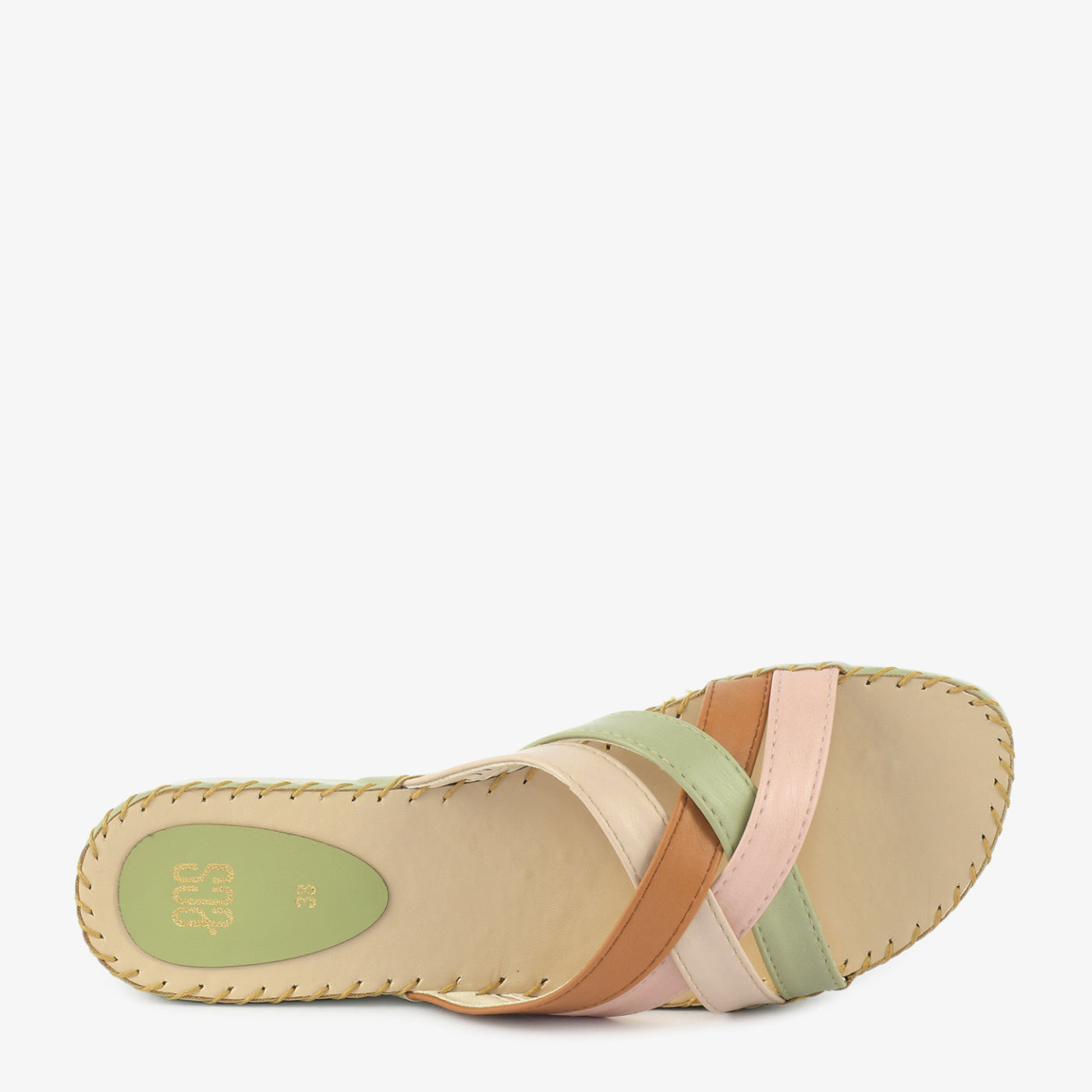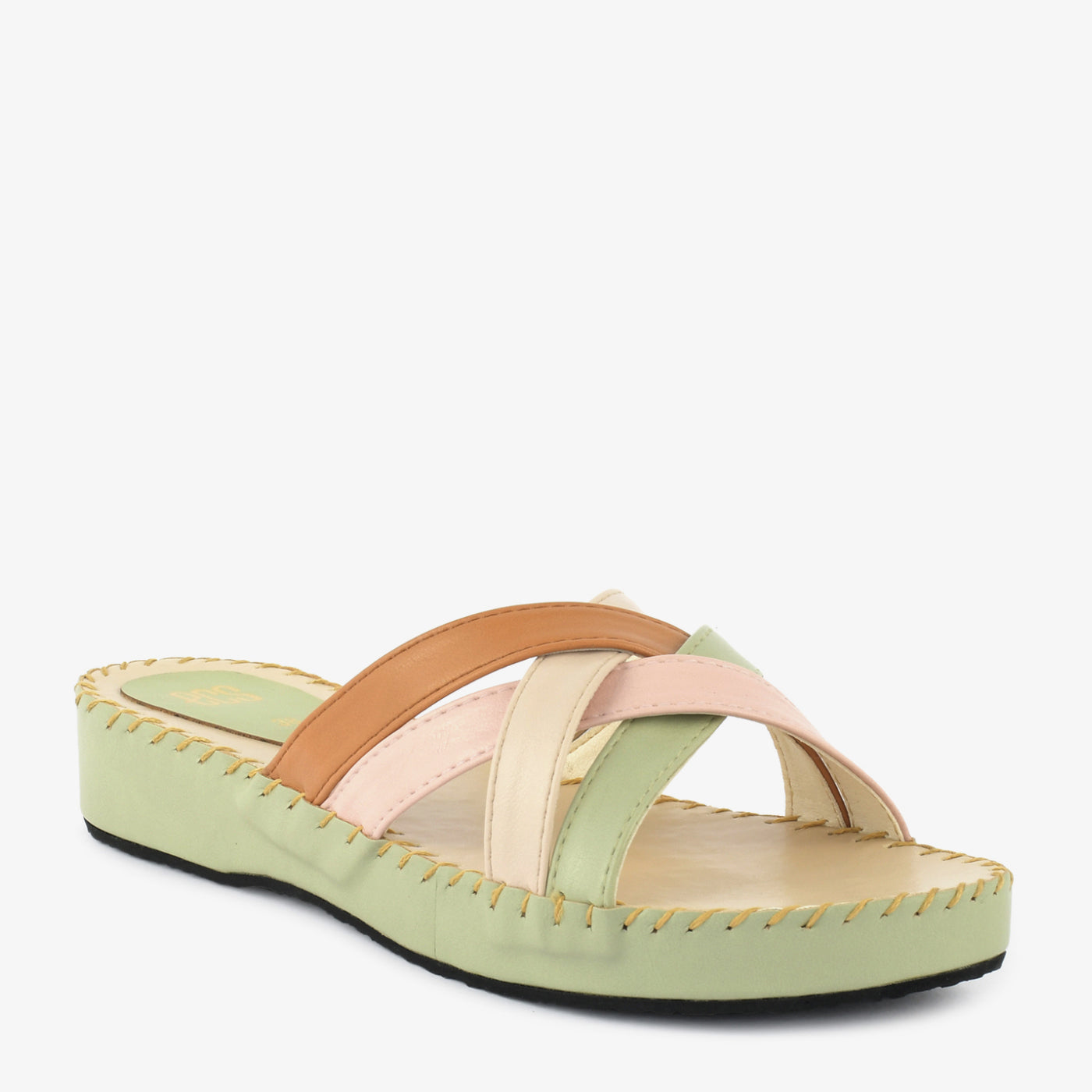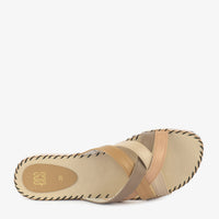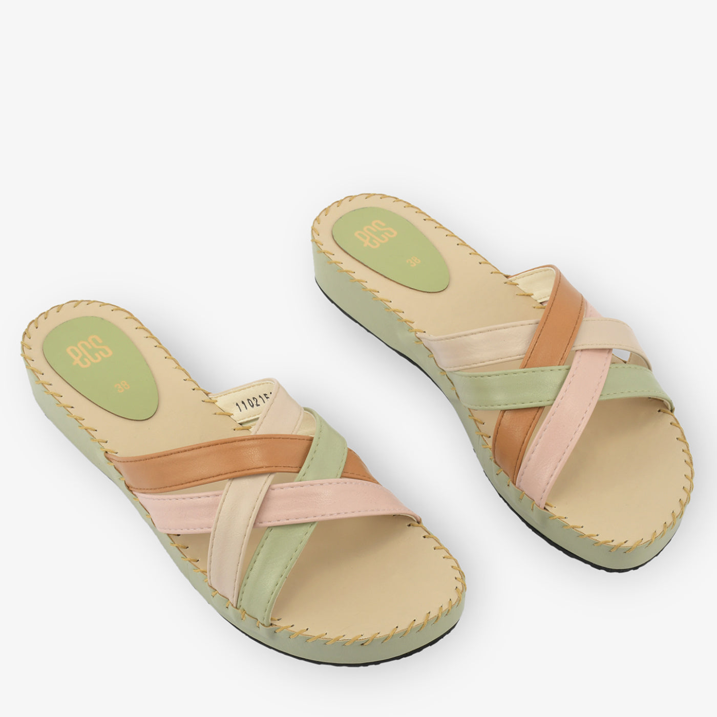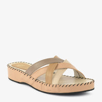 Experience effortless style and comfort with these Harmony Cross Slides. Featuring soft, crisscross straps in harmonious tones and a cushioned insole, these slides offer a relaxed and supportive fit for everyday wear. The low wedge heel provides a gentle lift for added comfort.