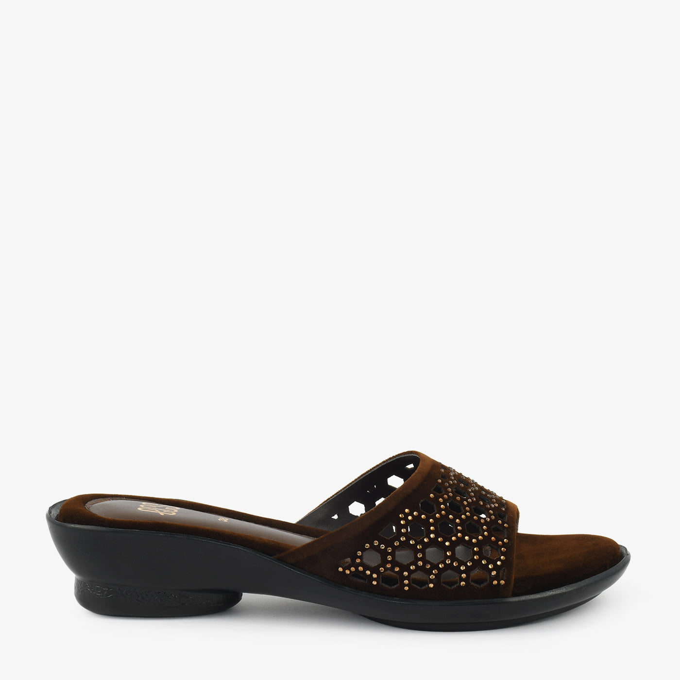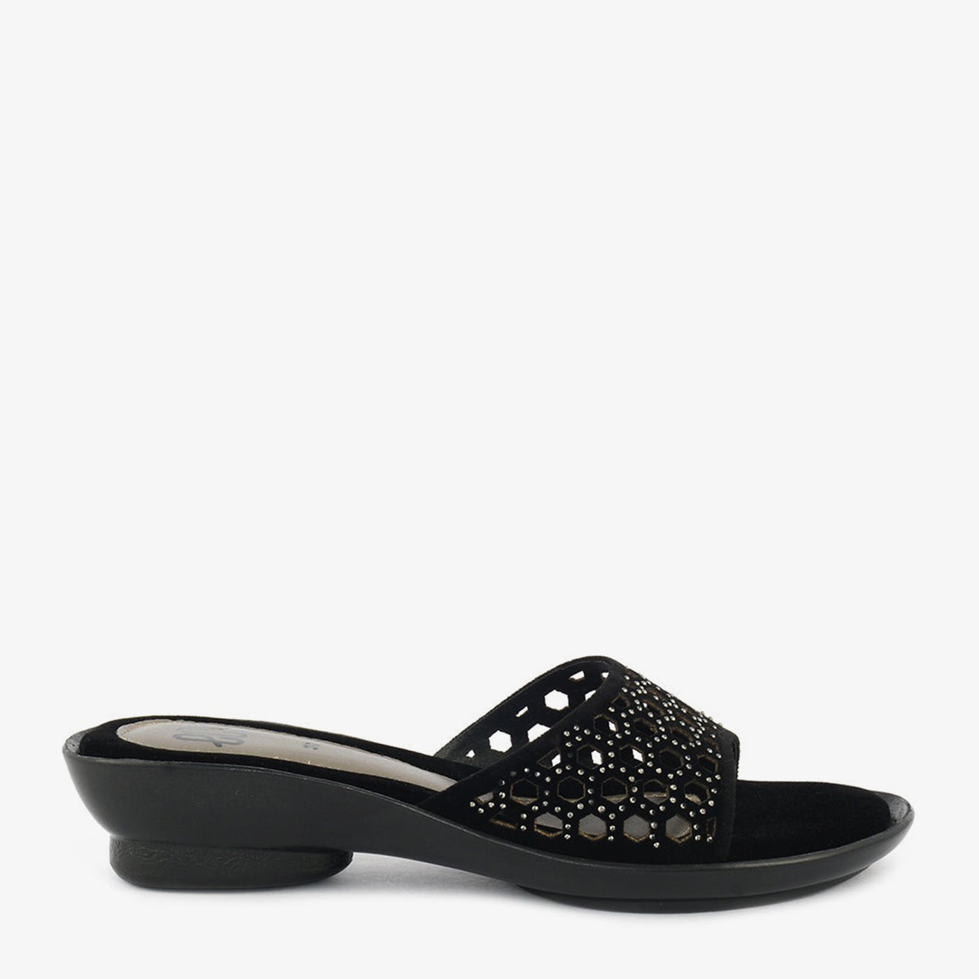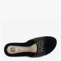 A chic slipper designed with a cut-work patterned upper that brings a touch of refinement to your casual wear. Its low heel provides subtle lift without compromising comfort, while the cushioned base ensures support throughout the day. A perfect blend of comfort and style for relaxed outings or at-home chic.