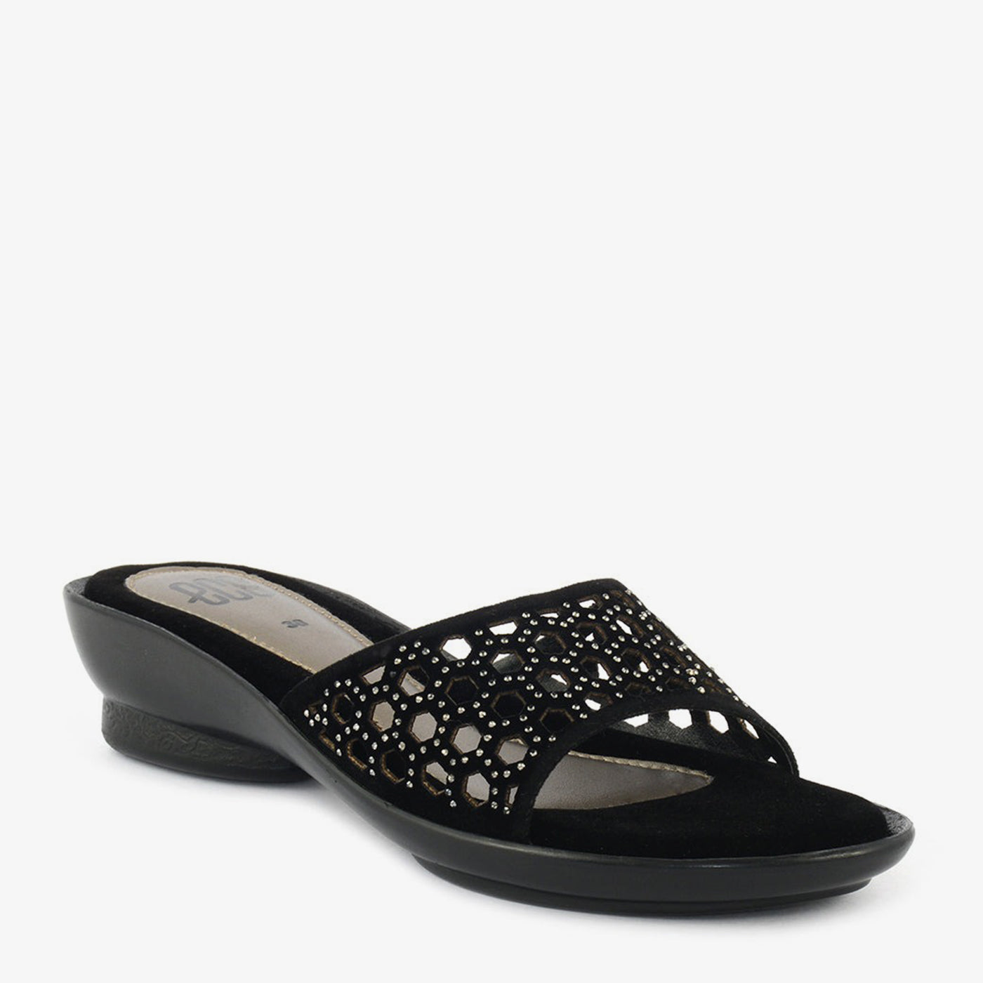 - Design: Laser-cut slide with embellished detailing