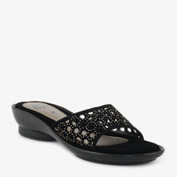 A chic slipper designed with a cut-work patterned upper that brings a touch of refinement to your casual wear. Its low heel provides subtle lift without compromising comfort, while the...