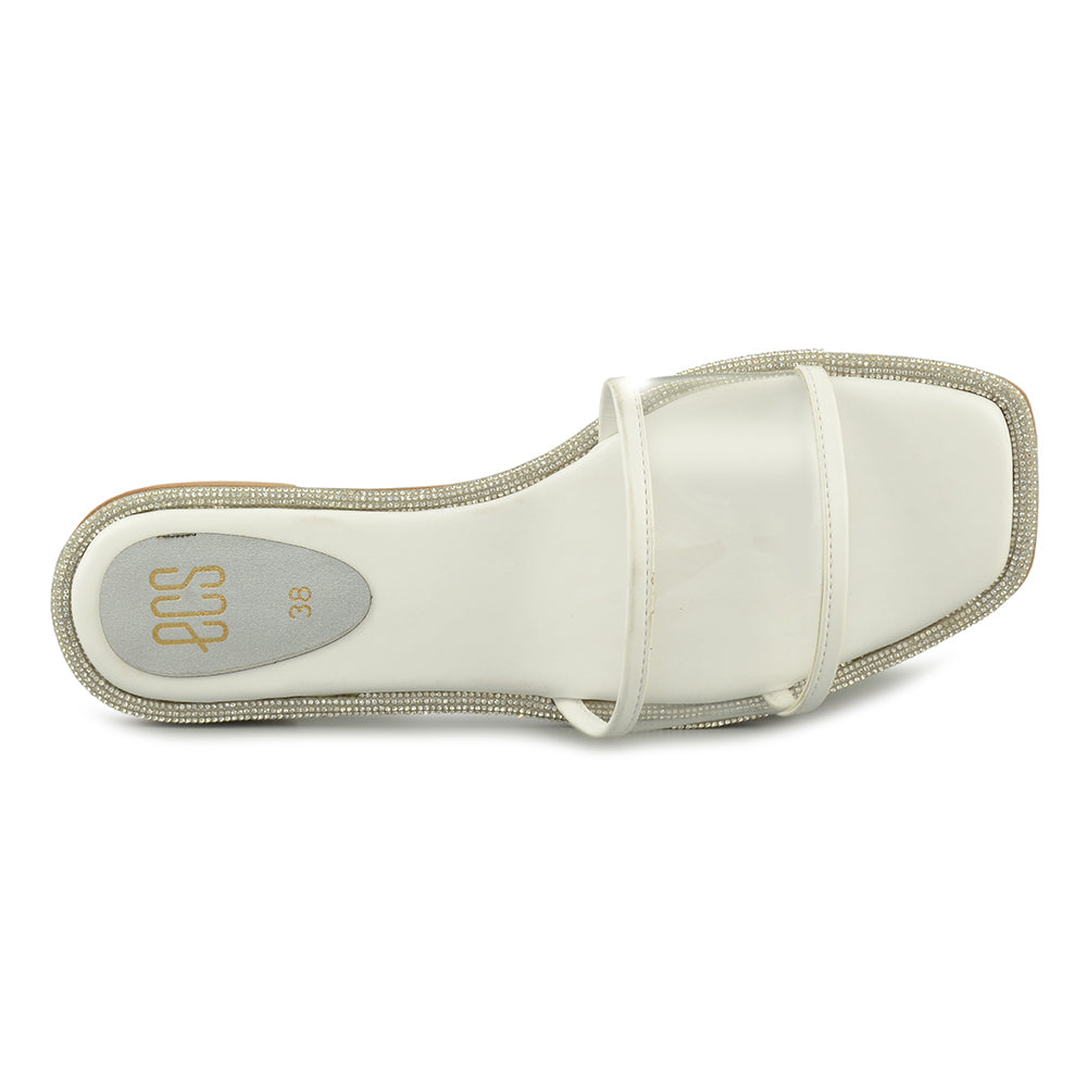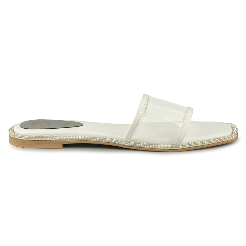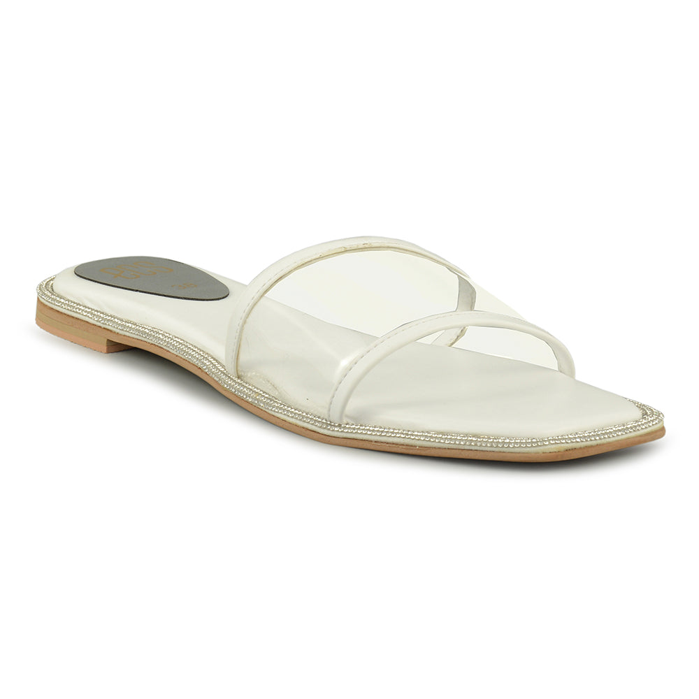 Step into elegance and luxury with our exclusive partywear slippers. Crafted with premium Acrylic upper material, these slippers exude sophistication and style. The T-Shape toe shape adds a unique flair to your look, perfect for any party or celebration. The Flat heel height and Rubber sole provide superior comfort, ensuring you dance the night away without a worry. Stand out with the exquisite Nagina Welt feature, adding a touch of glamour to your ensemble. The shiny finish enhances your overall appeal, making you the center of attention. Slip into these chic slippers effortlessly with the convenient Slip-On fastening. Make a fashion statement with our partywear slippers today!
