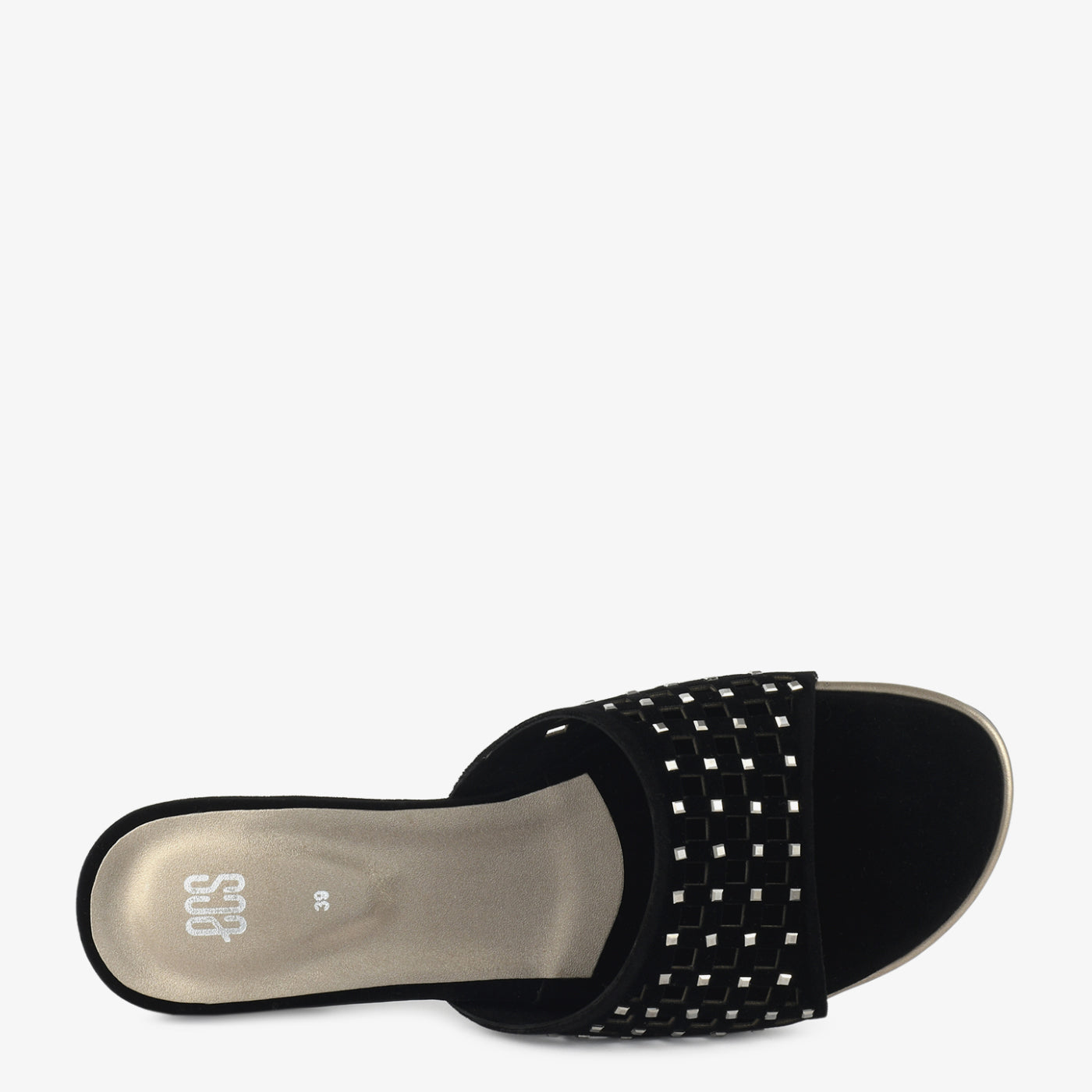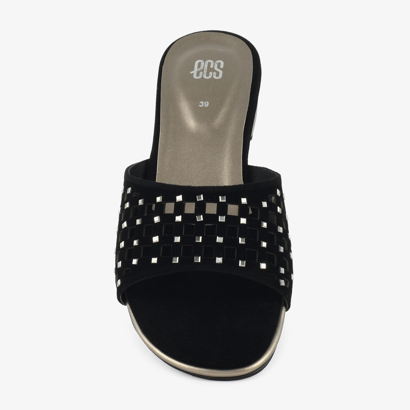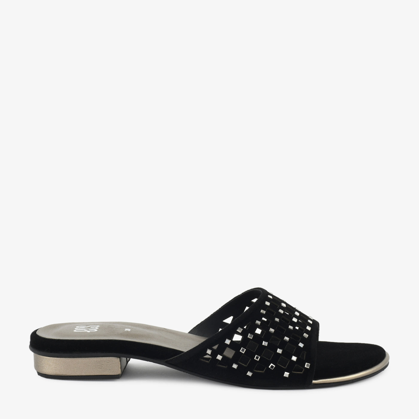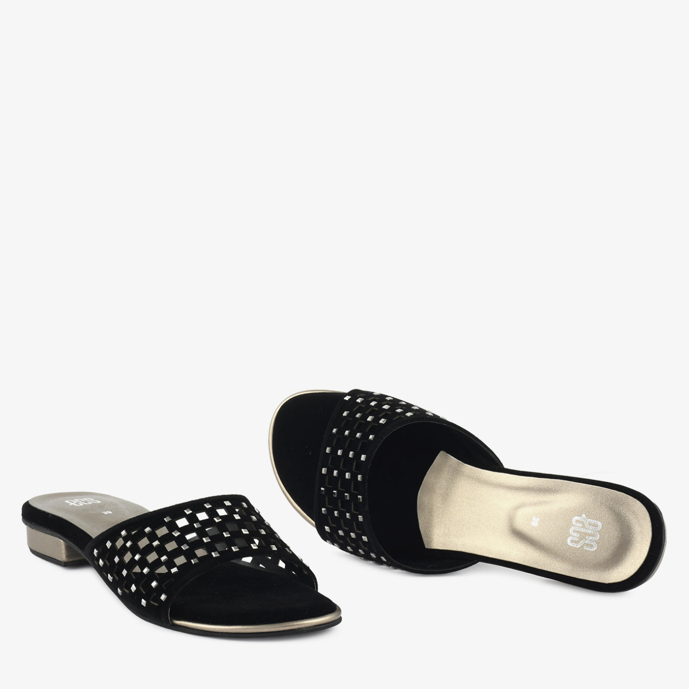 A sleek open-toe slipper featuring a modern cut-out strap designed for breathability and style. The smooth footbed provides a soft feel, while the low heel adds just the right amount of lift for everyday comfort. Perfect for casual hangouts, daily errands, or light festive wear. Offers refined simplicity with a contemporary twist.