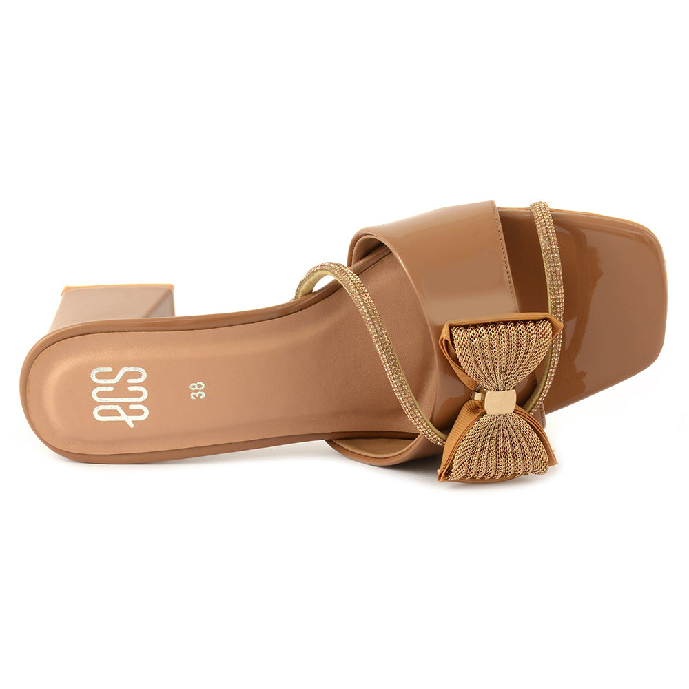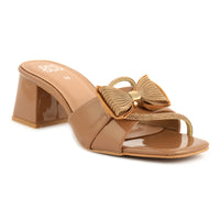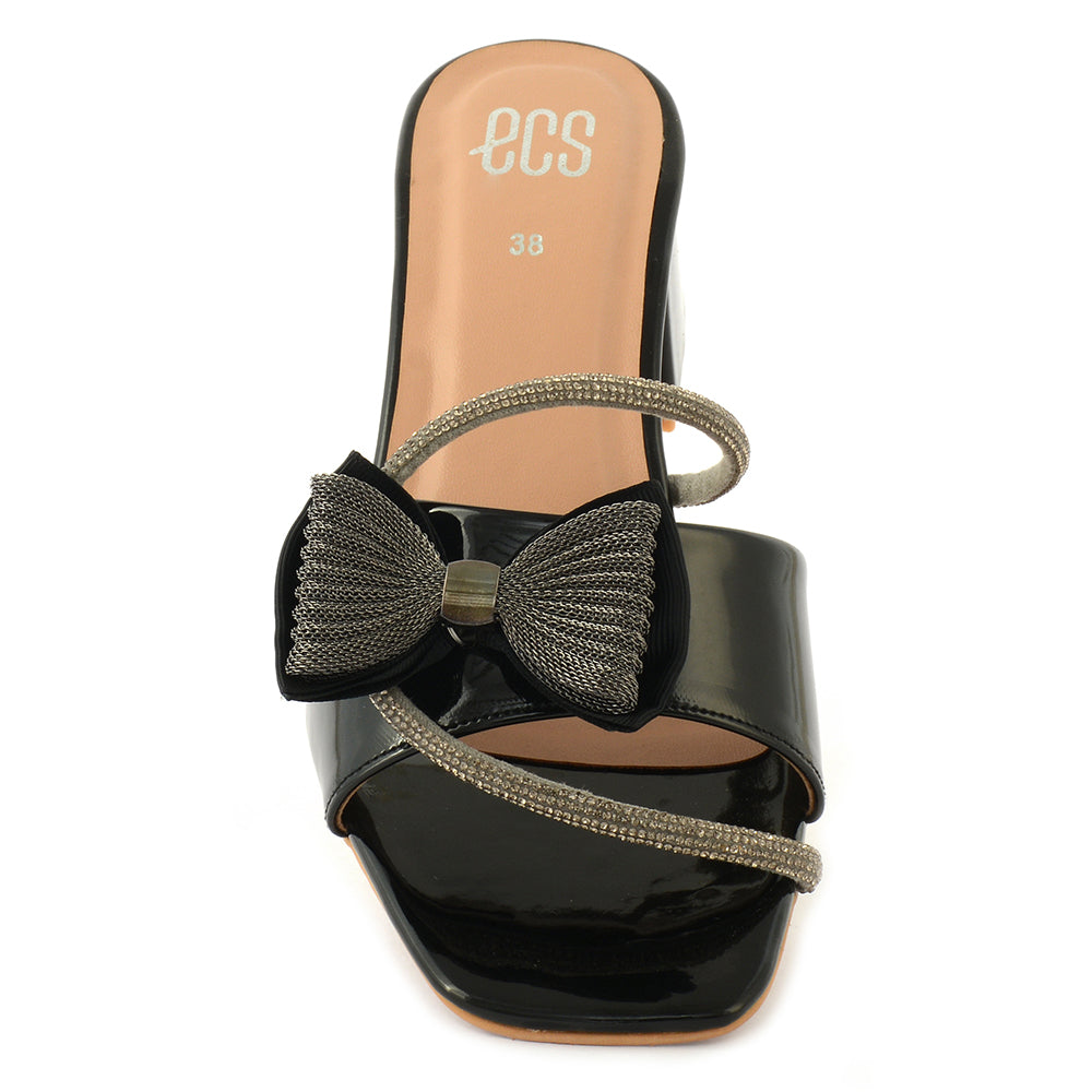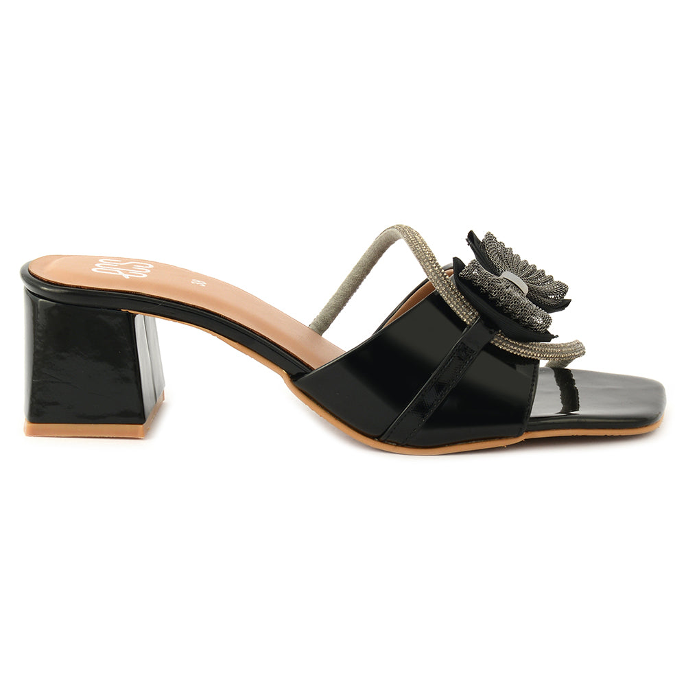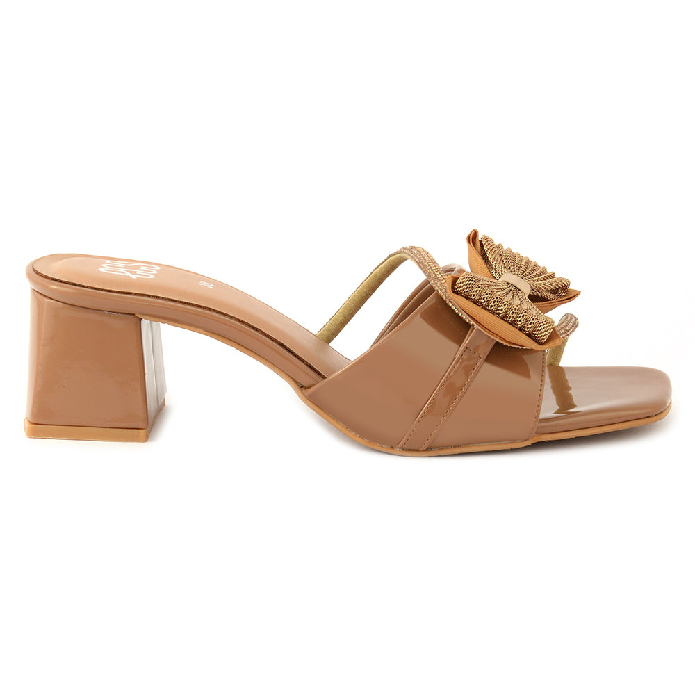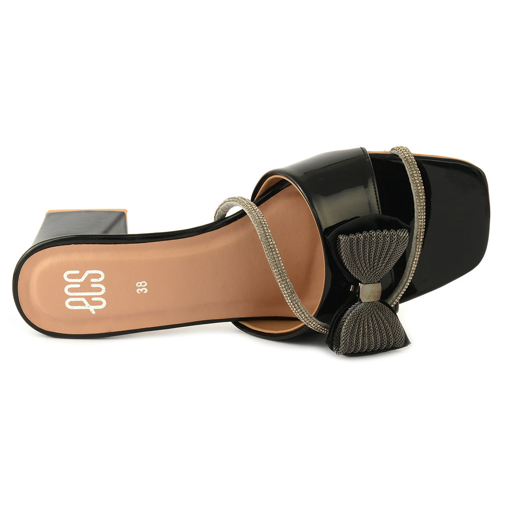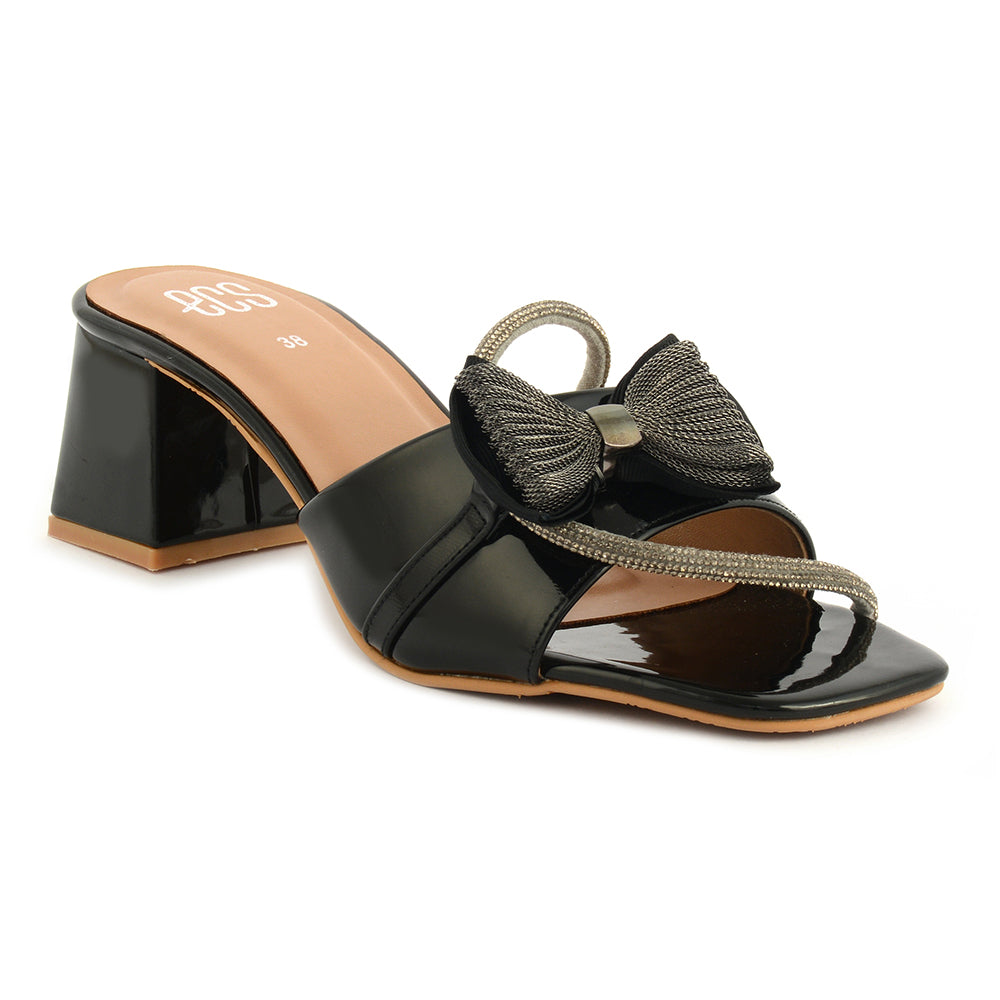 Slip into fashion-forward style and convenience with our trendy slippers. Crafted with synthetic patent uppers, these slippers offer a sleek and modern look. The square toe shape adds a unique and contemporary touch to your ensemble. The rubber sole provides traction and stability, making them suitable for everyday wear. With a 2" heel height, these slippers add a subtle lift to your silhouette. The bow tie feature adds a charming and feminine element to the design. The shiny finish adds a polished and sophisticated touch. Simply slip them on with ease and step out in style with these fashionable square-toe slippers.