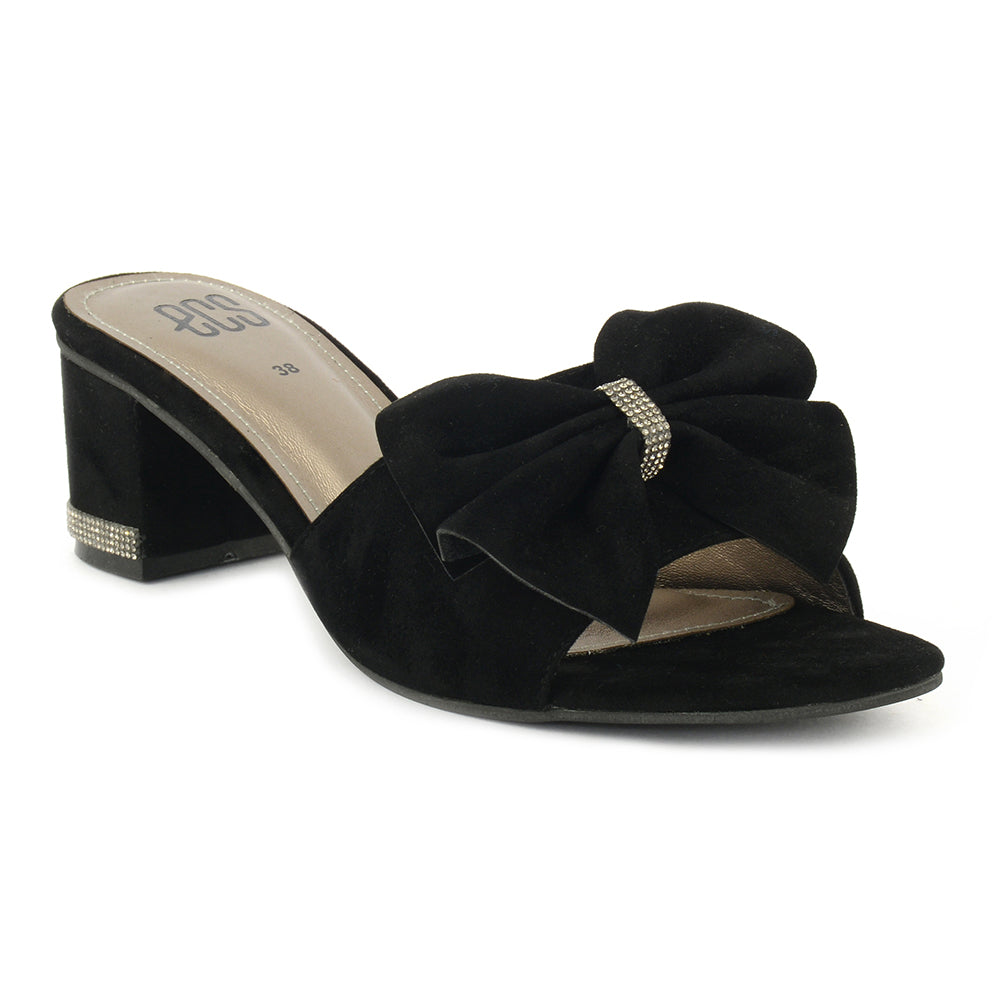 Step into elegance with our Party Wear Slippers, featuring a Round toe shape and a stylish 2" heel height. Crafted with Synthetic Suede upper material and Synthetic Pu lining, these slippers exude luxury. The charming Bow Tie feature adds a touch of sophistication to your outfit. With a sleek matte finish and easy slip-on fastening, these slippers are perfect for any party or event. Elevate your party look and make a fashion statement with these stunning slippers that combine style and grace effortlessly. Get ready to shine and be the life of the party with these trendy slipper choices!