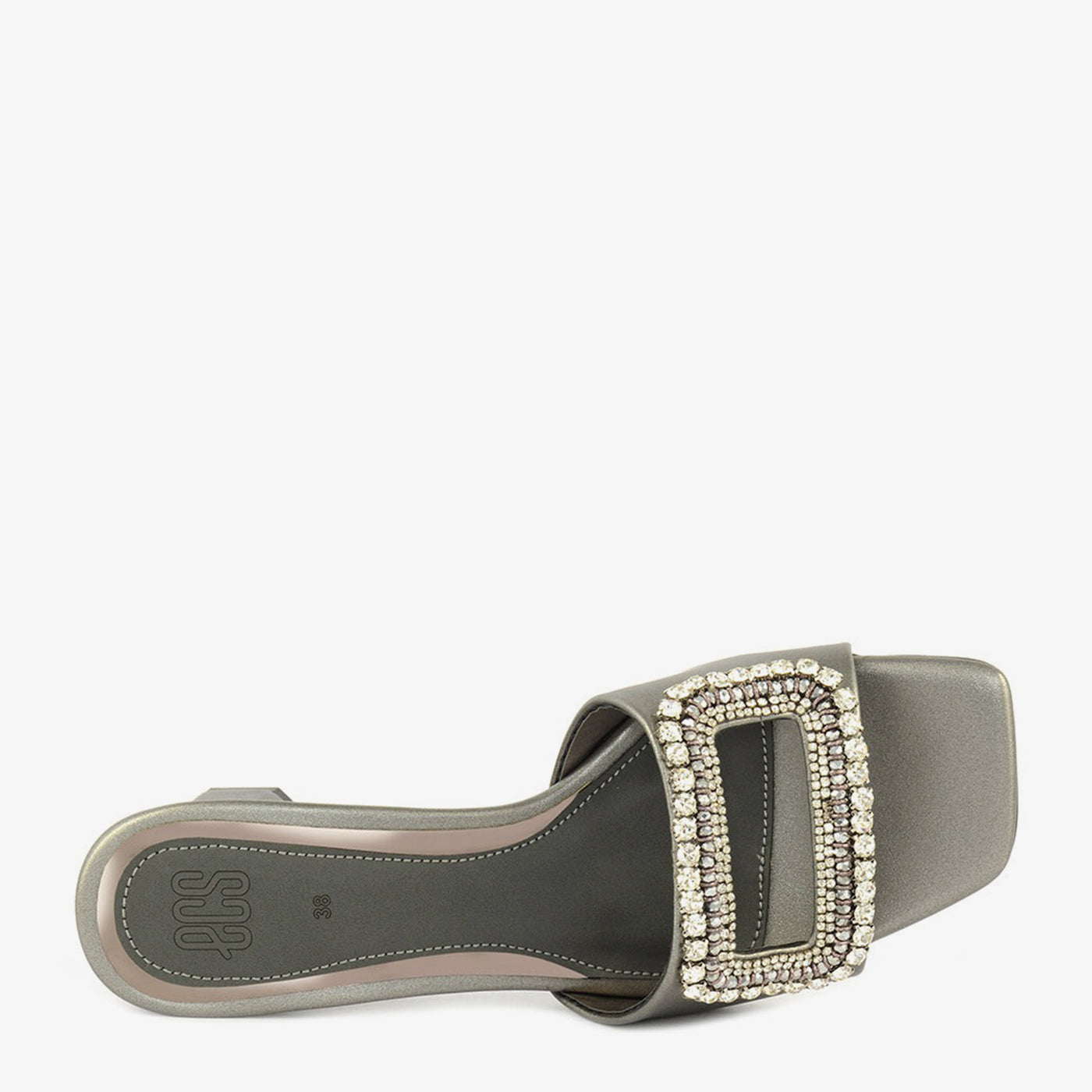Elevate your party ensemble with our Synthetic Pu Party Wear Slippers. Crafted for style and comfort, these slippers boast a chic square toe shape and a cushioned Synthetic Pu lining. The 2" heel provides an elegant lift, while the rubber sole ensures a steady stride. Adorned with exquisite embellishments and a matte-finished fastening, they exude sophistication. Effortless slip-on design and customizable width make these slippers the perfect choice for your celebratory moments, allowing you to dance the night away in both style and ease.