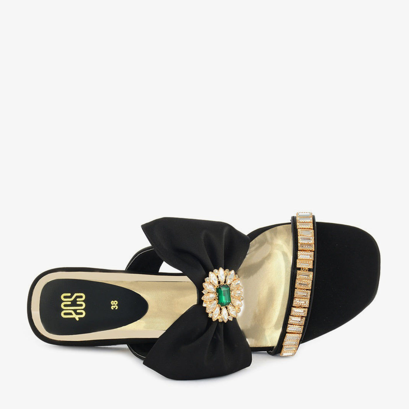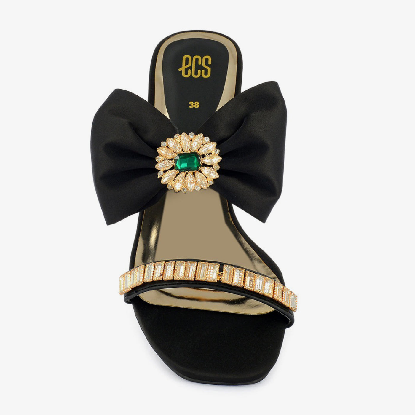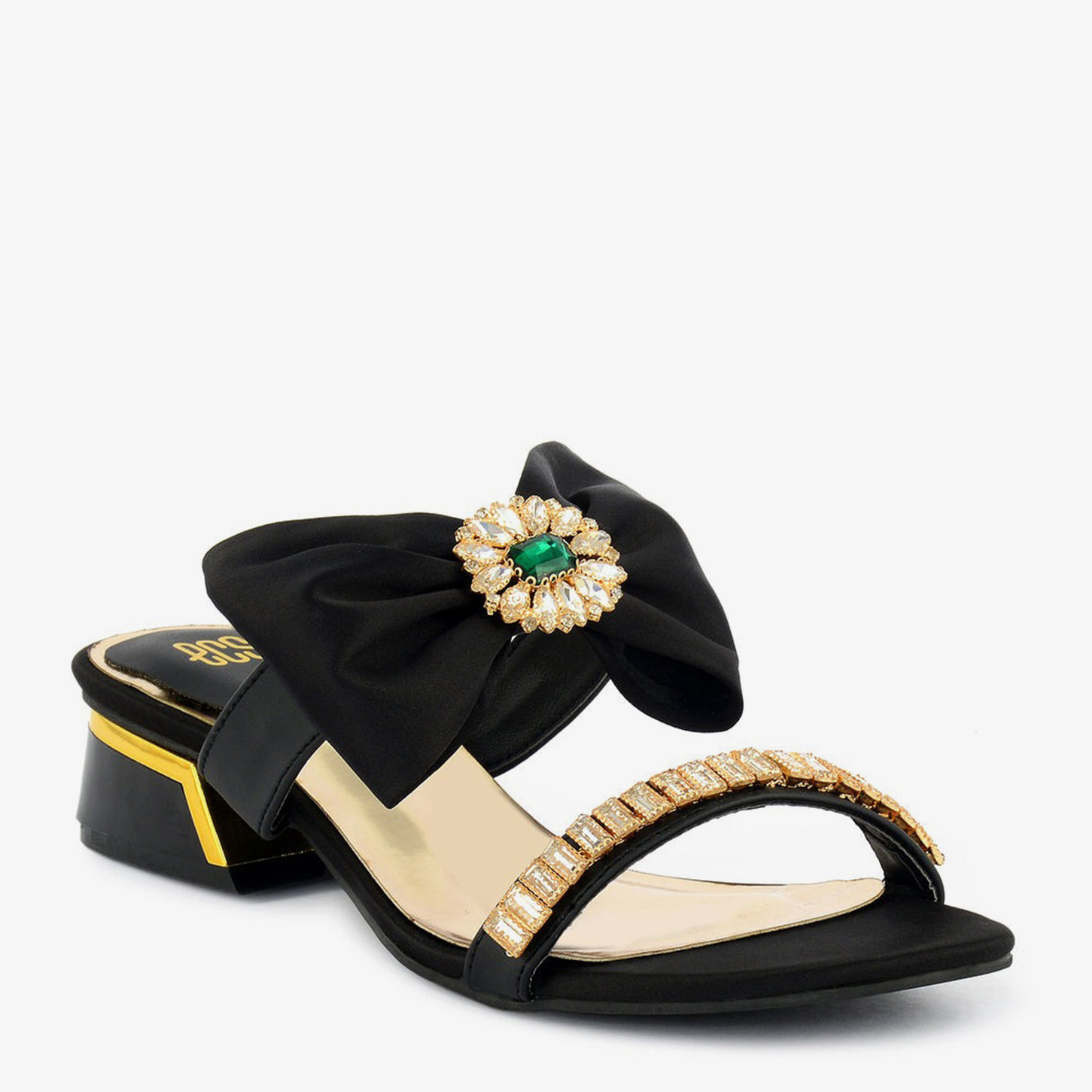 Introducing the Elegance Touch Slippers, designed to blend comfort with chic style. Made from premium synthetic PU, these slippers feature a trendy square toe shape and a 1.5-inch heel for just the right amount of elevation. The delightful combination of a bow and sheesha nagina detailing adds a unique flair, while the matte finish lends a sophisticated touch. With a convenient slip-in design, these slippers are perfect for casual outings or dressing up any ensemble.