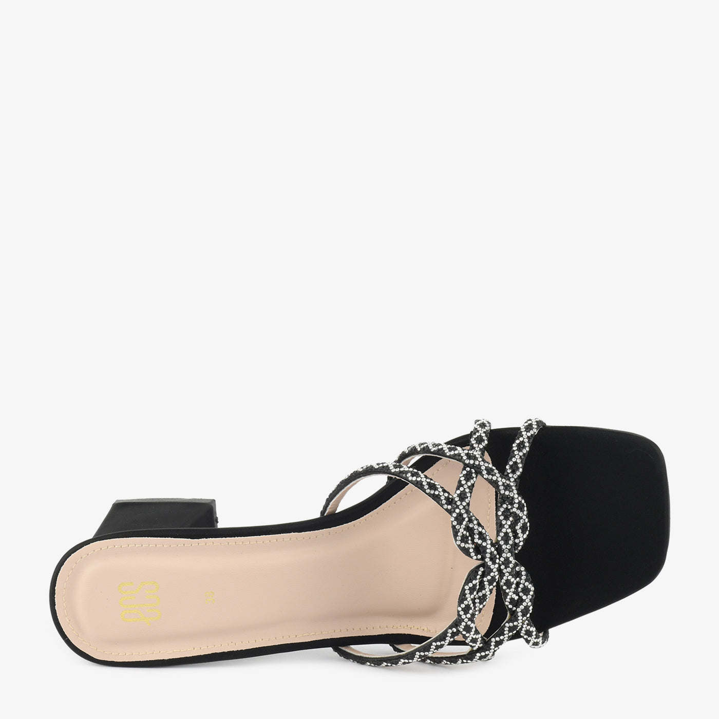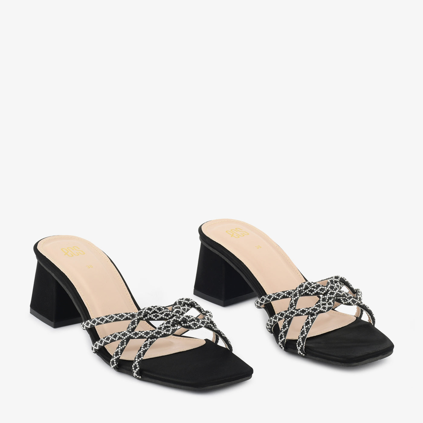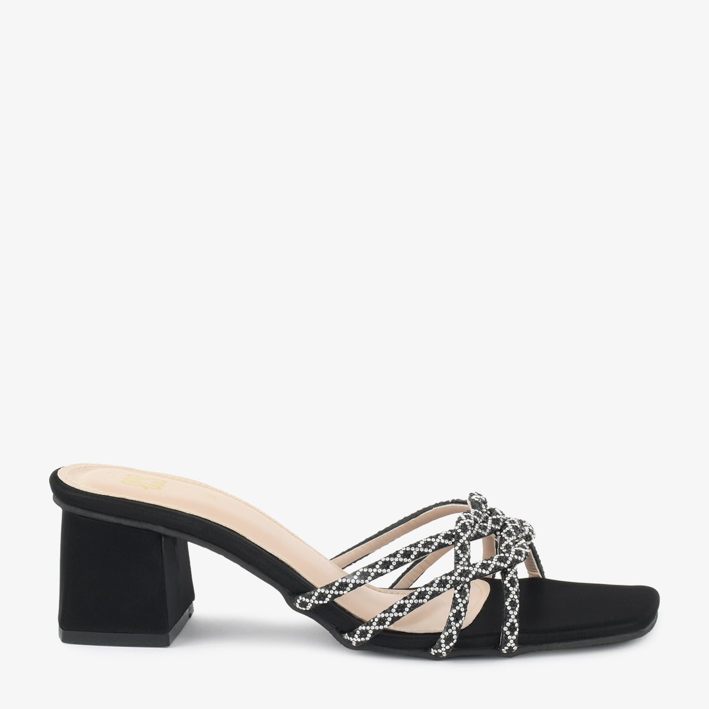 Add a touch of modern glamour to your evening ensemble with these Knotted Strap Heels. Featuring a unique knotted strap design with subtle embellishments and a comfortable block heel, these slipper offer a stylish and refined aesthetic. The slip-on style ensures ease of wear for any special occasion.
