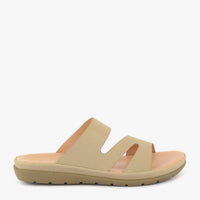 Designed for everyday ease, the Ease Comfort Slide features wide supportive straps and a cushioned footbed. With a gently contoured sole, it’s made to carry you through relaxed routines effortlessly. Minimal yet secure, it offers a reliable fit.