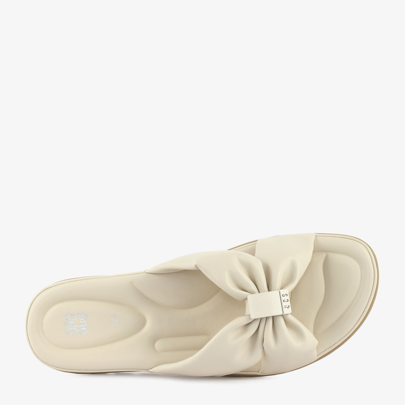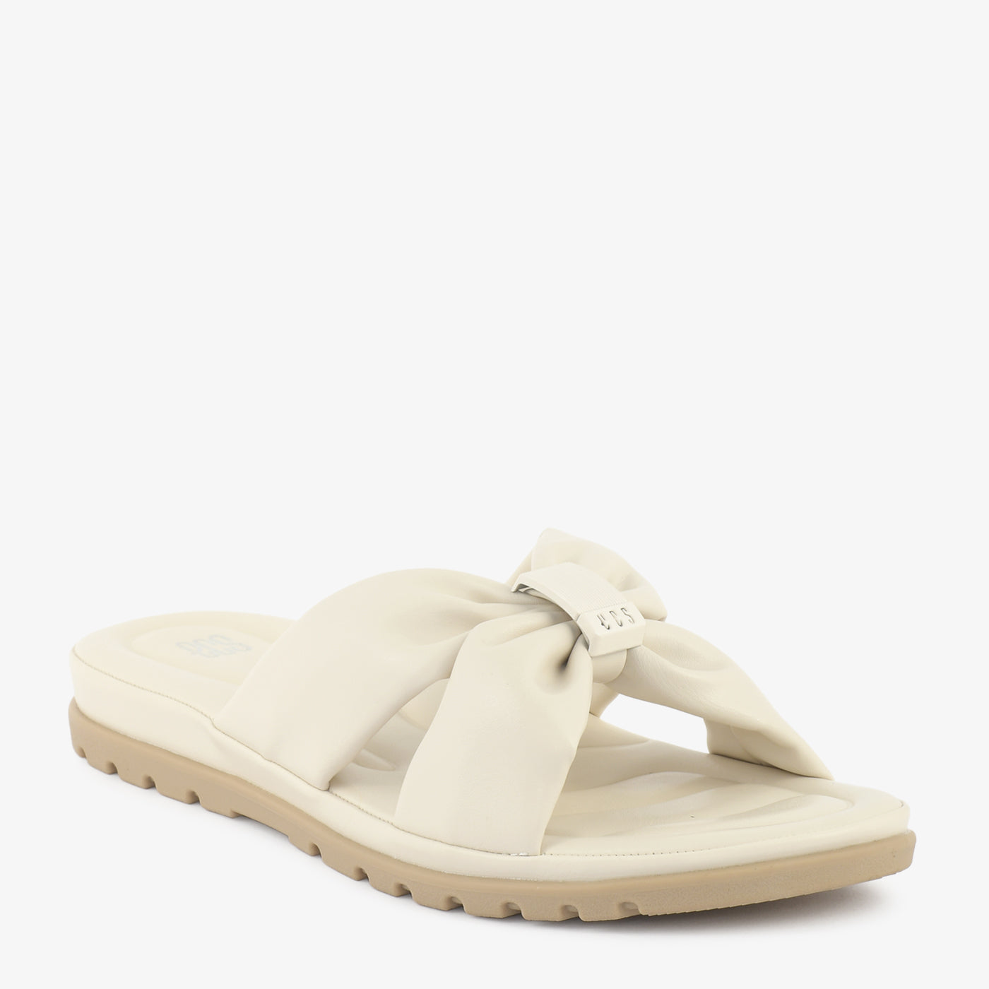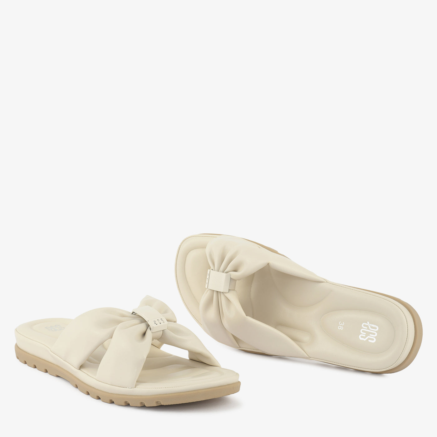 Step into effortless comfort and style with these chic taupe knot slides. The soft, puffed strap with a stylish knot detail adds a touch of contemporary elegance, perfect for the relaxed pace of everyday life. The comfortable, slightly contoured sole makes them ideal for running errands or casual outings around.