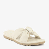 Step into effortless comfort and style with these chic taupe knot slides. The soft, puffed strap with a stylish knot detail adds a touch of contemporary elegance, perfect for the relaxed pace of everyday life. The comfortable, slightly contoured sole makes them ideal for running errands or casual outings around.