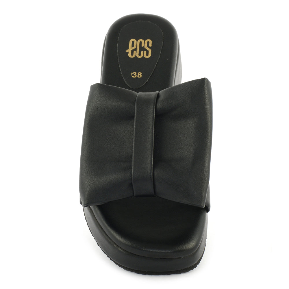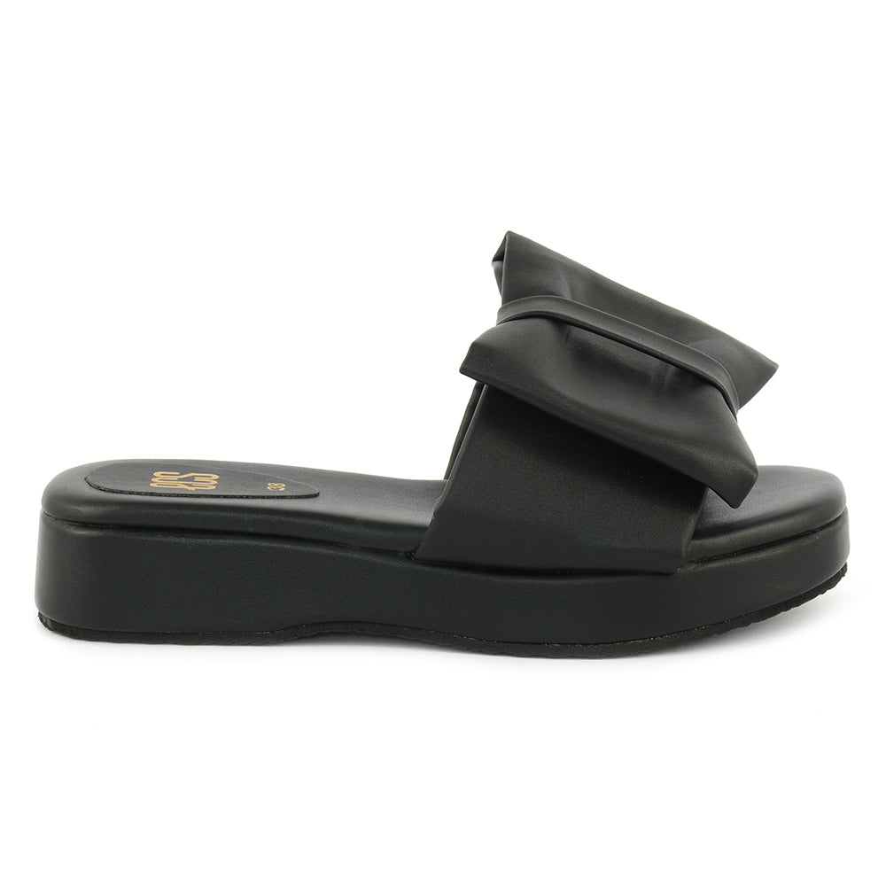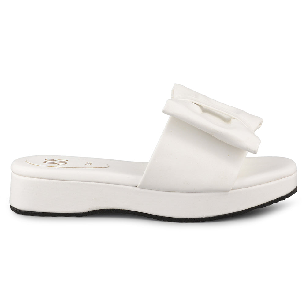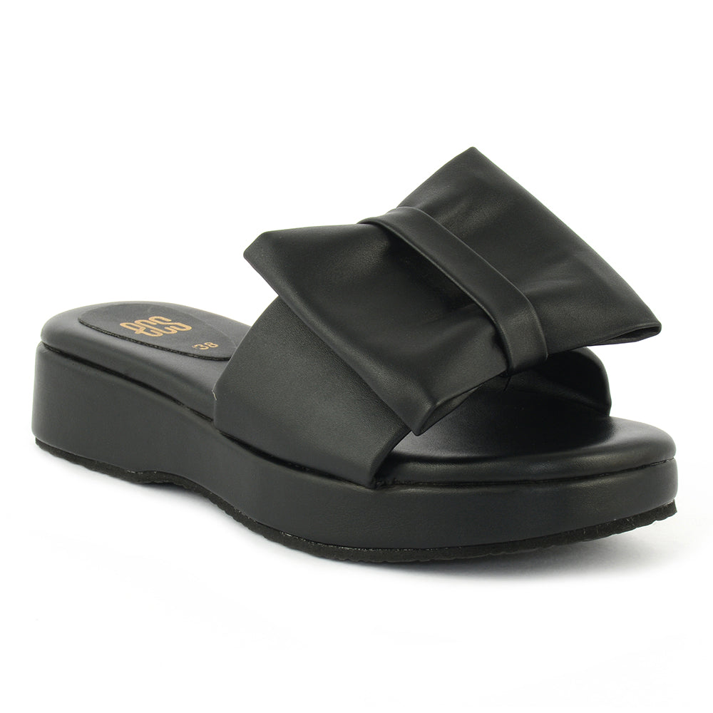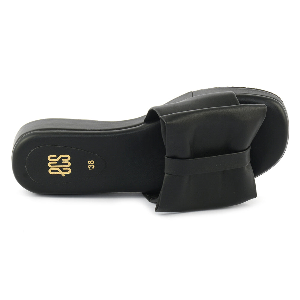 Step into style and comfort with our elegant slipper collection. Crafted with a Synthetic PU upper, these slippers offer a sleek and polished look. The round toe shape provides a roomy and comfortable fit, while the EVA sole ensures lightweight and flexible wear. With a modest 2" heel height, these slippers give a subtle lift to your stride. The charming bow tie feature adds a touch of femininity and sophistication. The matte finish gives these slippers a refined and classy appearance, perfect for any occasion. Slip them on effortlessly with the convenient slip-on fastening. Elevate your footwear game with our fashionable and versatile slipper collection. Treat your feet to style, quality, and comfort.