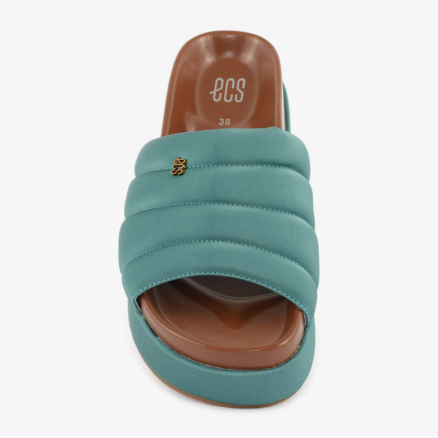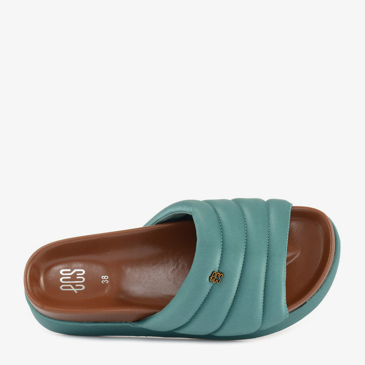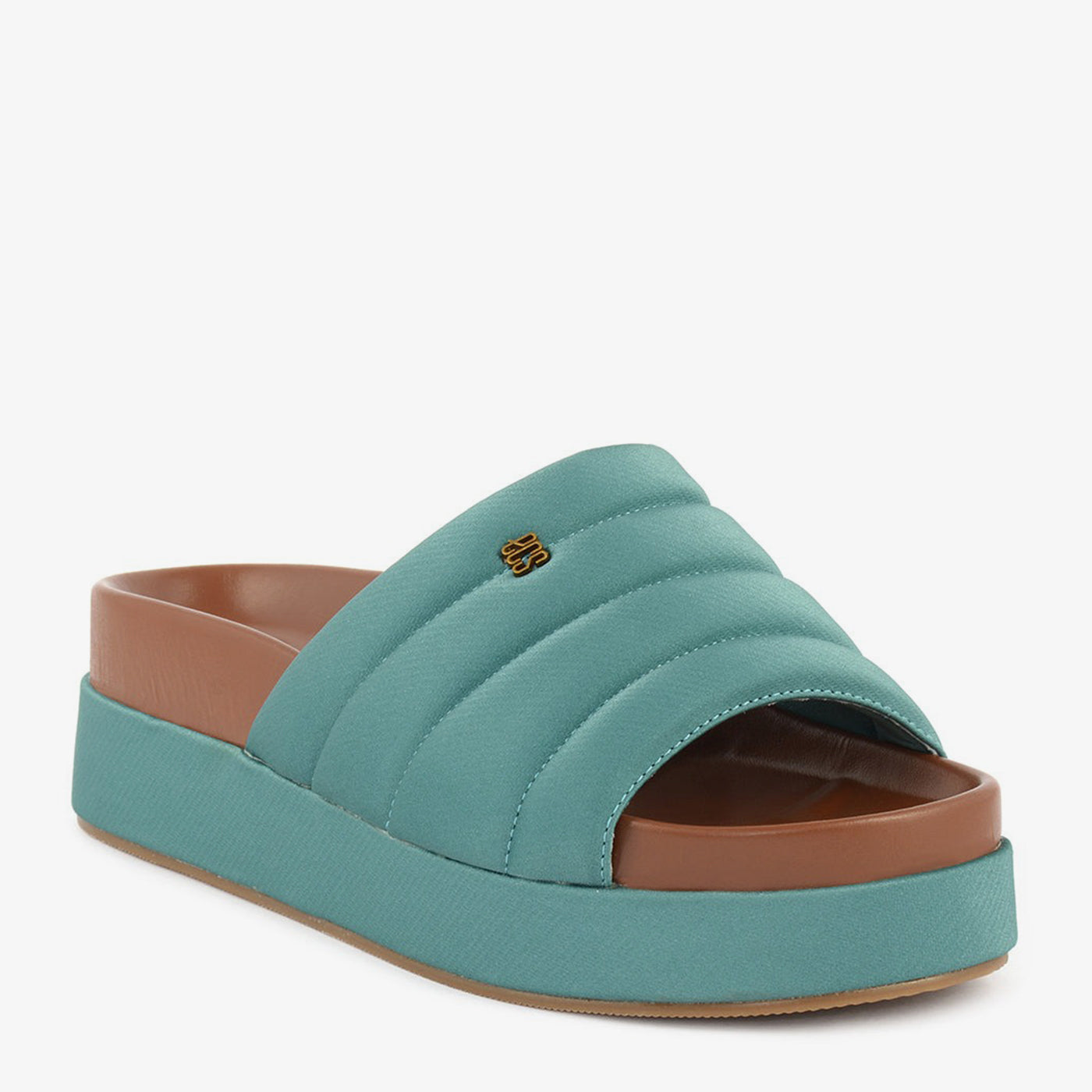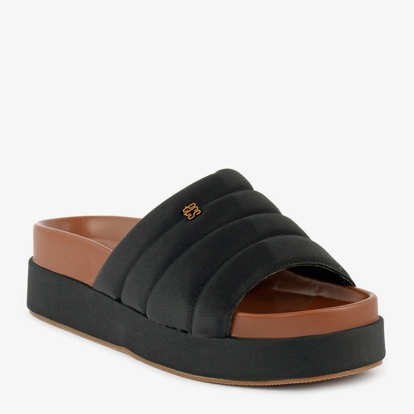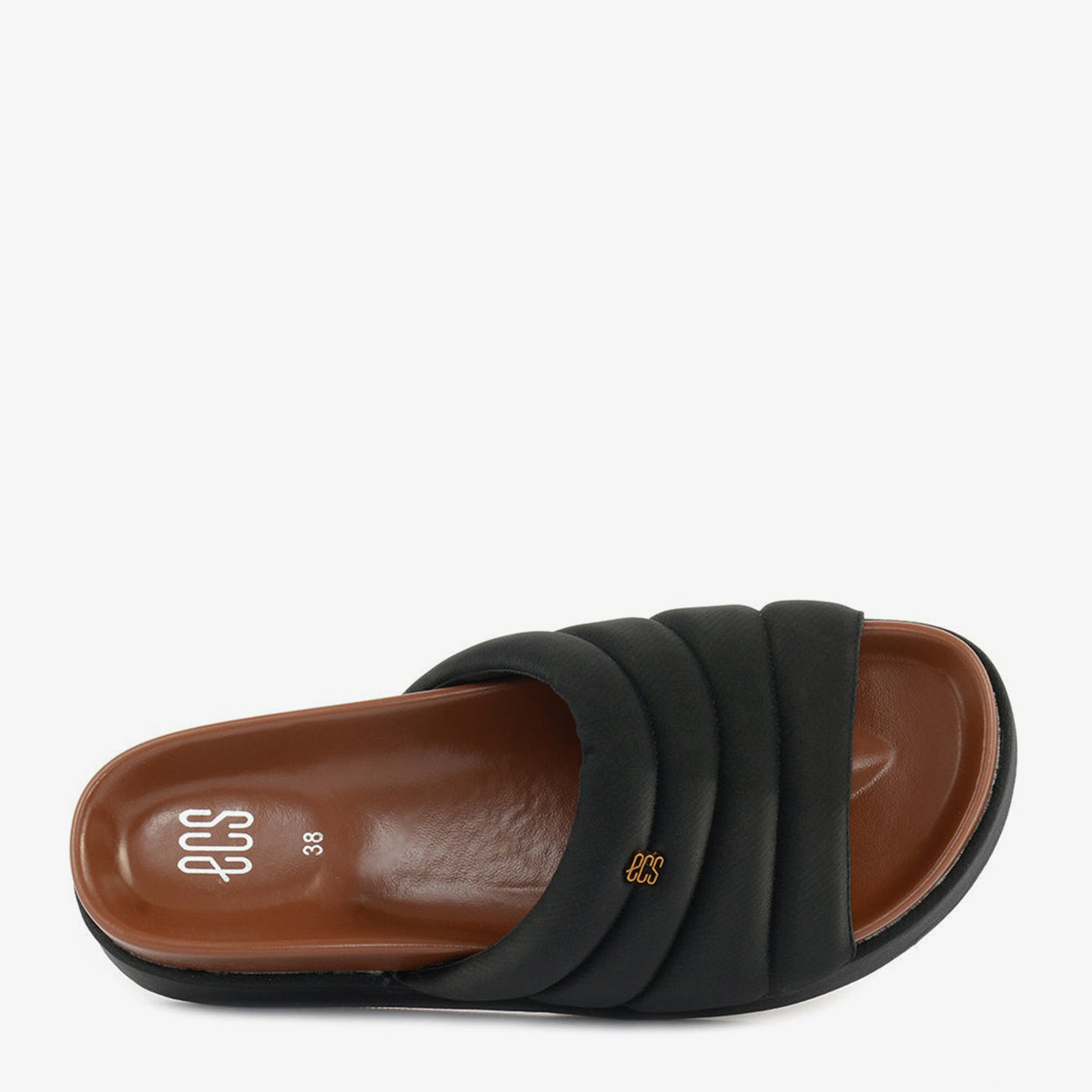 A cozy platform slipper featuring a quilted band and smooth inner padding for everyday softness. Minimal design meets elevated comfort with a clean, cushioned sole.
