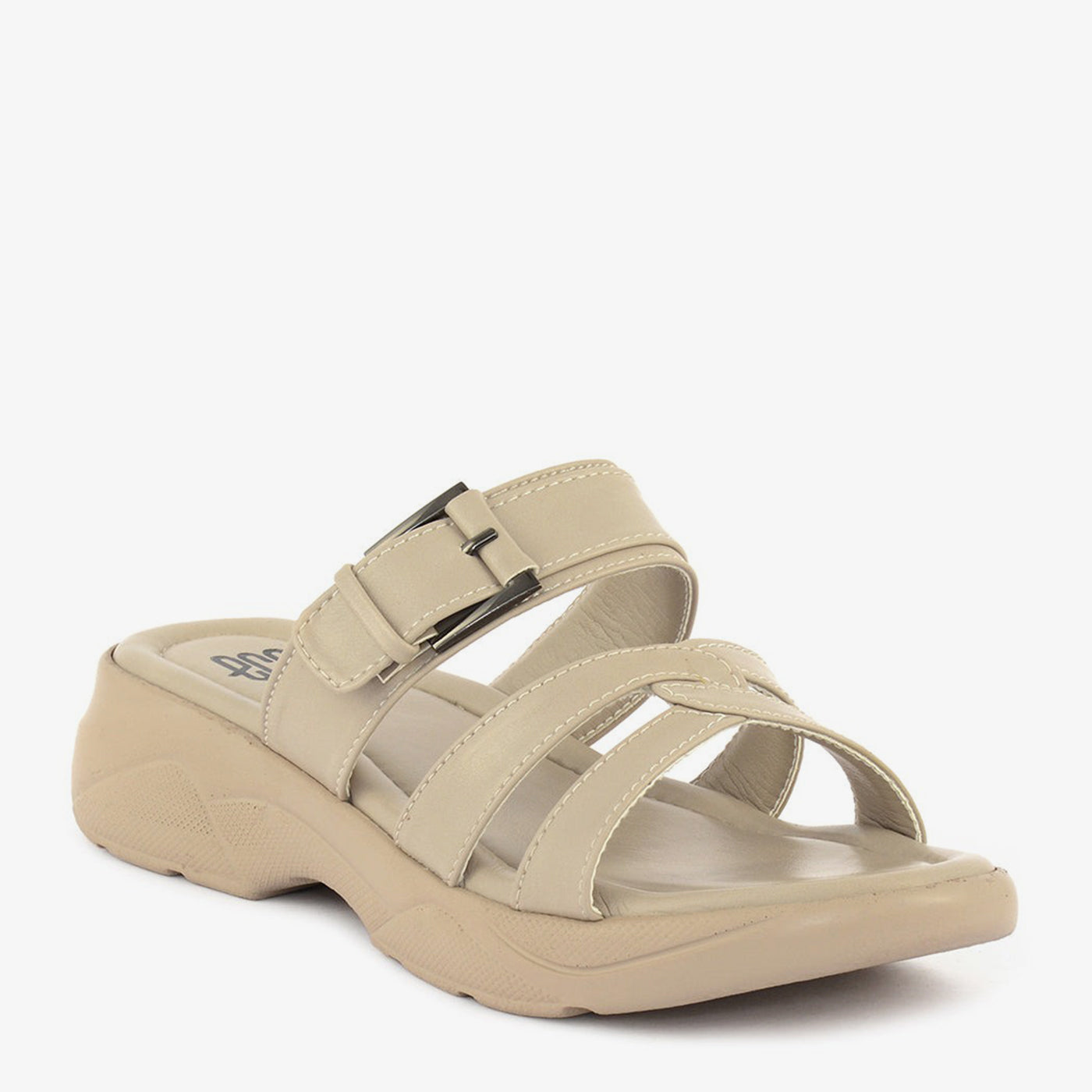 A comfort-first slipper with adjustable buckle straps and a lightly cushioned sole. Designed for long wear and daily ease with minimal detailing.
