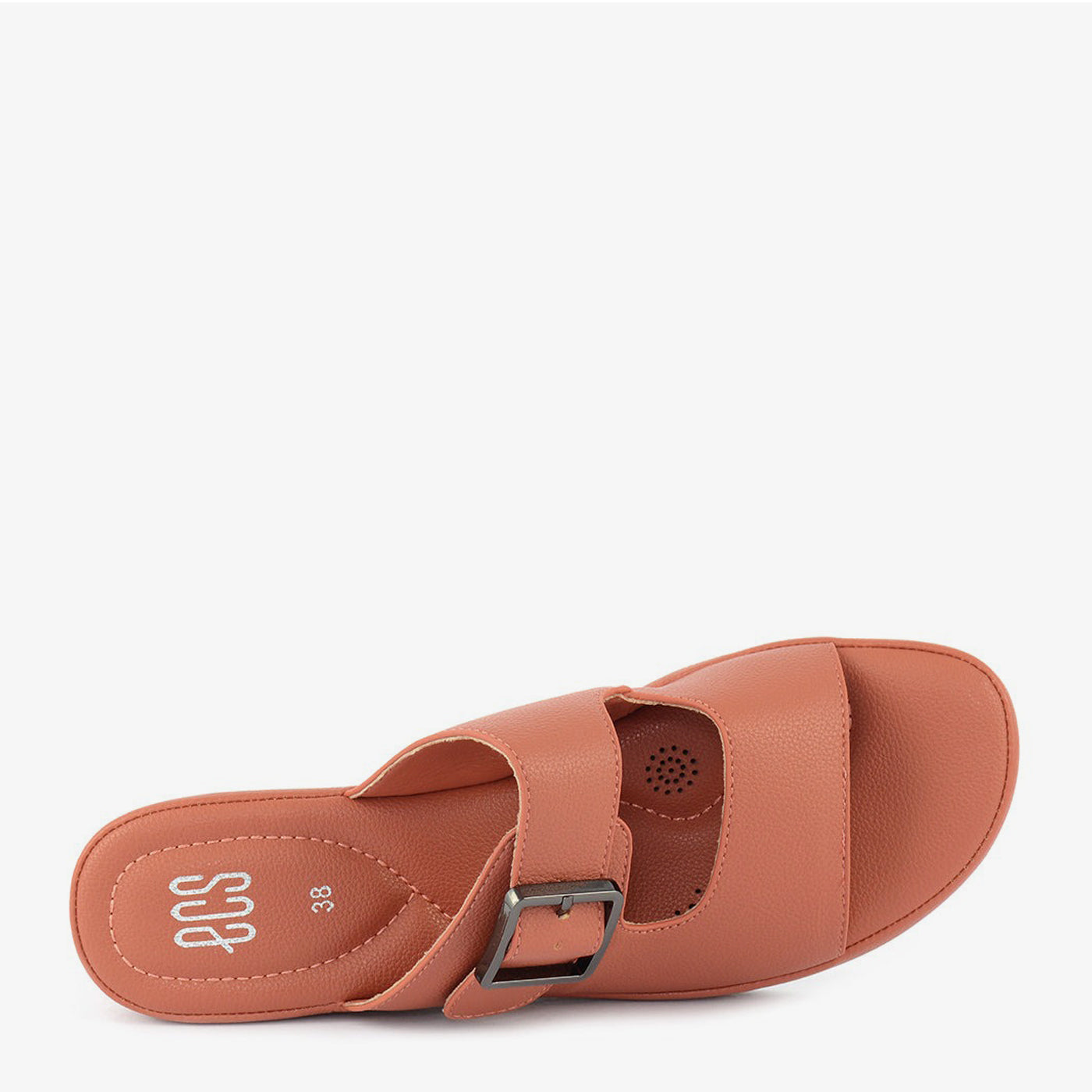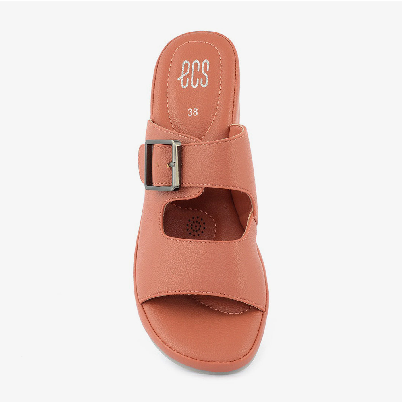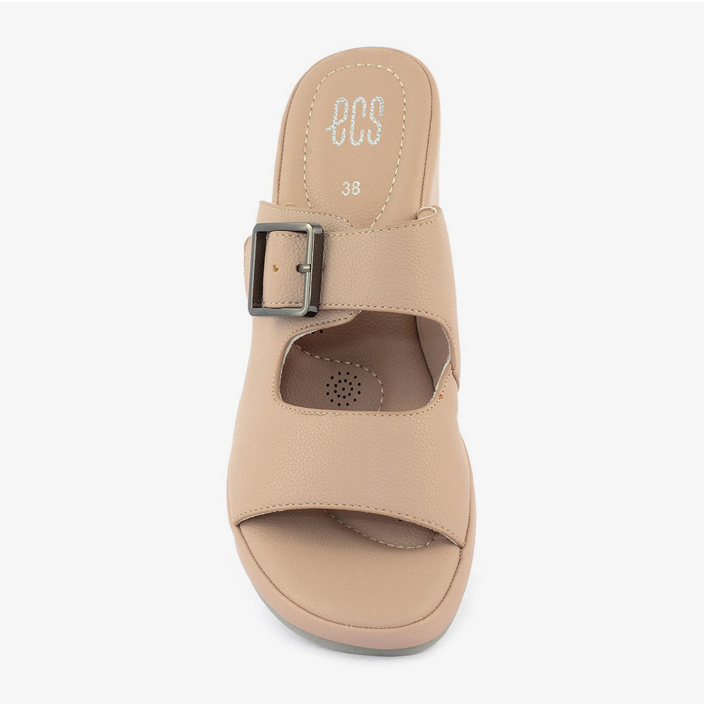 Step into effortless style with the Buckle Wedge Heels. These comfortable and chic heels feature two adjustable straps, one with a prominent buckle detail, set on a comfortable wedge. The soft, neutral color makes them versatile for various outfits.