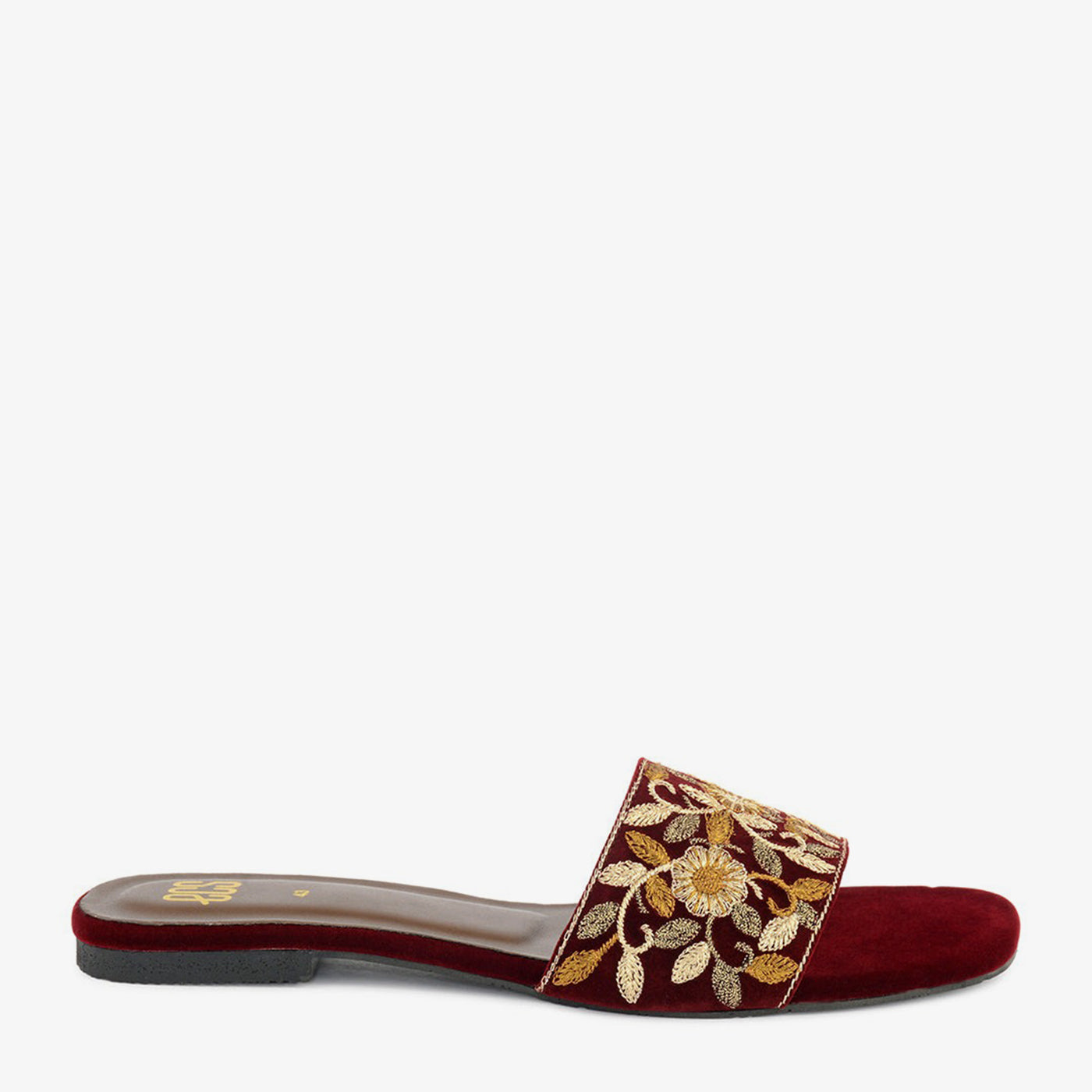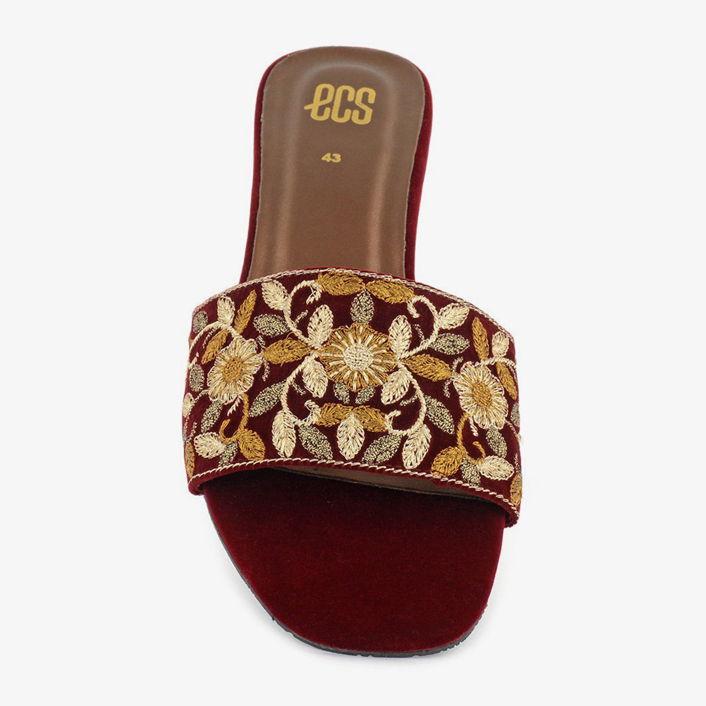 These ethnic wear slippers feature a synthetic suede upper with a velvet lining. The round toe and flat heel provide comfort and style. The PVC sole ensures durability. The matte finish adds a touch of elegance. Featuring a slip-on fastening for convenience. Clean with a damp cloth and store away from direct sunlight.