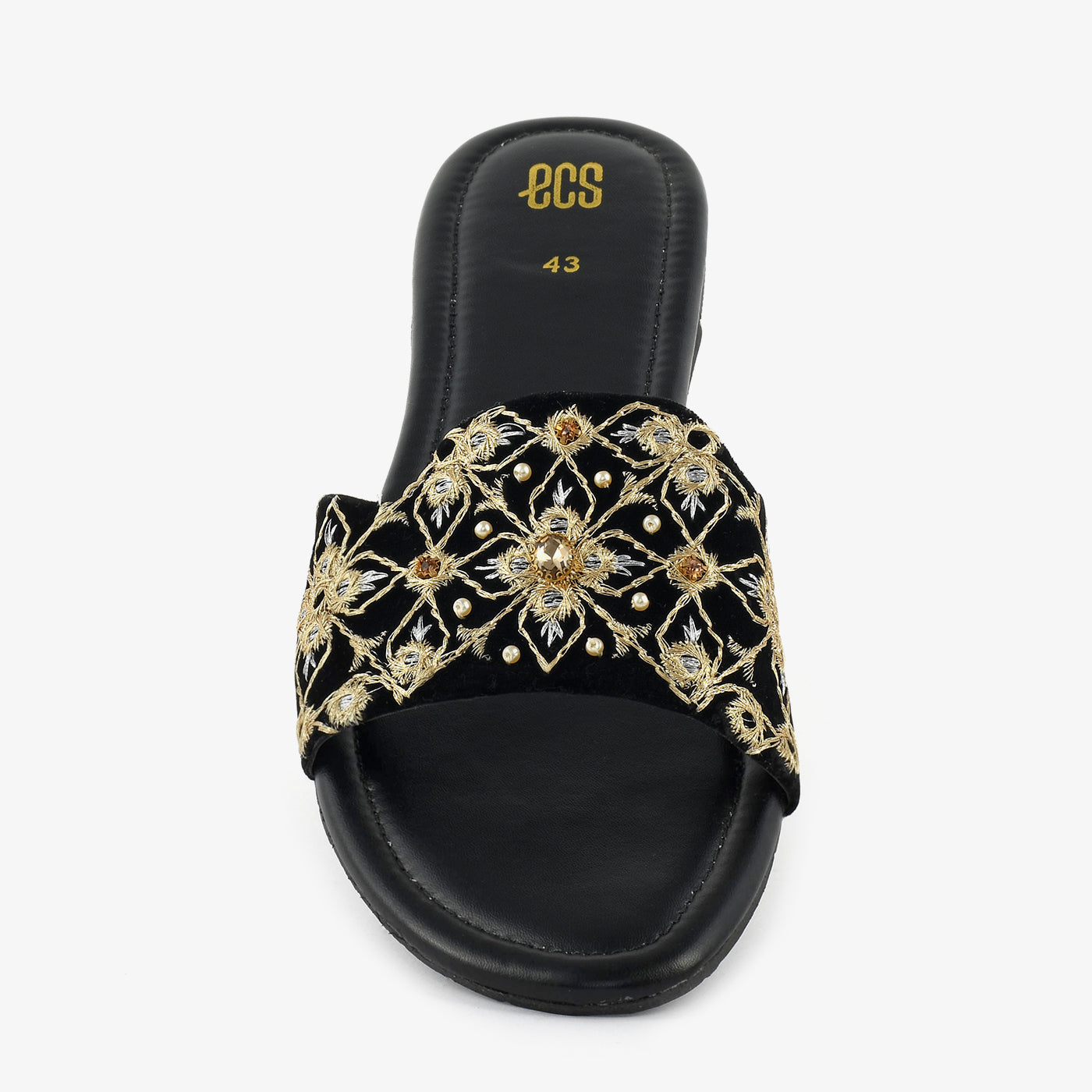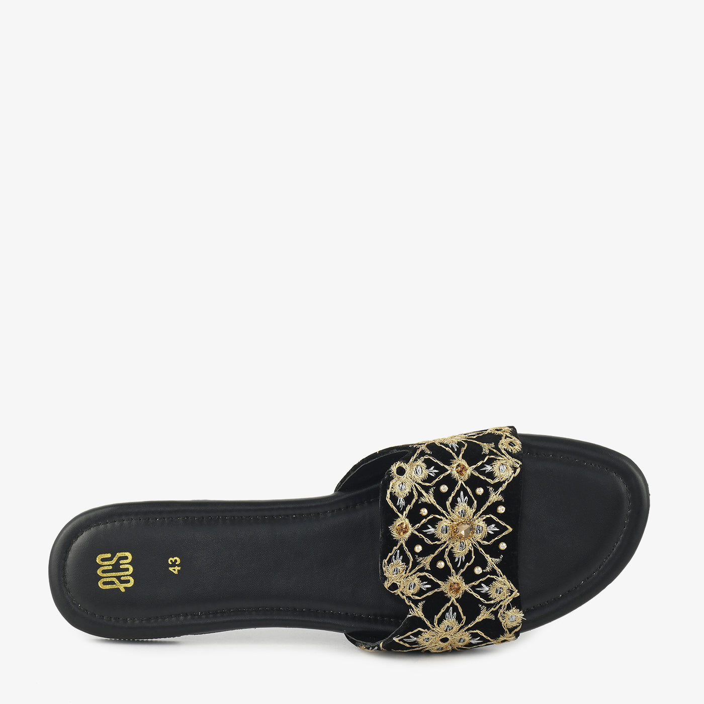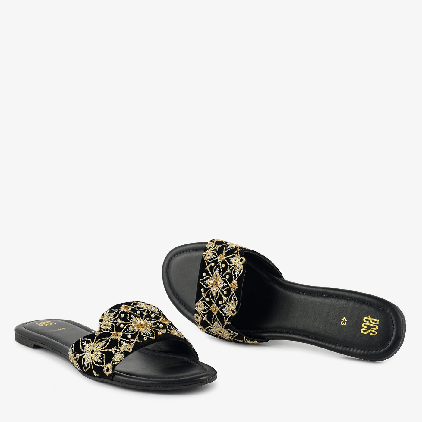 • Design: Slip-on slipper with embroidered and embellished front strap