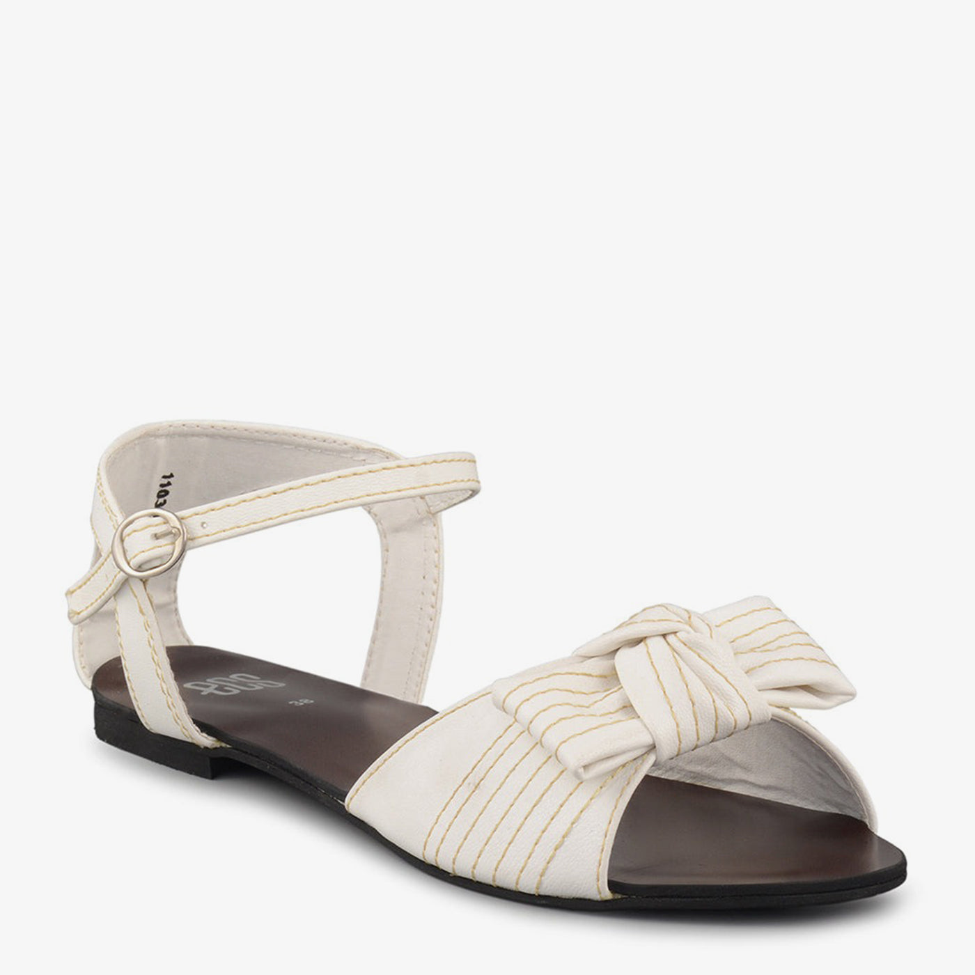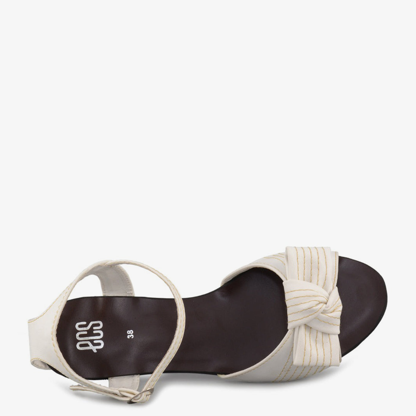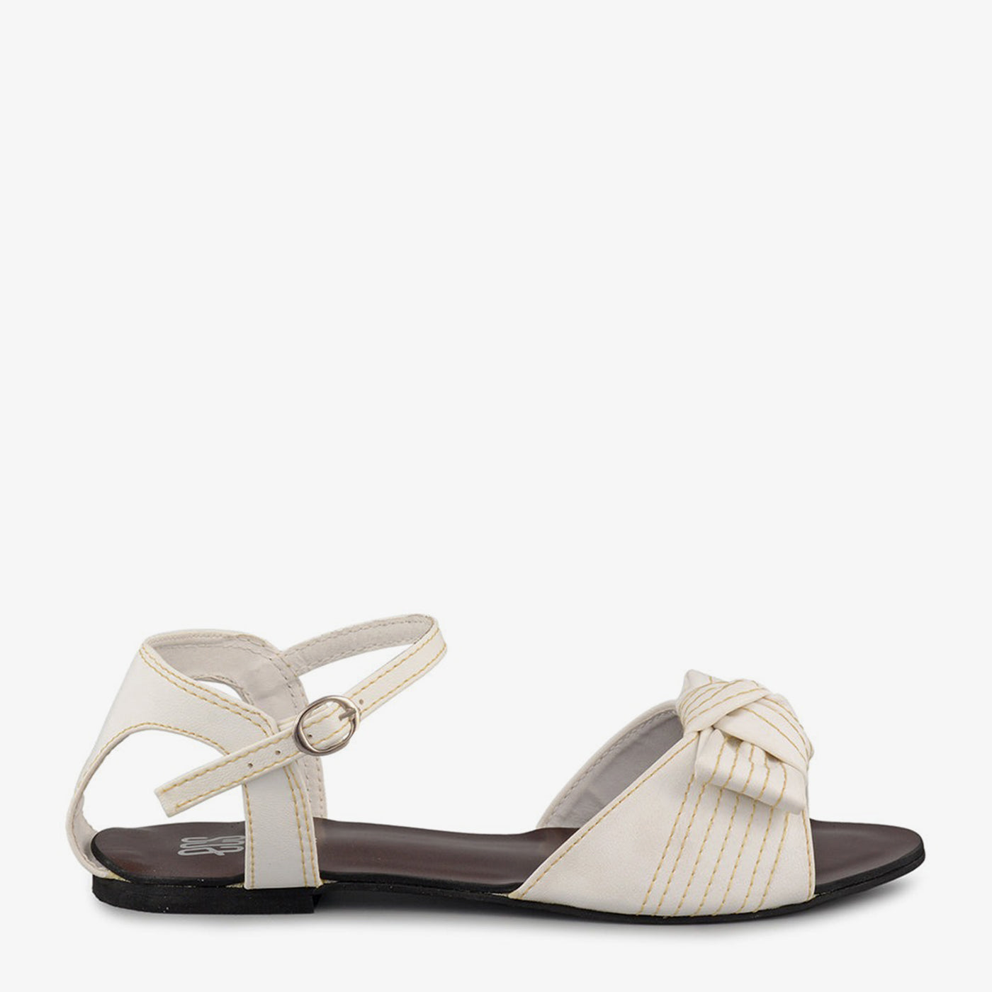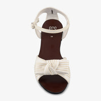 Gracefully detailed, the Ivory Bloom sandal offers a soft feminine look with its knotted bow front and stitched accents, perfect for understated elegance.
