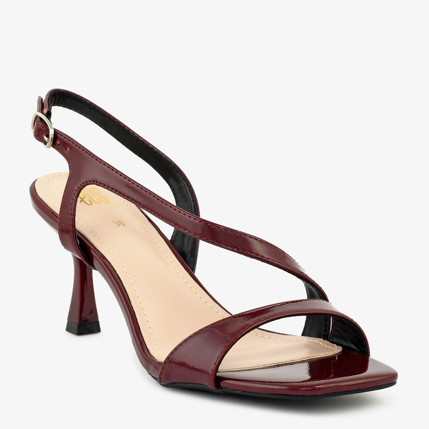 - Design: Open-toe sandal with slim straps and adjustable ankle closure