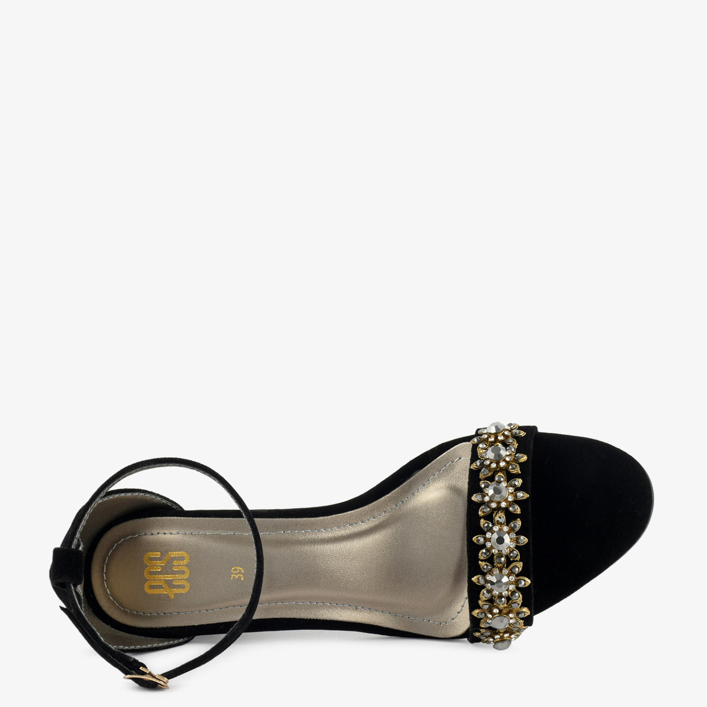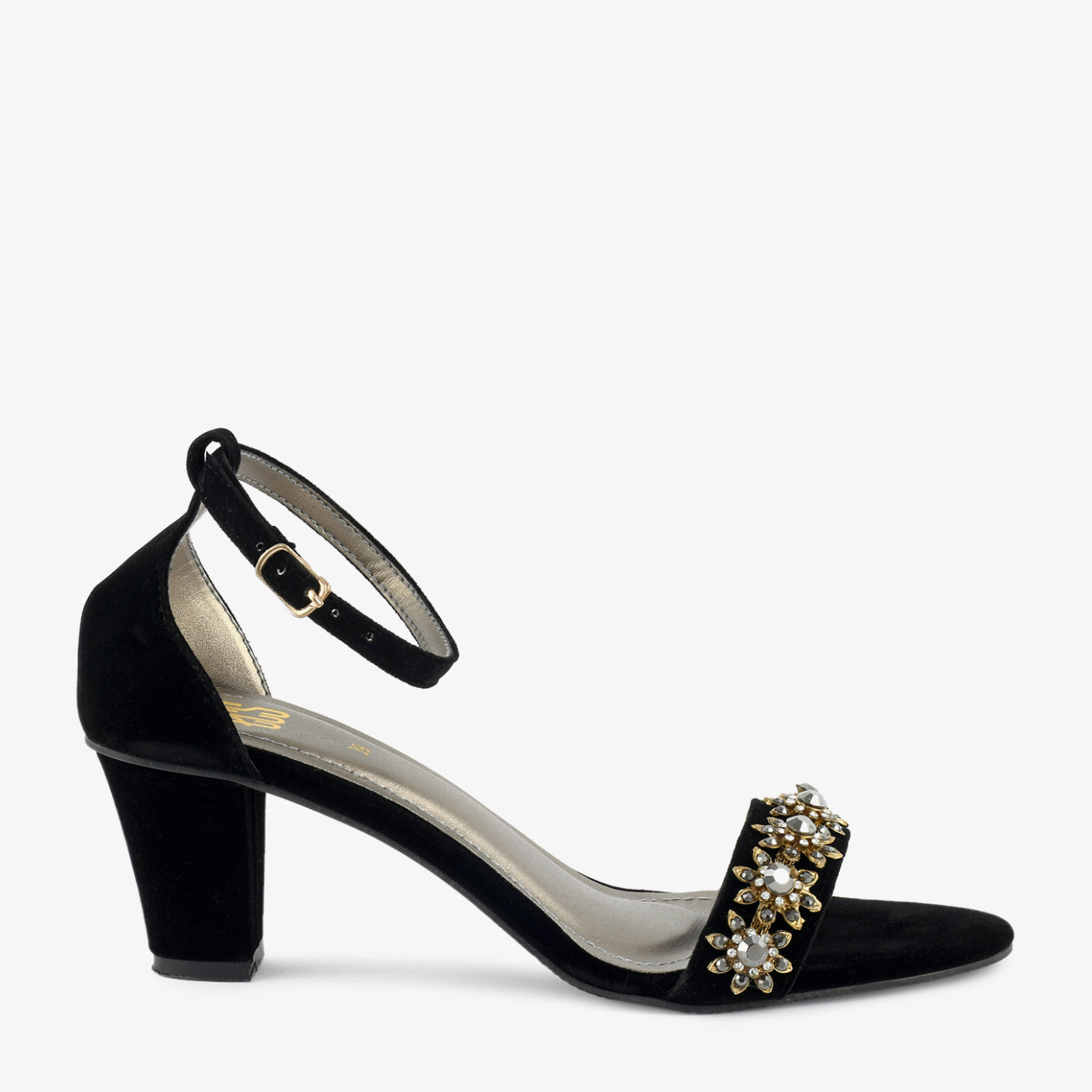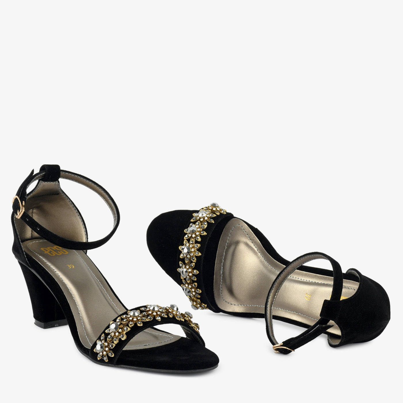 A glamorous sandal embellished with sparkling stones for a standout festive appeal. The supportive heel ensures comfort, while the embellished toe strap adds a touch of luxury. Perfect for weddings, parties, and evening celebrations.