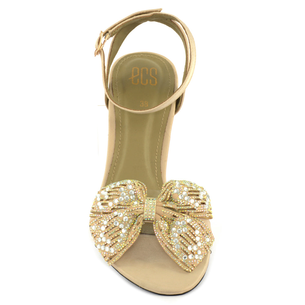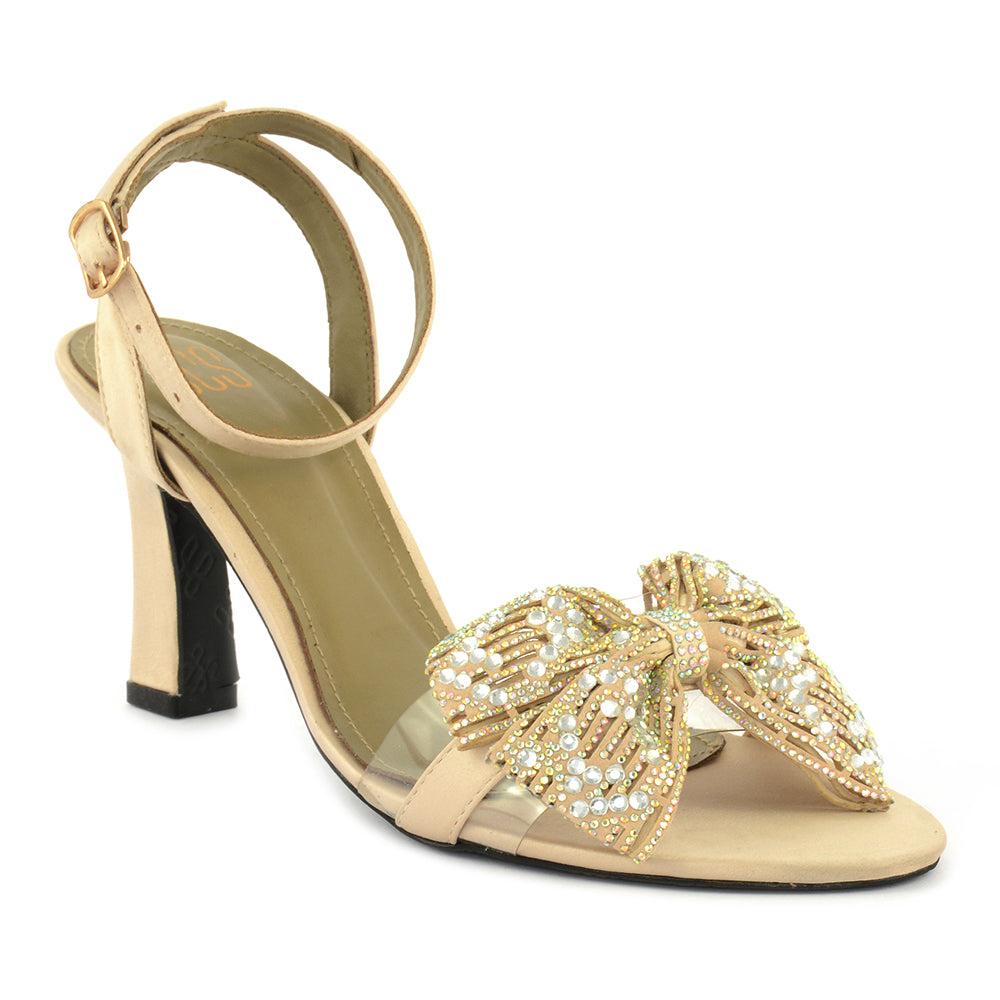 Explore our trendy collection of sandals, designed to elevate your style game effortlessly. Crafted with Synthetic PU uppers and linings, these sandals offer a fashionable choice for any occasion. The round toe shape adds a timeless charm, while the 3" heel height adds an elegant lift. The rubber soles ensure reliable traction and support. With a delightful bow tie feature and a glittery finish, these sandals exude a touch of glamour. Secure them with the convenient buckle fastening and step out confidently in our range of glittery sandals. Make a stylish statement and embrace fashion with every step.