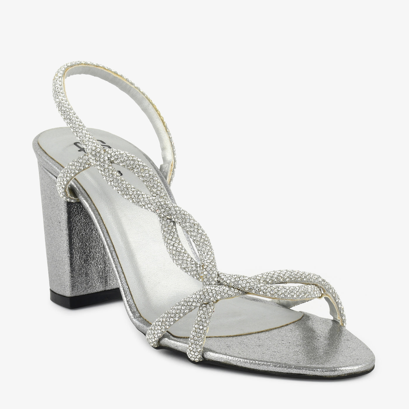 This sandal stands out with its knotted strap design enhanced by subtle embellishments. The structured heel offers support, making it comfortable for extended wear. Designed to add glamour without overpowering the outfit. Ideal for parties and special gatherings. A perfect mix of sparkle and sophistication.
