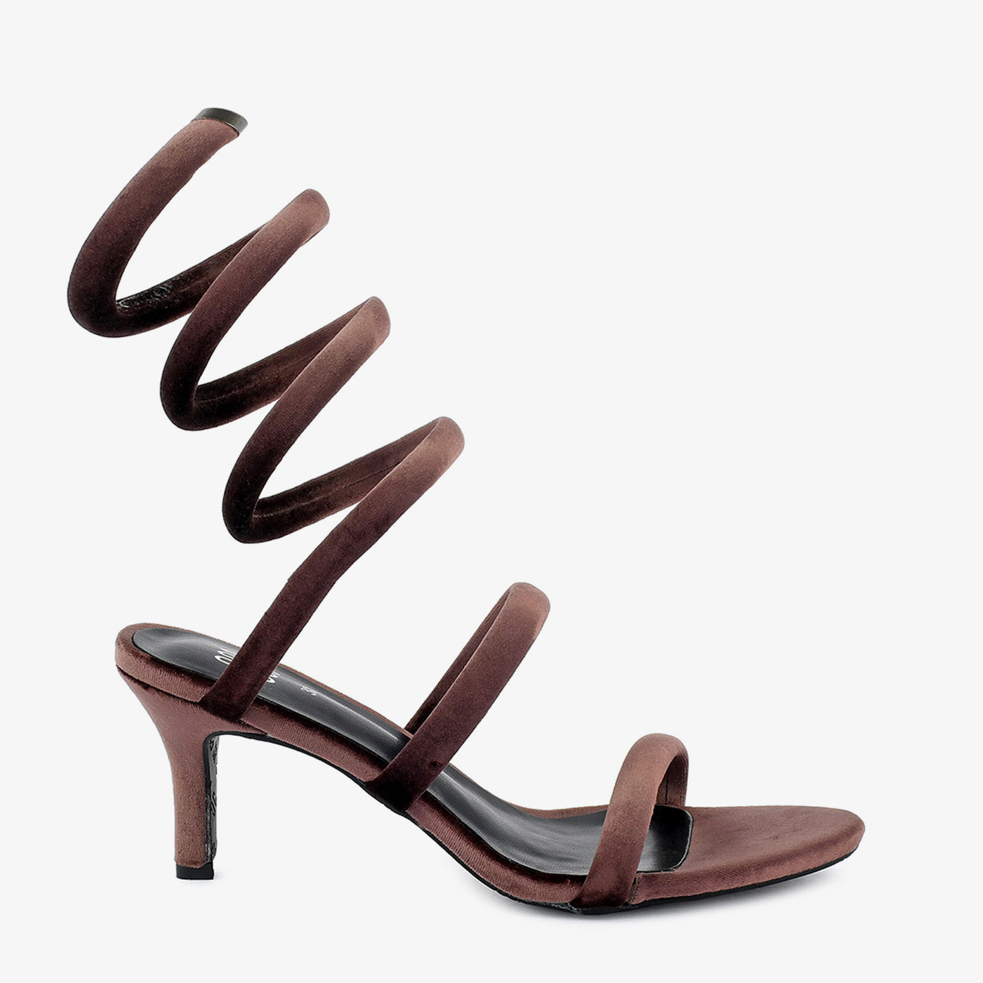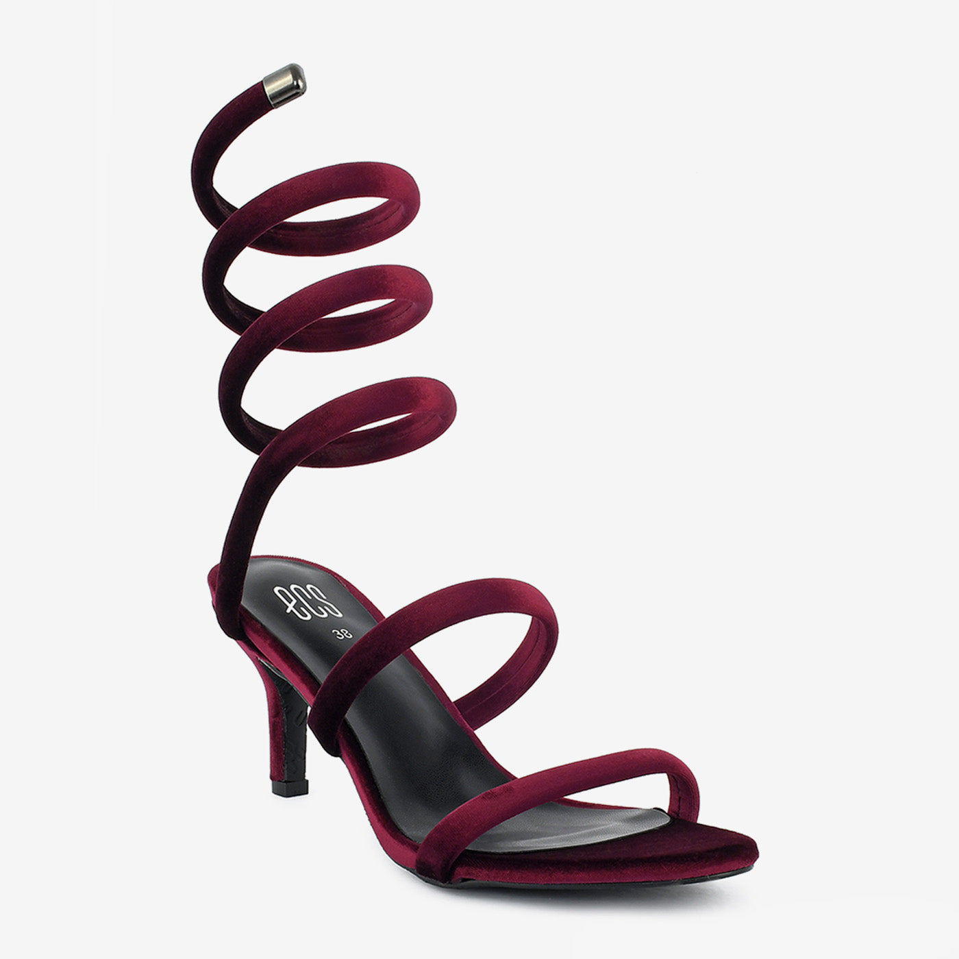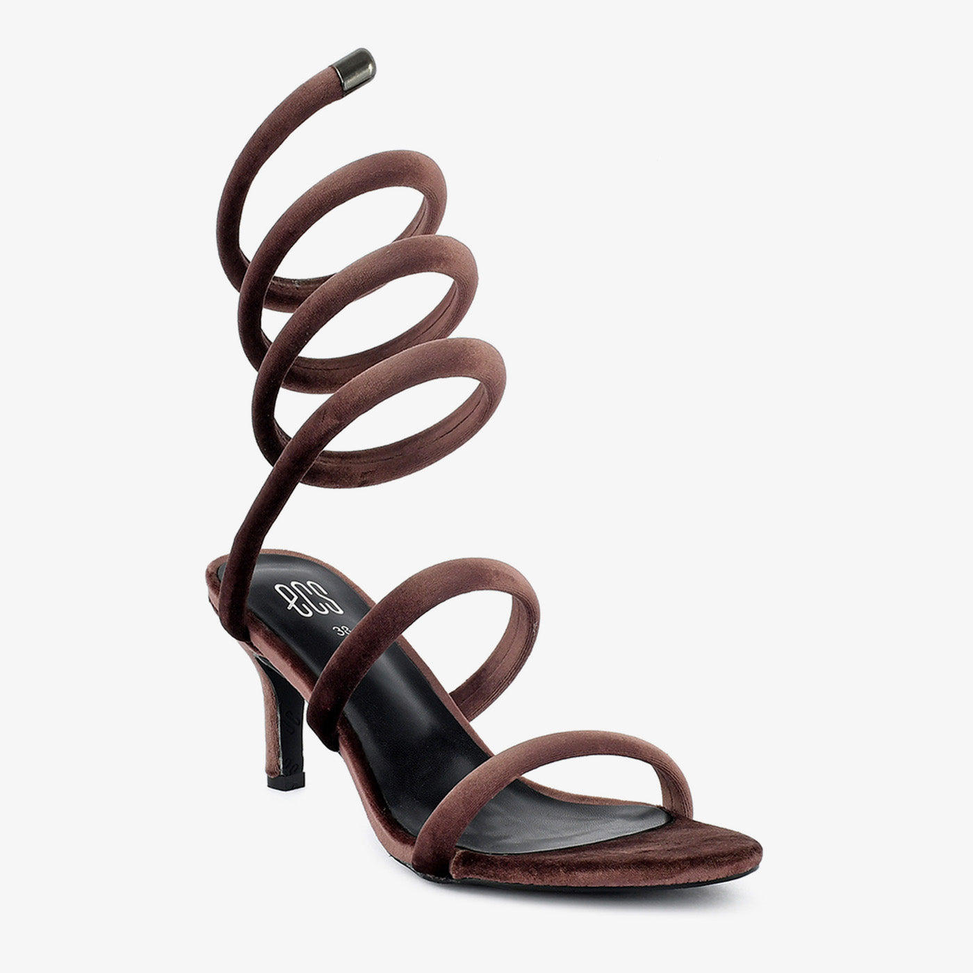 Indulge in timeless elegance with these unique sandals. Crafted with a luxurious velvet material and featuring a striking coiled design, these sandals exude sophistication. The delicate straps and stiletto heel offer a glamorous and stylish look.