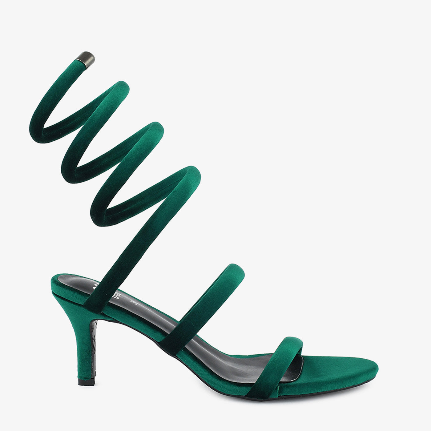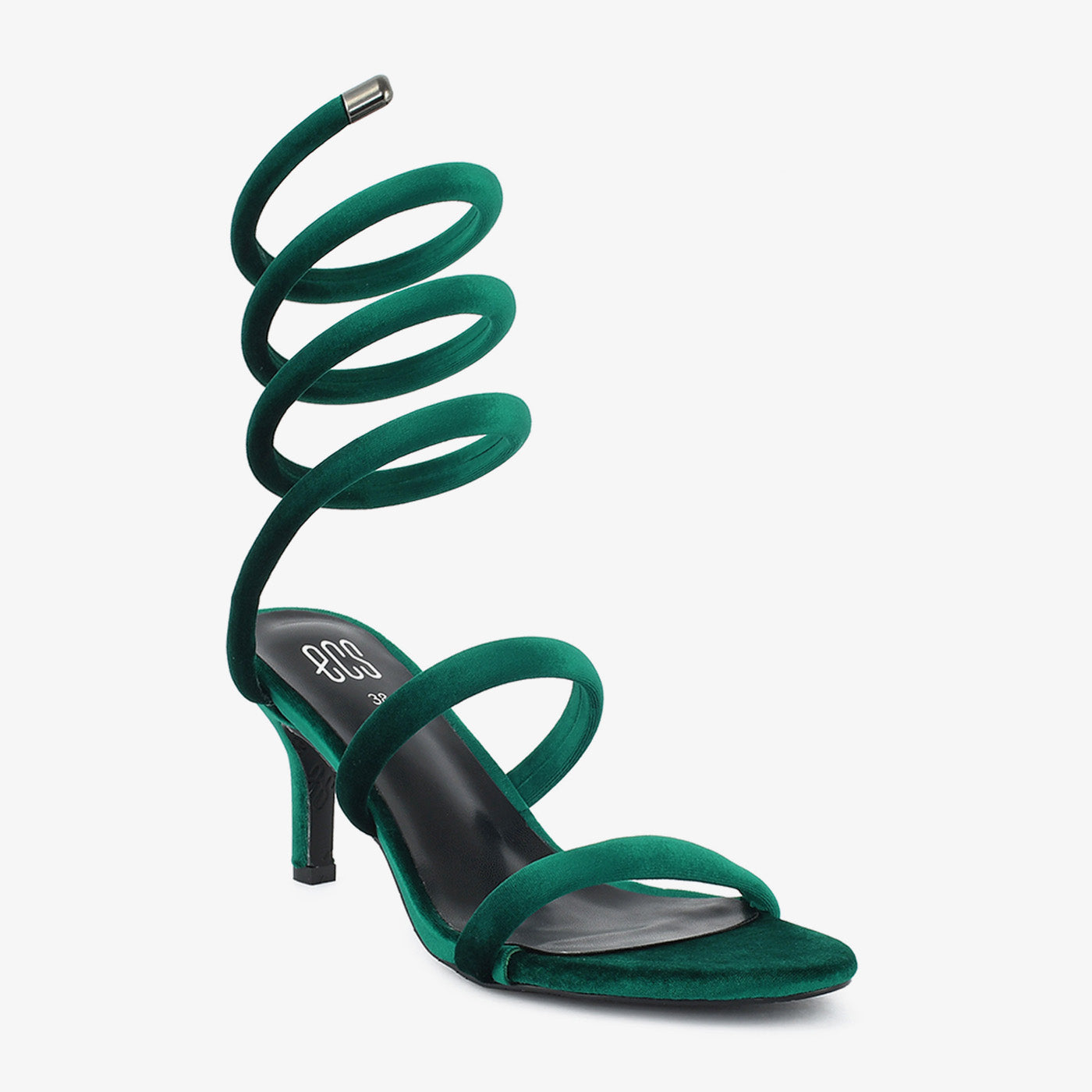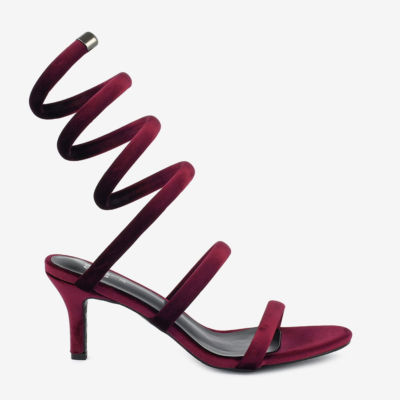 Indulge in timeless elegance with these unique sandals. Crafted with a luxurious velvet material and featuring a striking coiled design, these sandals exude sophistication. The delicate straps and stiletto heel offer a glamorous and stylish look.