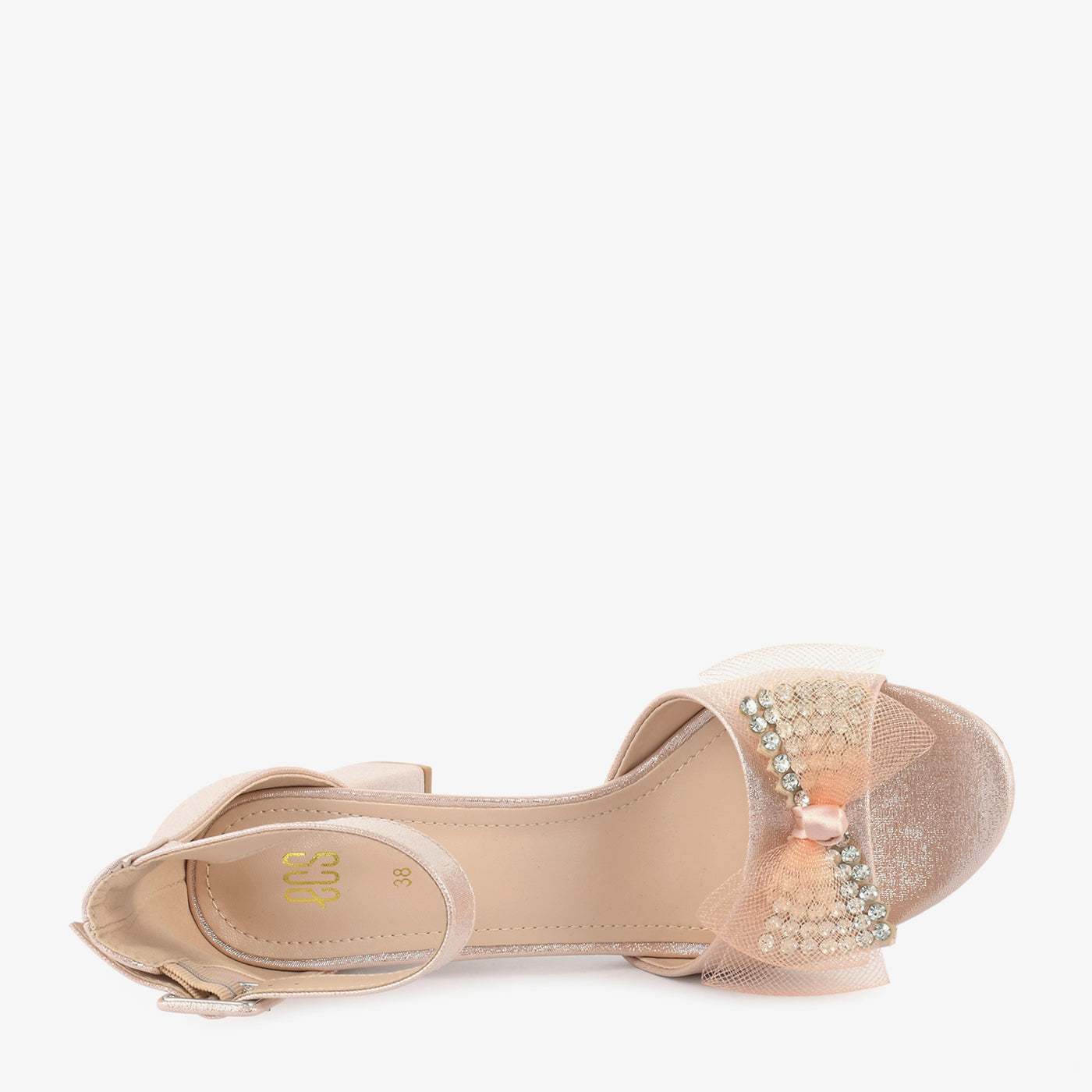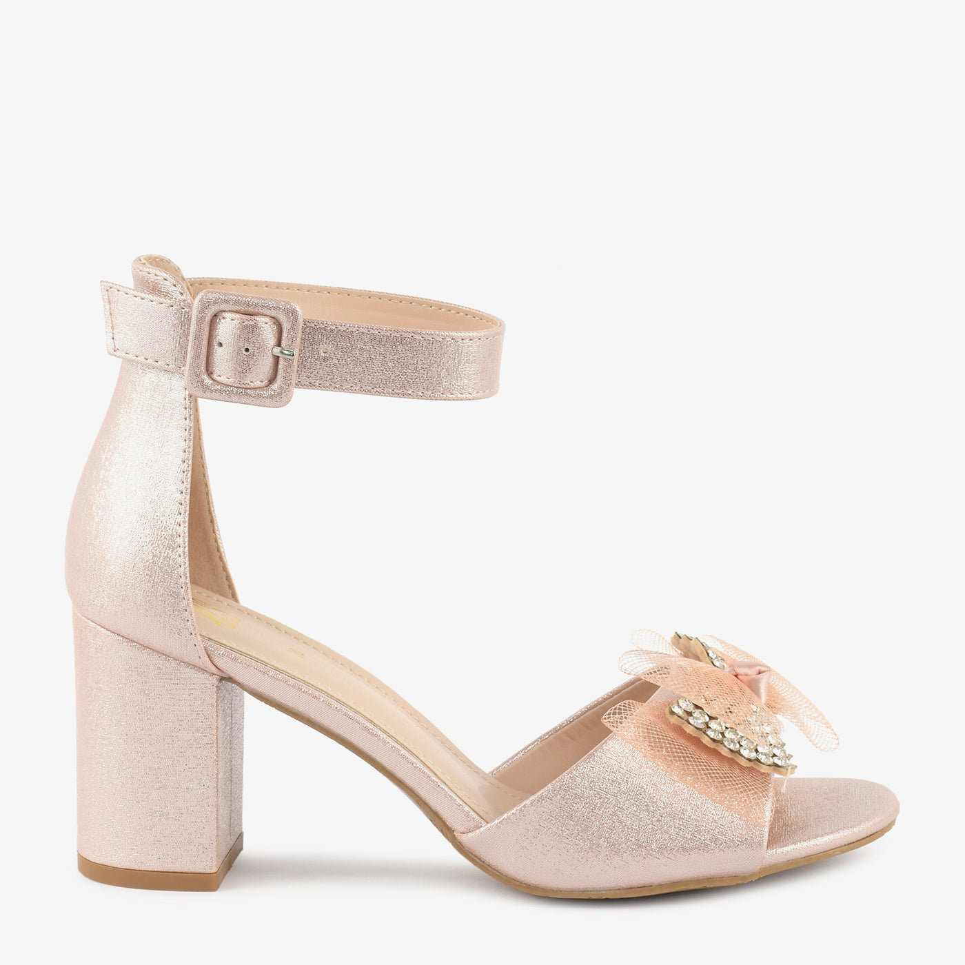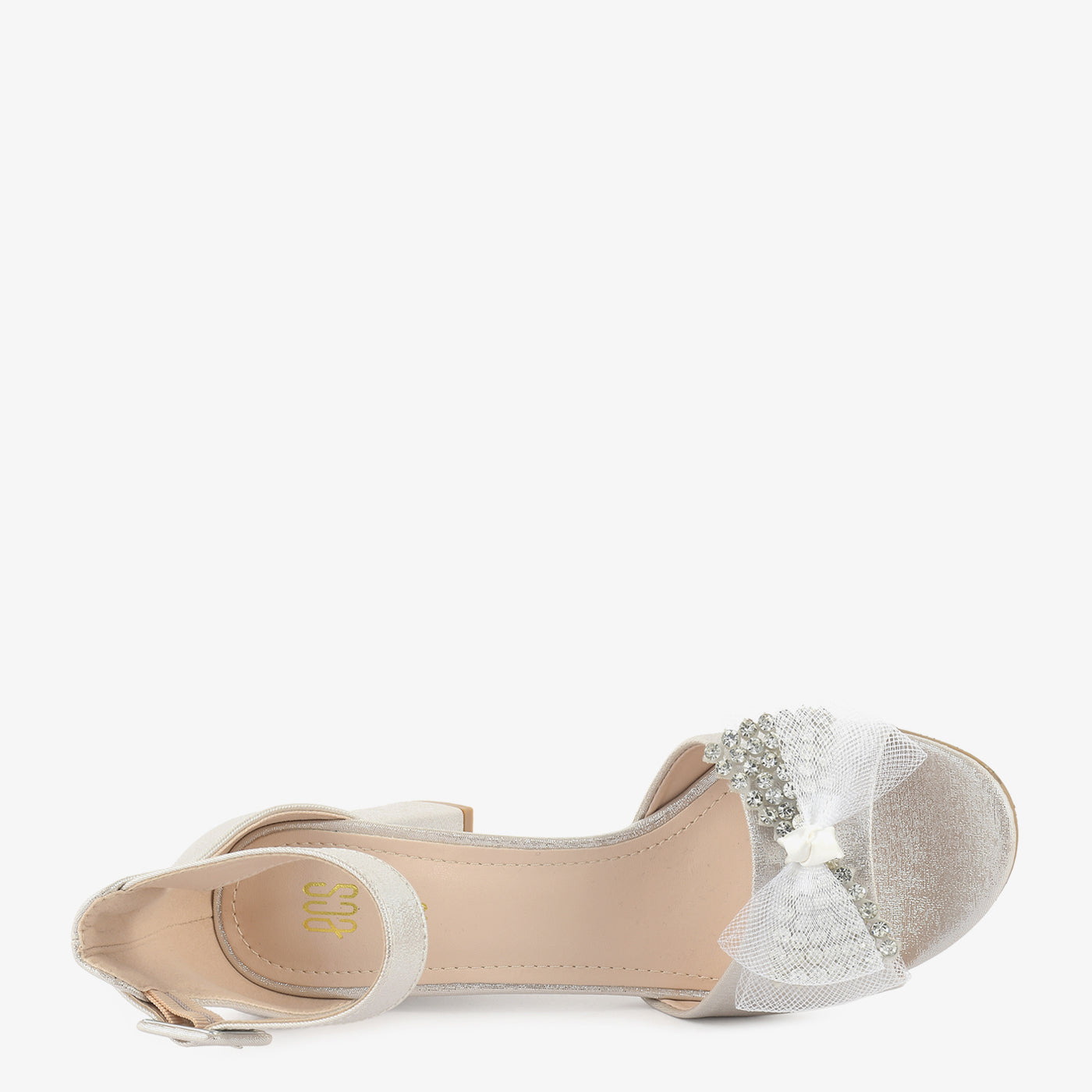 Step into subtle sparkle with these silver sandals. The shimmering finish and the delicate bow detail add a touch of feminine charm to your look. The comfortable block heel...