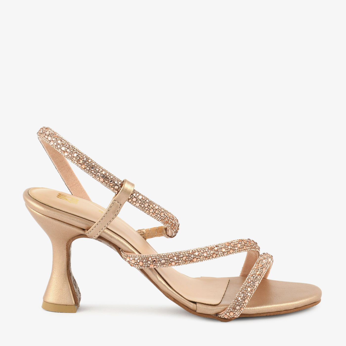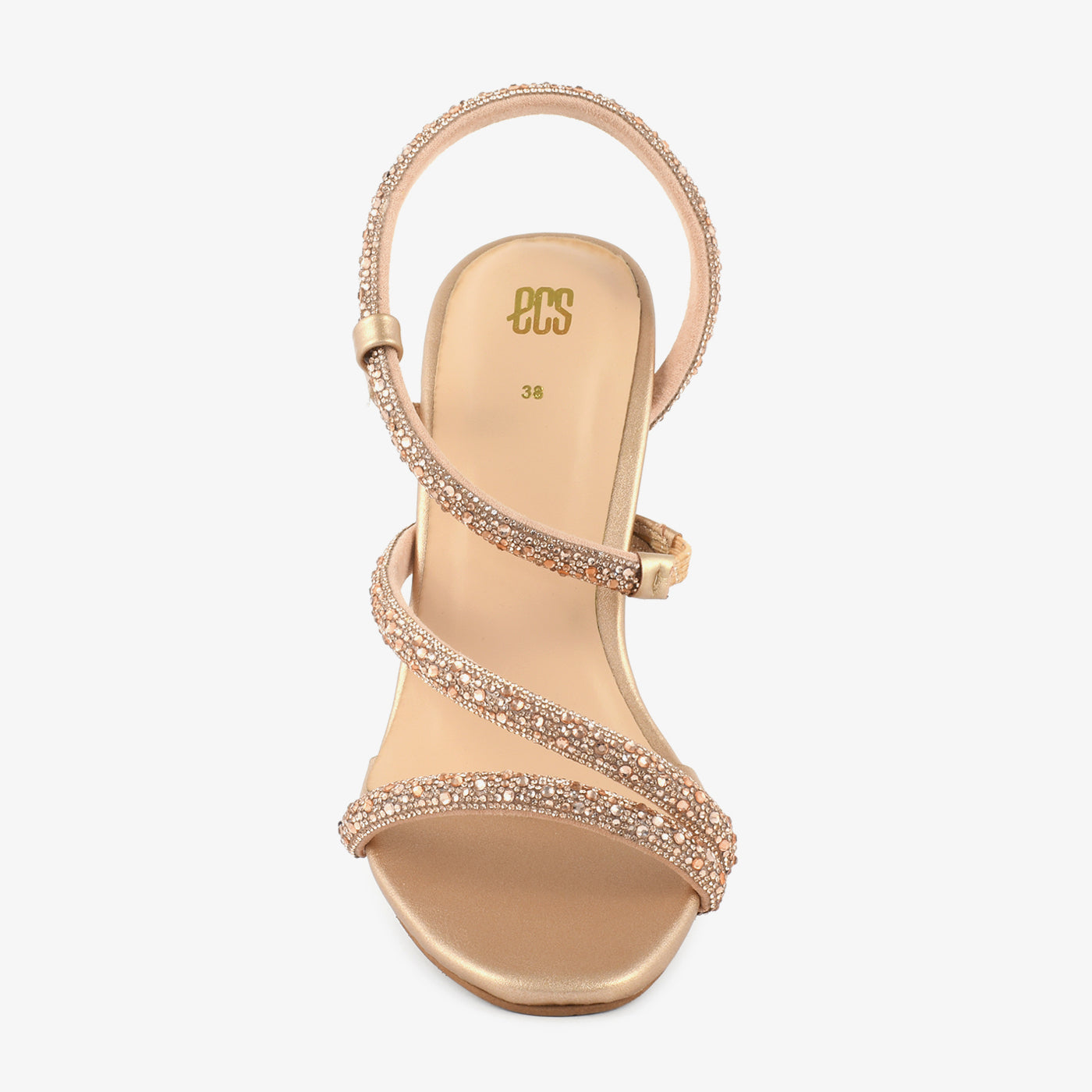 This elegant sandal features delicately embellished straps that bring sparkle and sophistication to your look. The slim multi-strap design adds refinement while offering a secure fit. Its balanced heel provides stability without compromising comfort. A smooth and supportive footbed ensures ease during wear. Lightweight construction allows effortless movement throughout the day. Ideal for festive occasions and celebratory events.