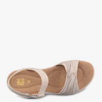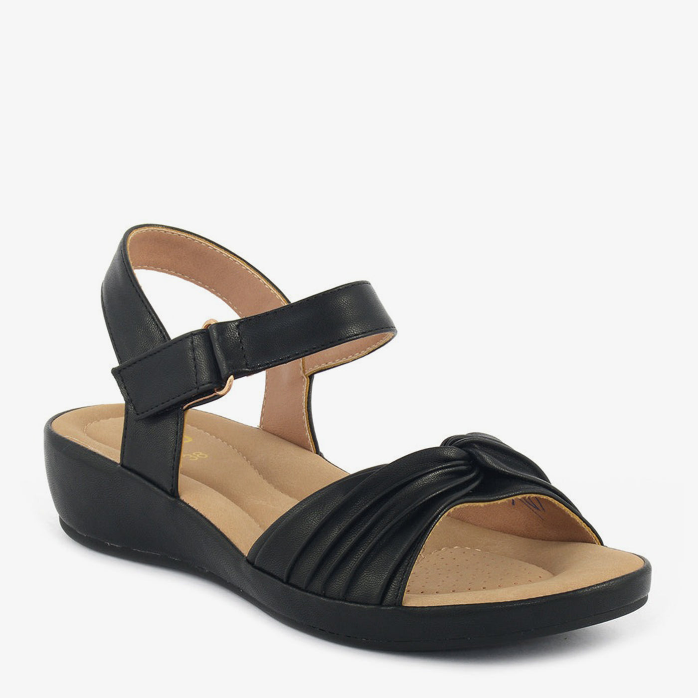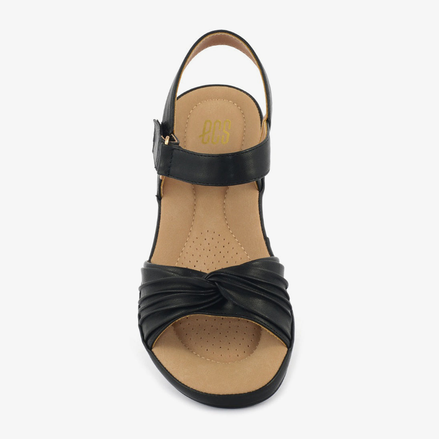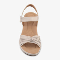 Comfortable sandals with a soft, twisted strap design and adjustable ankle strap for a perfect fit. The wedge heel provides a subtle lift while ensuring ease of movement. Perfect for everyday wear with understated elegance.
