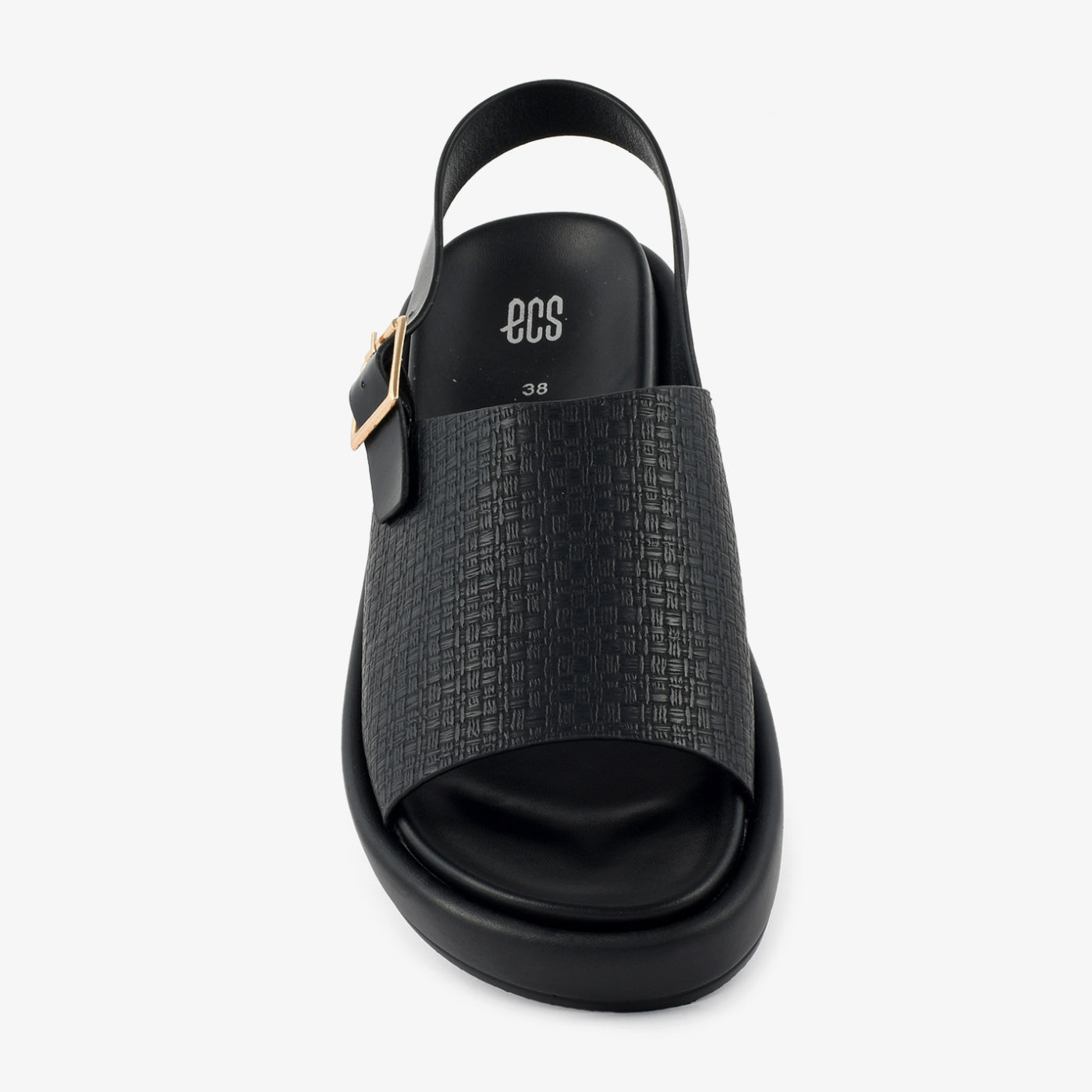 This modern sandal features a wide textured strap paired with an adjustable ankle buckle, offering both comfort and a secure fit. The cushioned footbed supports easy movement throughout the day, while the elevated base adds a subtle lift without compromising stability. Its clean, minimal design makes it ideal for everyday wear, blending practicality with understated style.