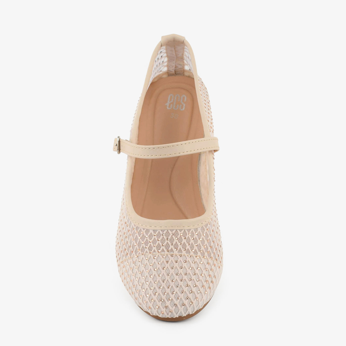 Delicate, breathable, and beautifully feminine, this pump brings comfort to chic dressing. The mesh body ensures light airy wear, keeping feet relaxed all day. A dainty strap adds secure elegance, making it perfect for movement-filled days. From casual lunches to light festive gatherings, it's a go-to pick. Adding subtle texture, it lifts any look with minimal effort.