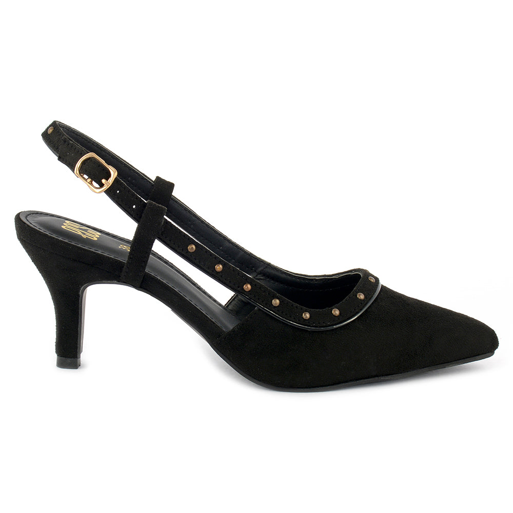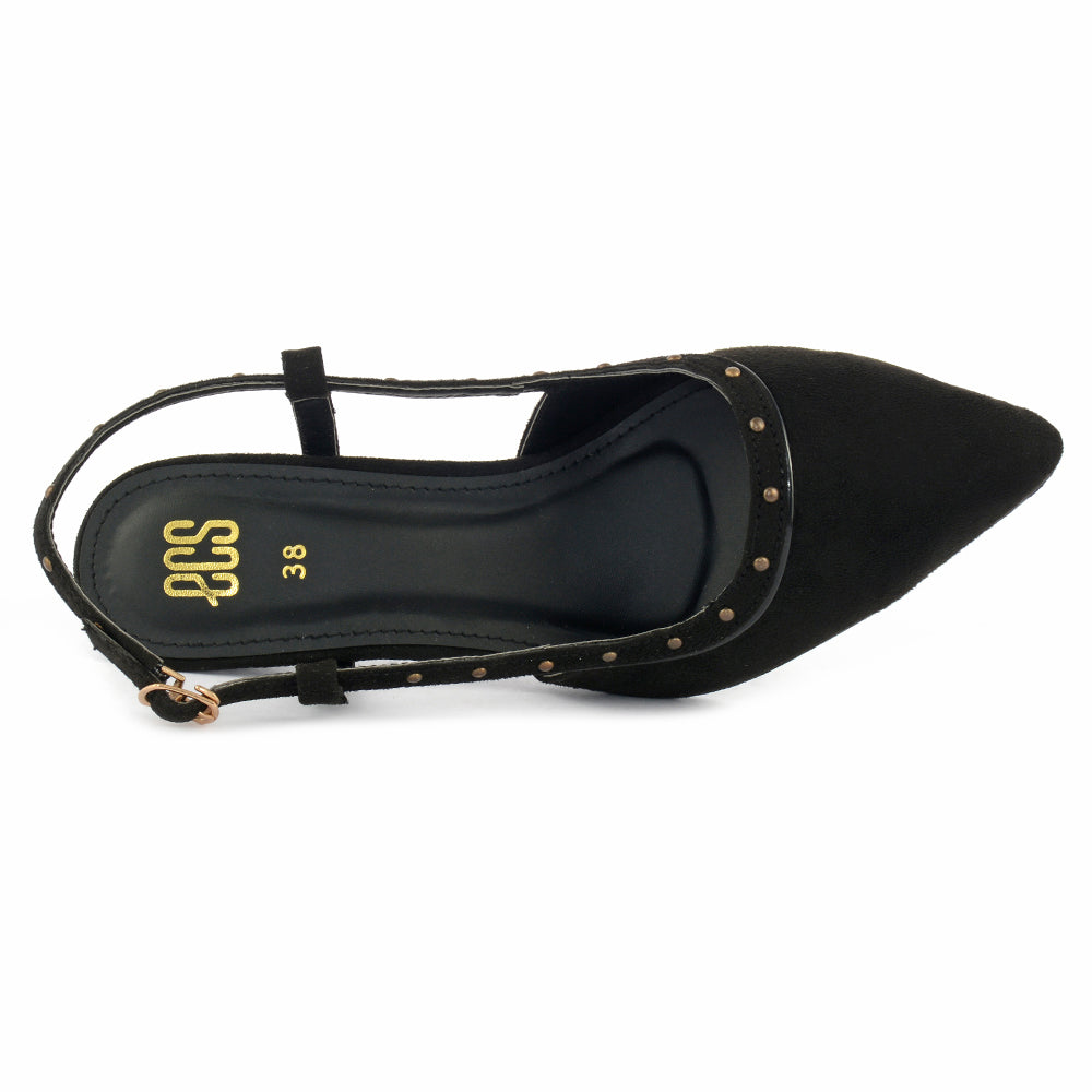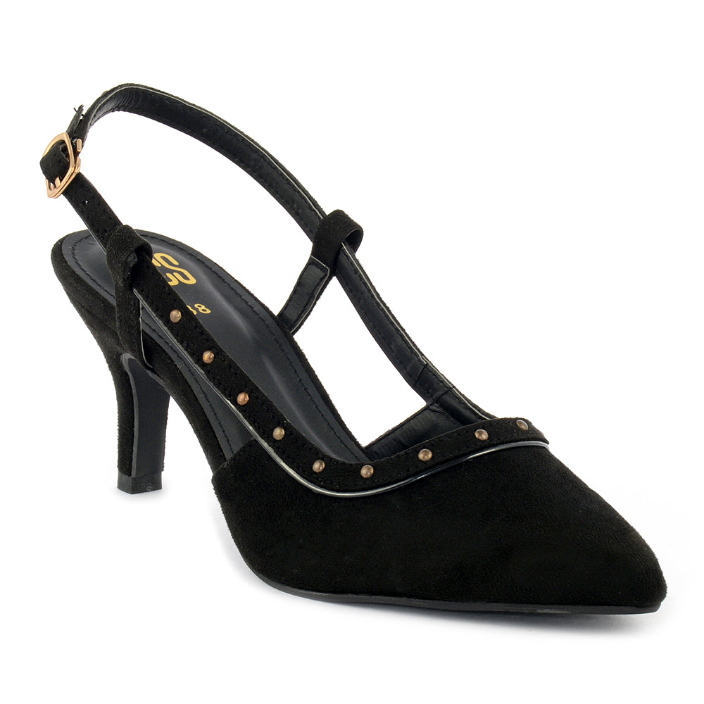 Elevate your style with our Pointed Toe Matte Heels, featuring Synthetic Suede for a luxurious upper and Synthetic PU lining for added comfort. The pointed toe shape adds a touch of sophistication, while the Matte finish exudes contemporary allure. Embrace the edgy charm with studs detailing for a bold statement. Crafted with a durable Rubber sole, these heels seamlessly blend fashion and comfort. Whether it's a night out or a special occasion, step confidently in these heels that redefine elegance. Make a statement with our Pointed Toe Matte Heels - where glamour meets an edgy twist.
