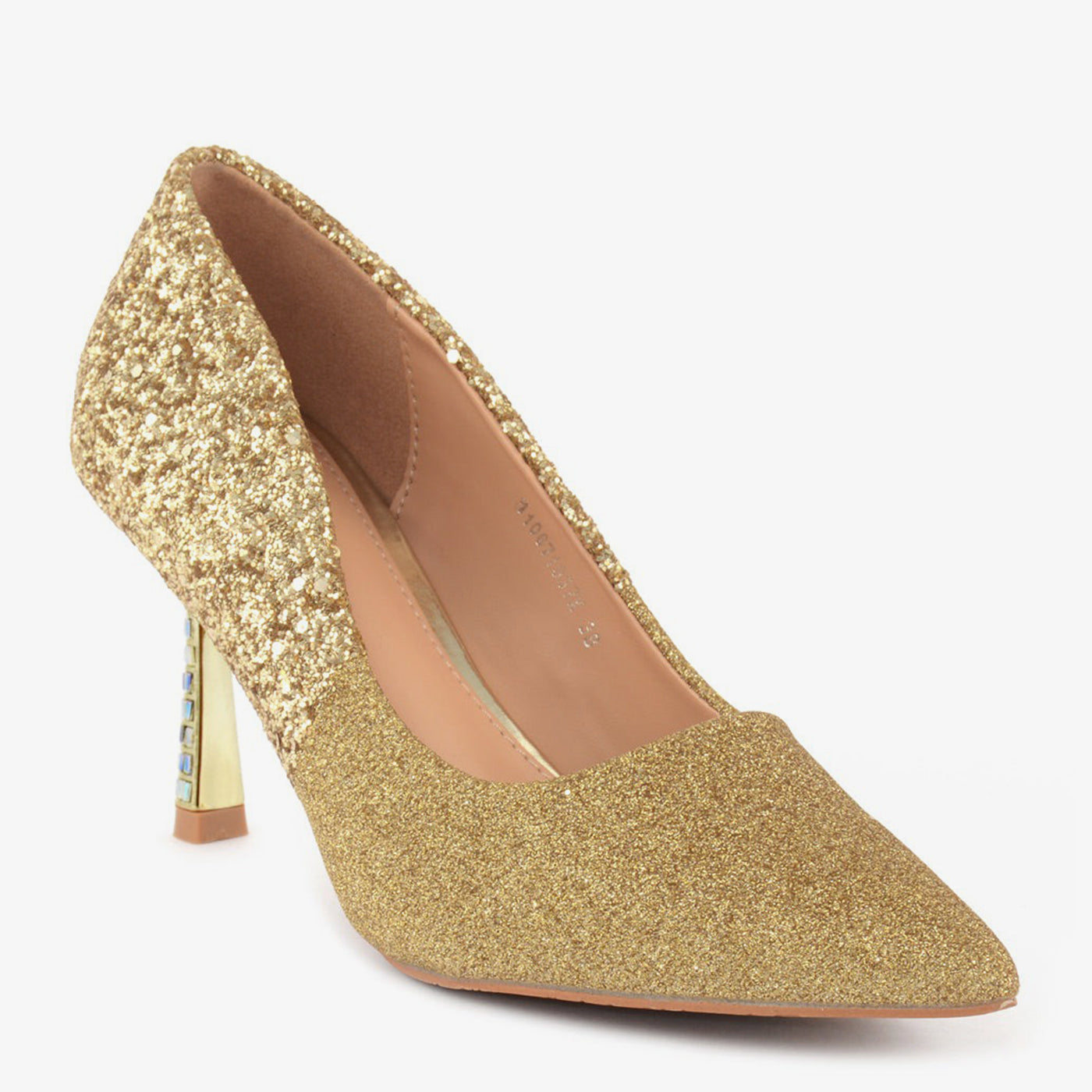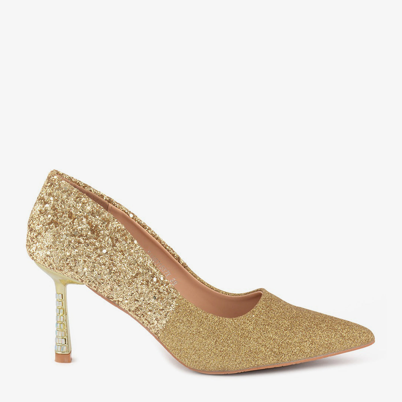 Embellishment: Glitter surface with gemstone heel strip