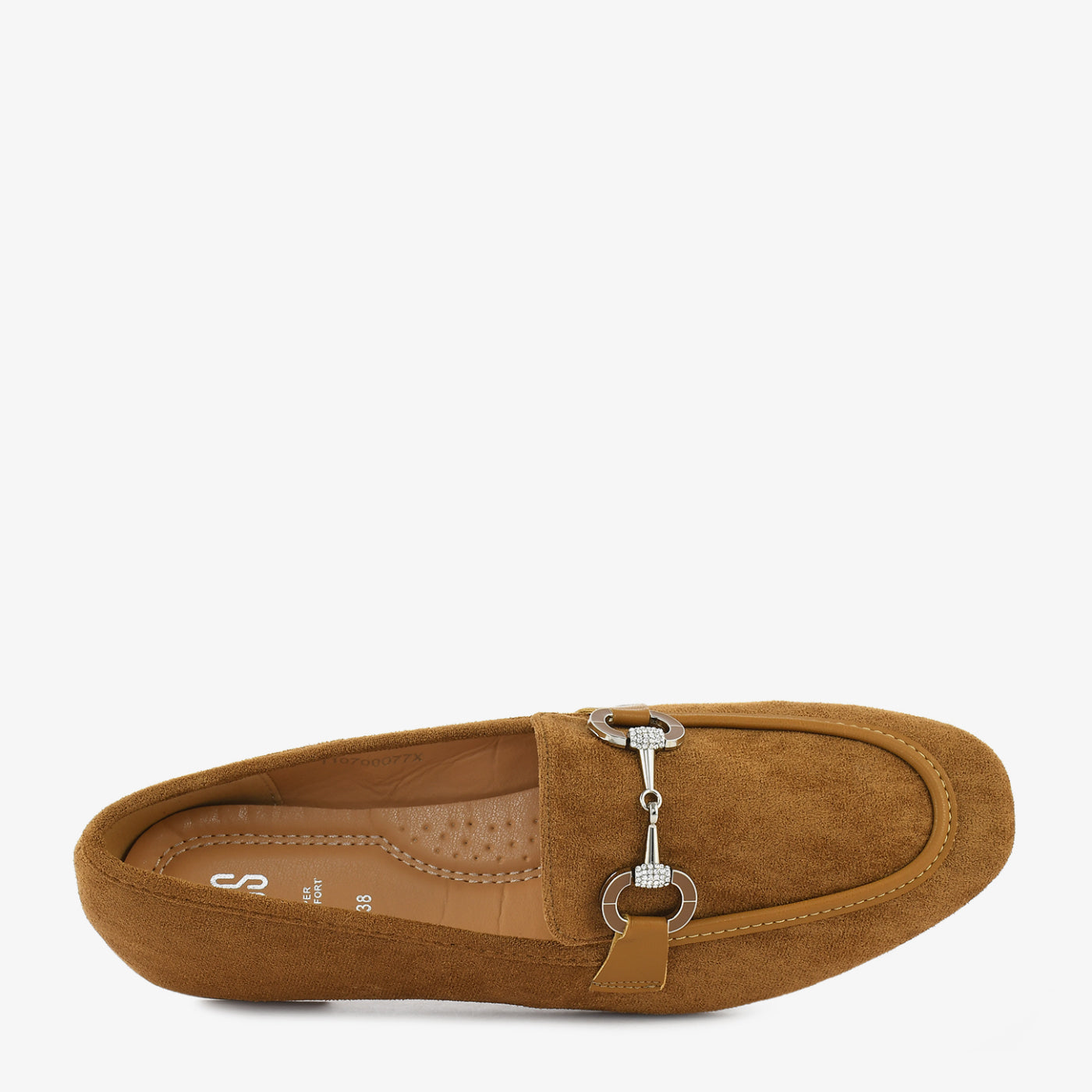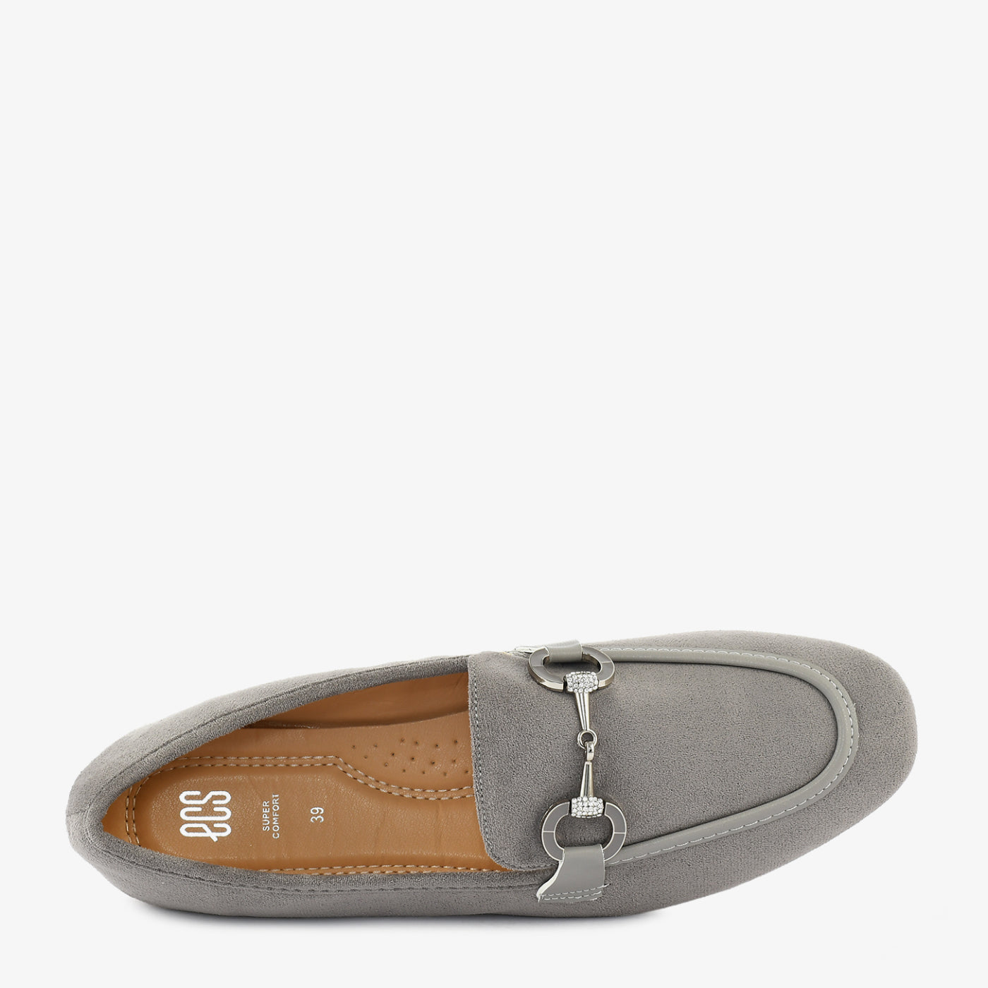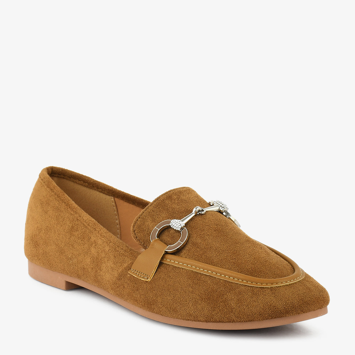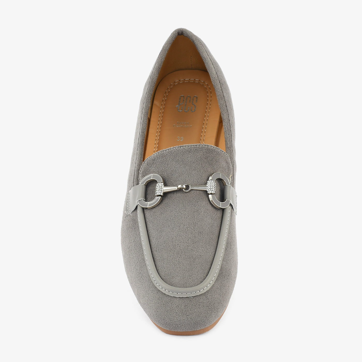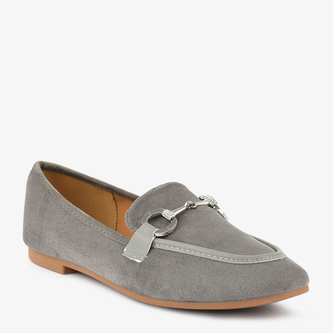 Indulge in modern chic with these stylish loafers. Crafted with a luxurious suede-like material and featuring a unique metal accent, these loafers exude sophistication. The slip-on style and comfortable sole make them perfect for everyday wear.