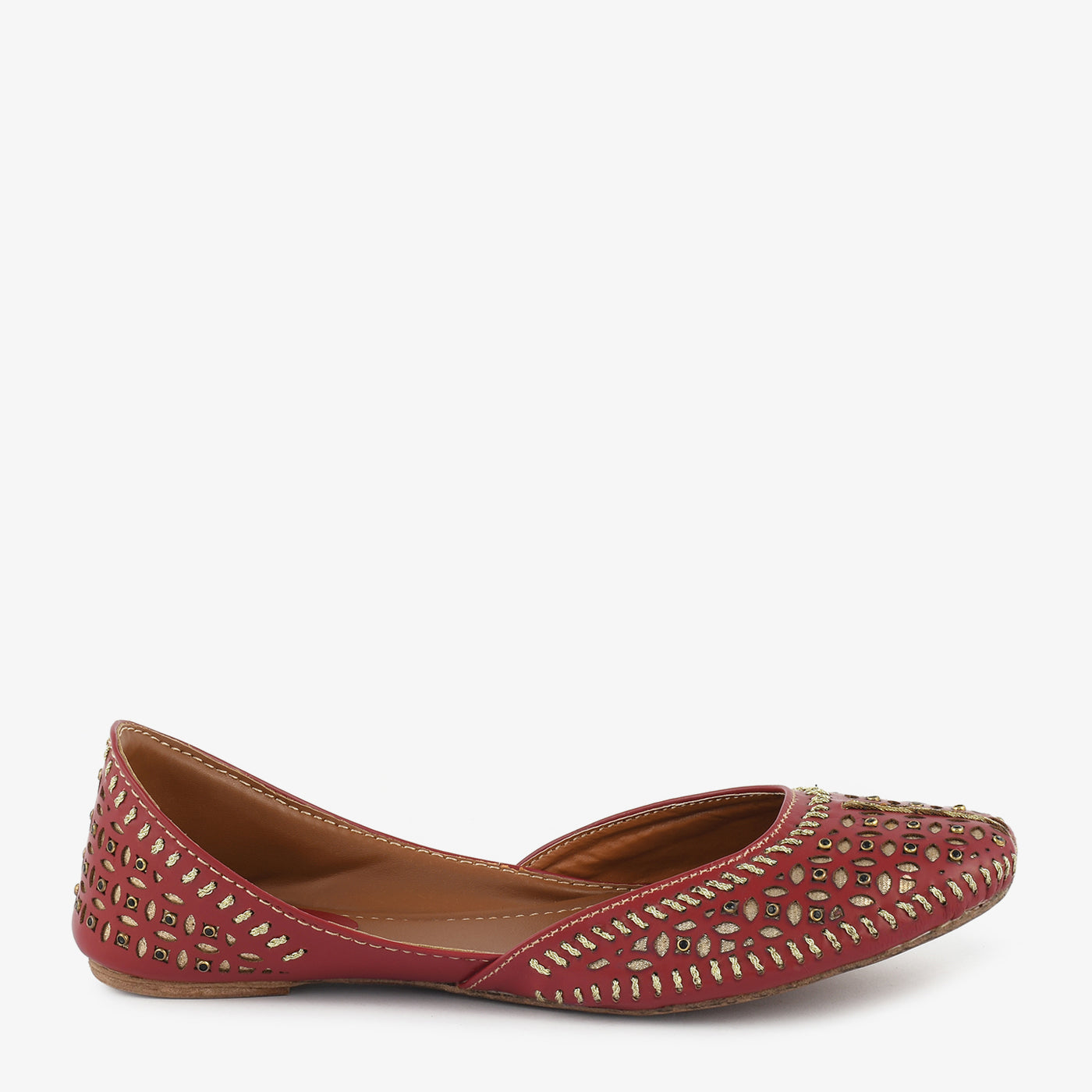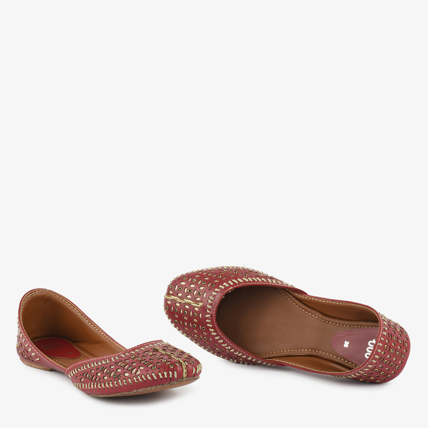 A beautifully crafted khussa featuring laser-cut detailing and fine thread edging that highlights its artistic appeal. Designed with a flexible sole and soft inner lining, it ensures comfort with traditional elegance. Ideal for festive wear, cultural events, or elevating everyday ethnic outfits.