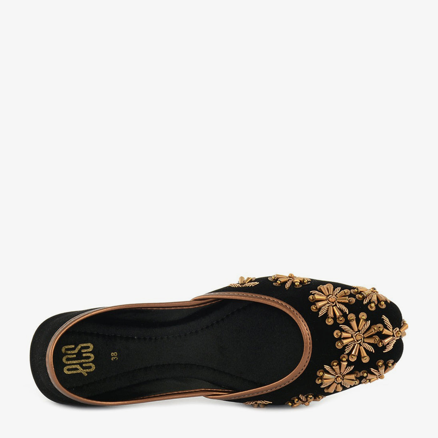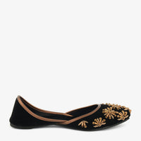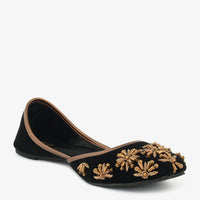 Elevate your ethnic wardrobe with our collection of Khussa shoes. These shoes feature a synthetic velvet upper material that exudes elegance and luxury. The round toe shape offers a classic and comfortable fit, perfect for all-day wear. The rubber sole provides traction and stability, ensuring confident steps. With a flat heel height, these Khussa shoes maintain their traditional appeal. The exquisite embroidery showcases artistry and cultural heritage, adding a touch of beauty and charm to the design. The matte finish gives them a refined and sophisticated look. The slip-on fastening ensures easy and hassle-free wear. Step into cultural grace and style with these ethnic Khussa shoes, celebrating the beauty of traditional craftsmanship.