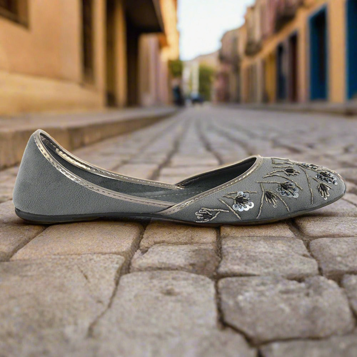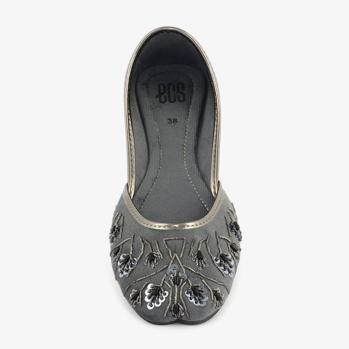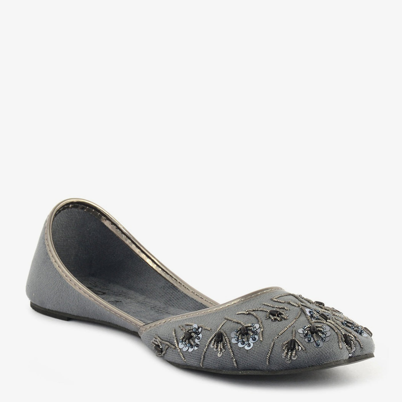 These ethnic Khussa feature a velvet upper with a velvet lining. The round toe and flat heel provide comfort and style. The rubber sole ensures durability. The silky finish adds a touch of elegance. Featuring a slip-on fastening for convenience. Clean with a damp cloth and avoid direct heat exposure.