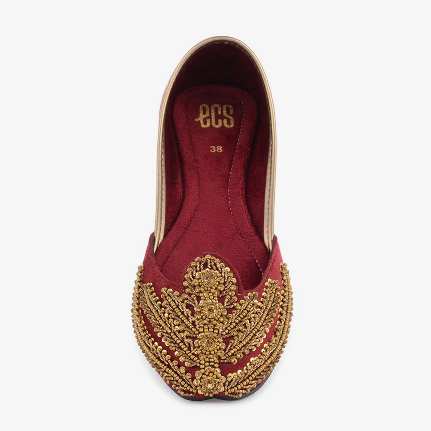 Introducing our "Velvet Whispers" Khussa – a harmonious blend of tradition and contemporary flair. The plush velvet upper and matching velvet lining envelop your feet in luxurious comfort. With a classic round toe shape and flat heel, these Khussas offer timeless elegance. The intricate embroidery detailing adds a touch of artistry, making each step a graceful statement. The "Silky Finish" enhances the overall appeal, ensuring a smooth and refined touch. Slip into these "Velvet Whispers" for an enchanting journey where comfort meets sophistication – a perfect choice for those who appreciate both style and tradition.