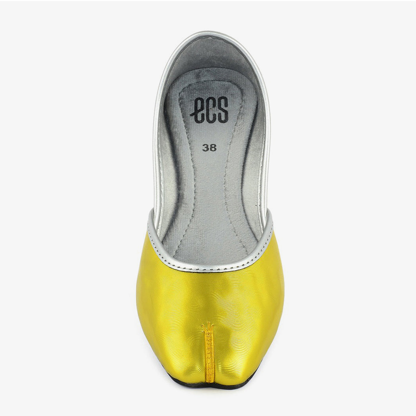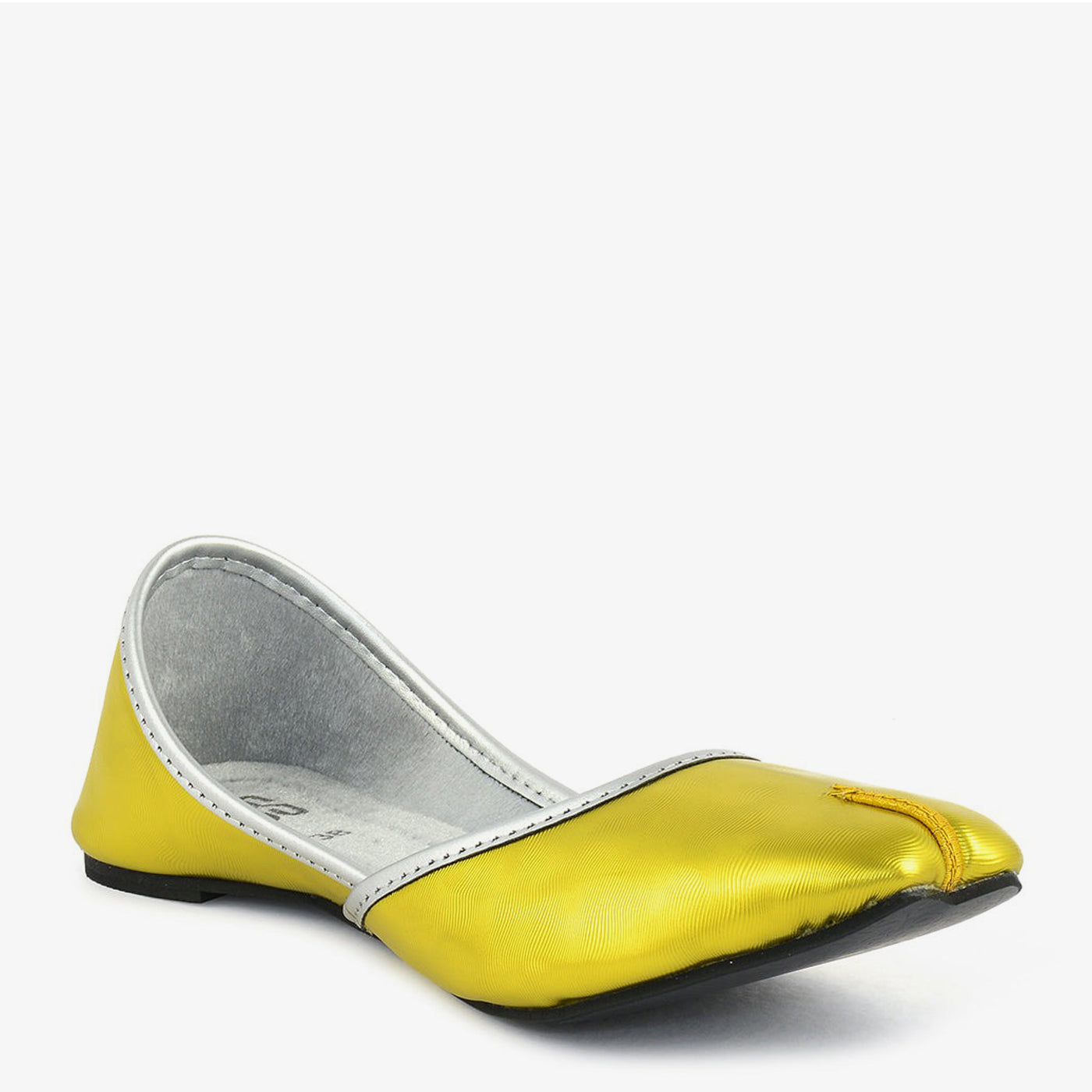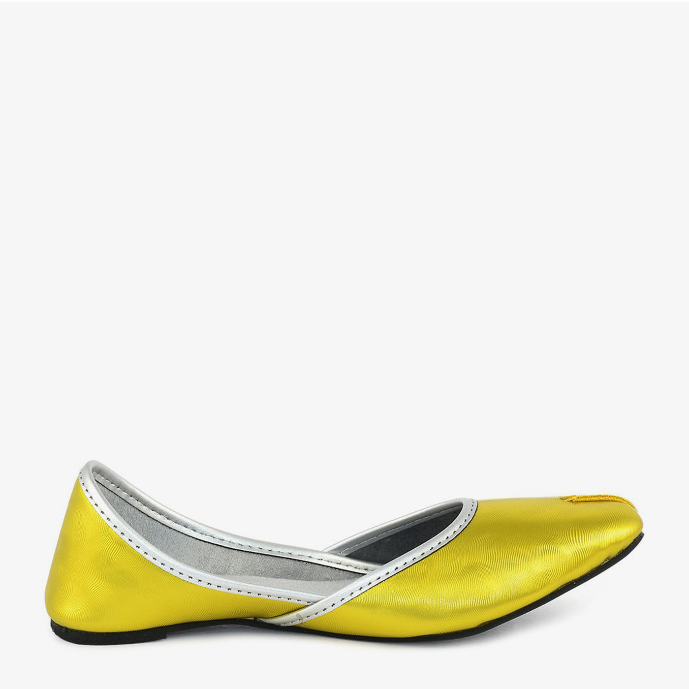 Delicate yet striking, this khussa dazzles with its smooth golden finish and sleek silver piping. Perfect for elevating festive wear or semi-formal looks.