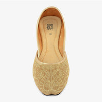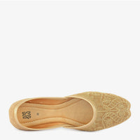 Styling Tips: Pair these khussas with a deep-toned formal shalwar kameez or a traditional lehenga for a truly grand look. They also perfectly complement a classic black and gold outfit, adding an extra layer of shimmer and grace.