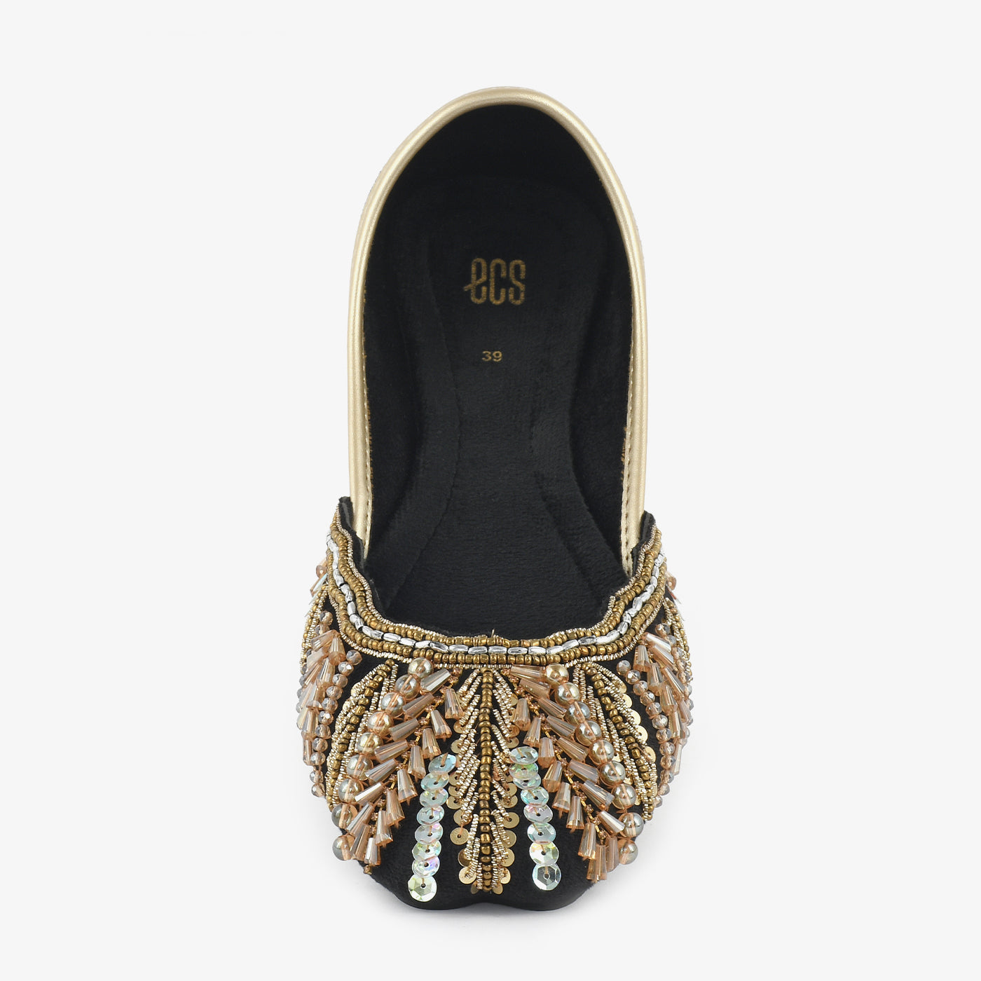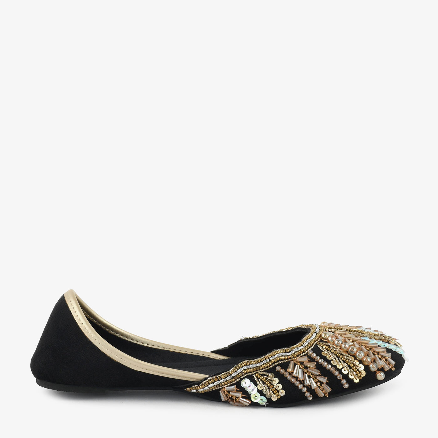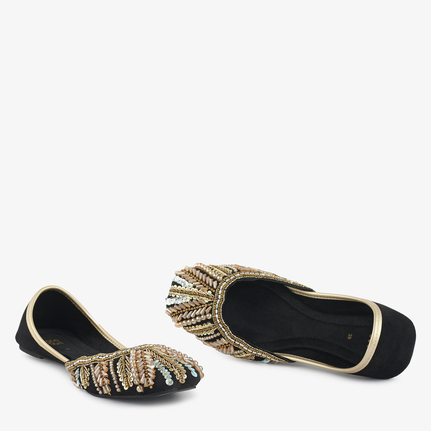 This traditional khussa is adorned with intricate hand-style embroidery that enhances its cultural charm. The flat sole ensures comfort, while the pointed toe keeps the look authentic. Ideal for festive...