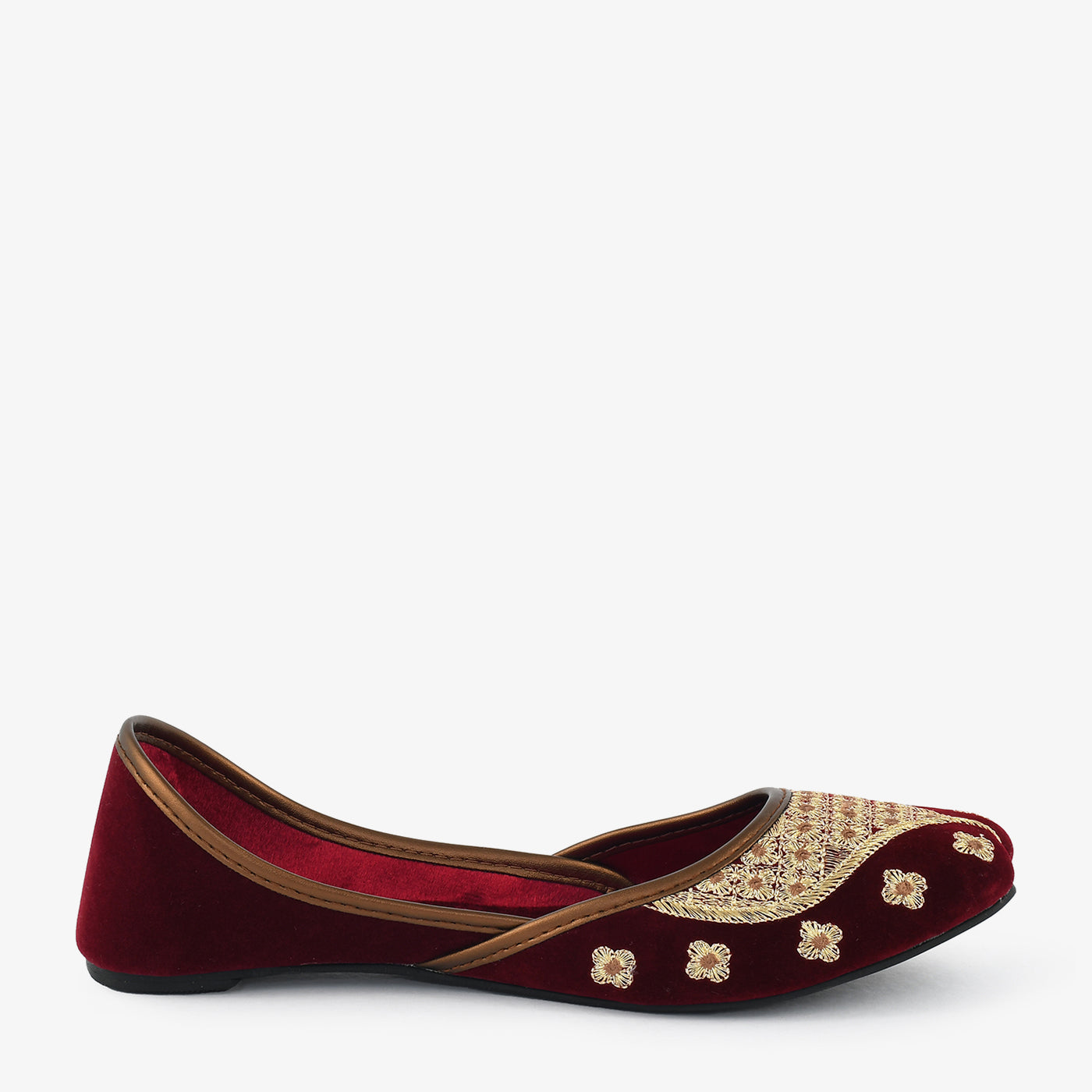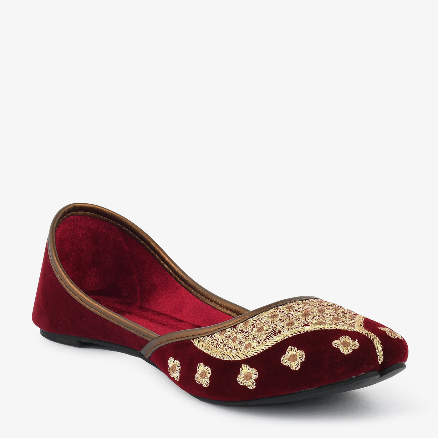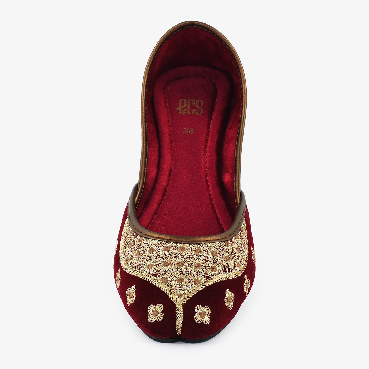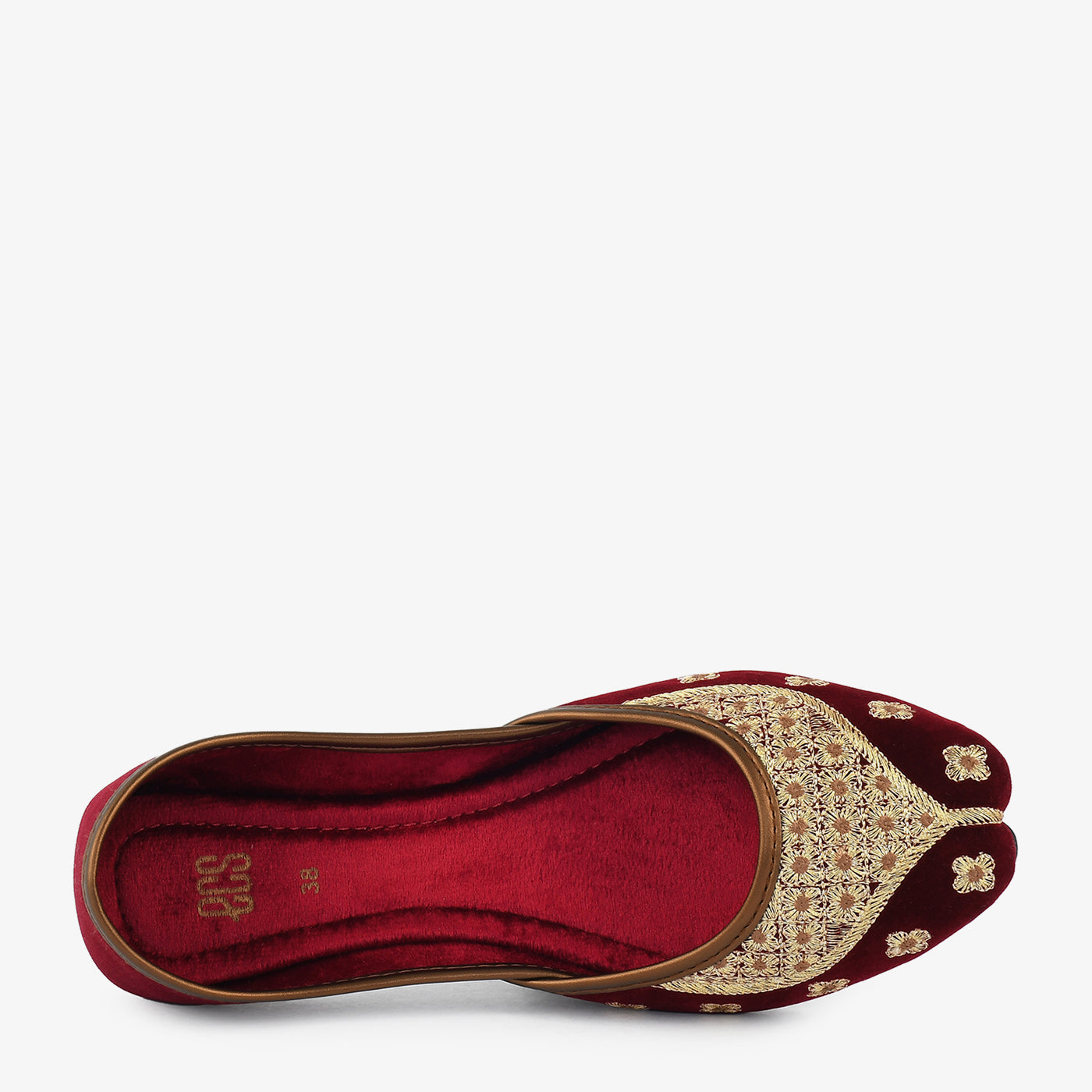 Indulge in vibrant style with these festive khussas. Crafted with a luxurious velvet material and adorned with colorful embroidery, these khussas exude a festive spirit. The pointed toe and comfortable sole make them perfect for special occasions.