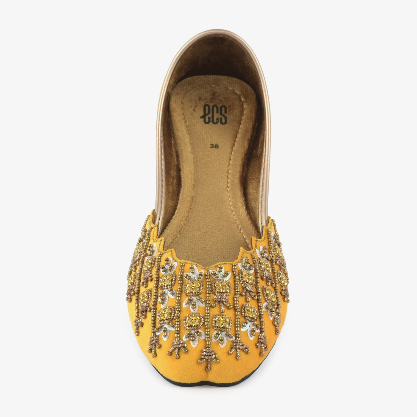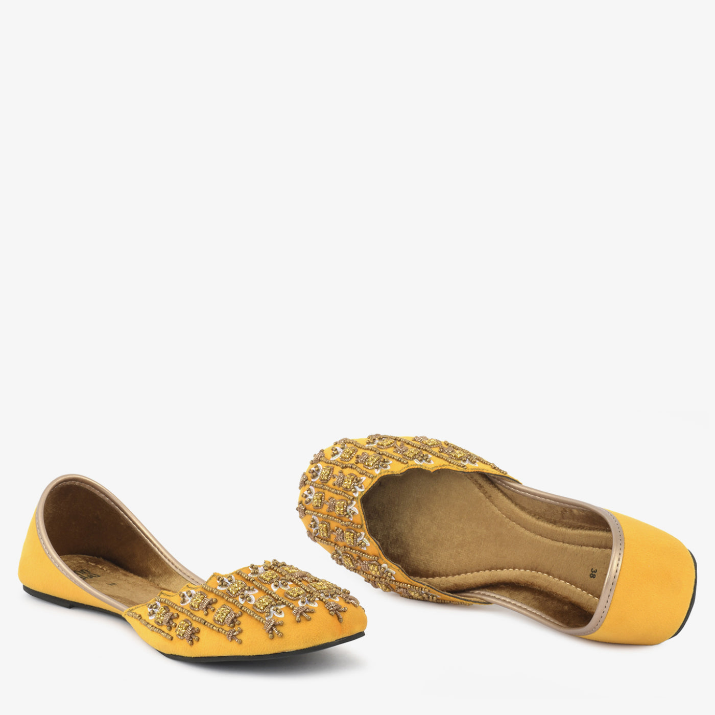 Add a touch of vibrant detail to your traditional attire with these Beaded Festive Khussas. Featuring intricate beadwork on the toe, these khussas offer a festive and eye-catching aesthetic. The classic design ensures comfort and style for cultural celebrations and special occasions.