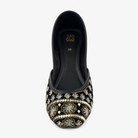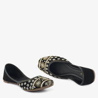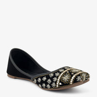 Add a touch of sophisticated elegance to your traditional attire with these Black Fancy Khussas. Featuring intricate golden threadwork and embellishments against a classic black backdrop, these khussas offer a regal and versatile appeal. The timeless design ensures comfort and style for cultural celebrations and special occasions.