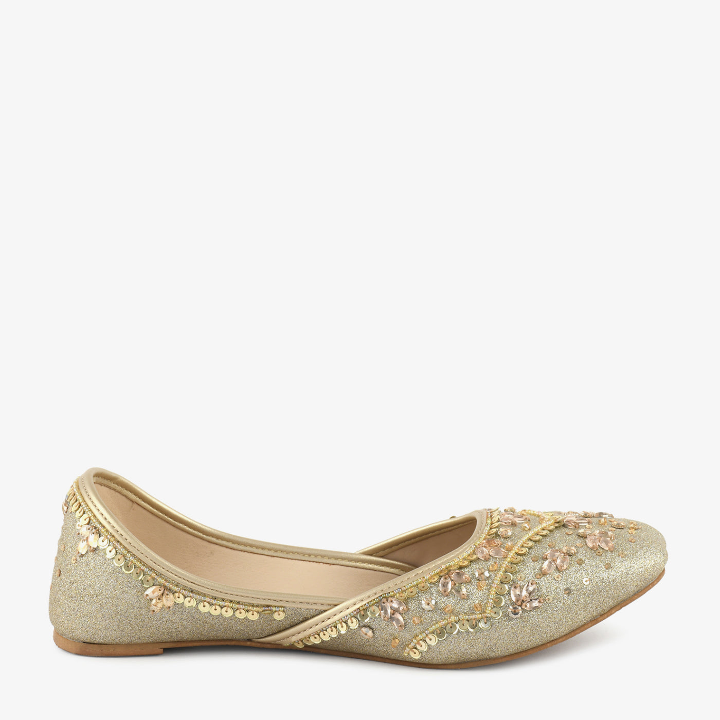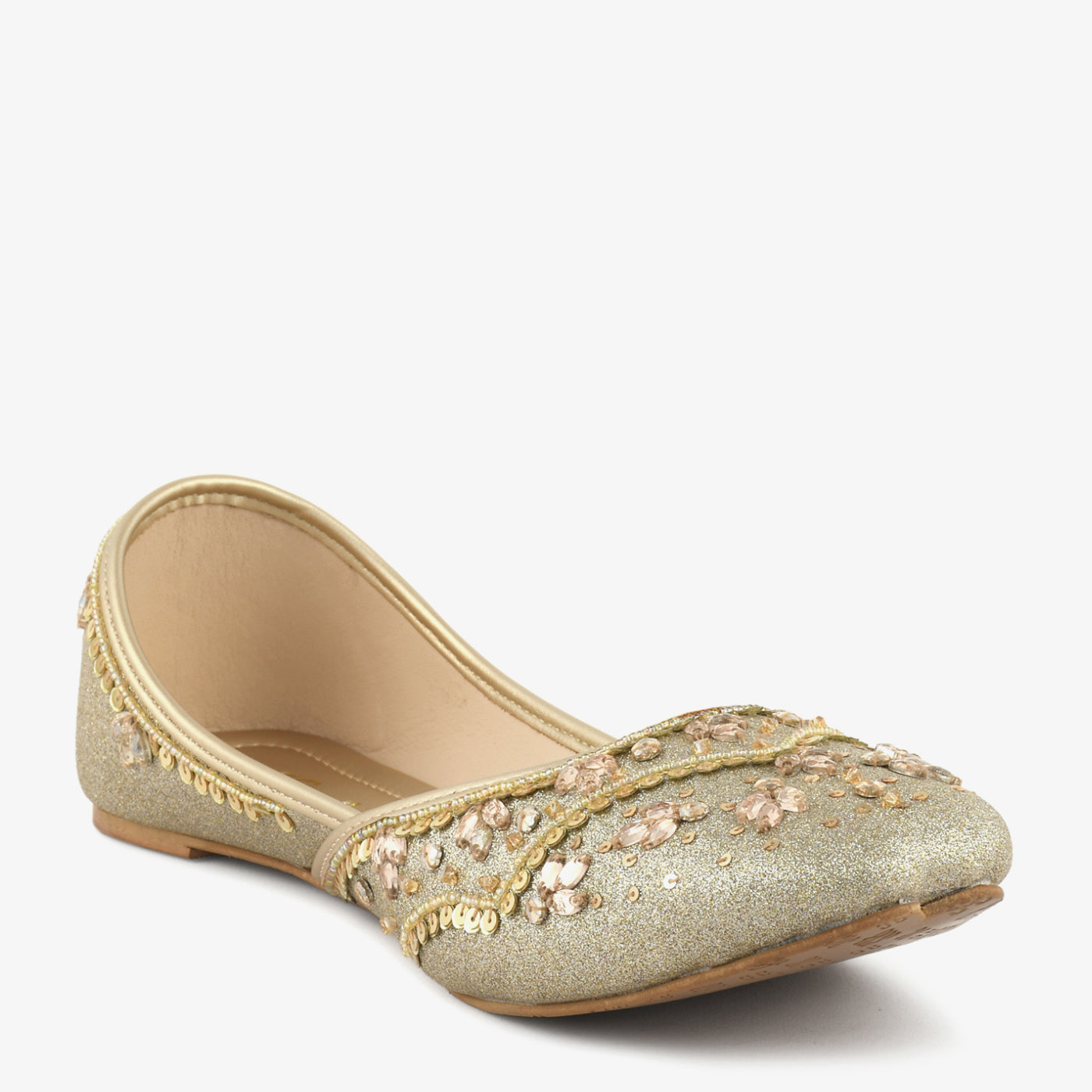 This traditional khussa features detailed craftsmanship that reflects cultural elegance. The flat sole offers comfort for extended wear. Its refined shape and decorative finish make it suitable for festive occasions....