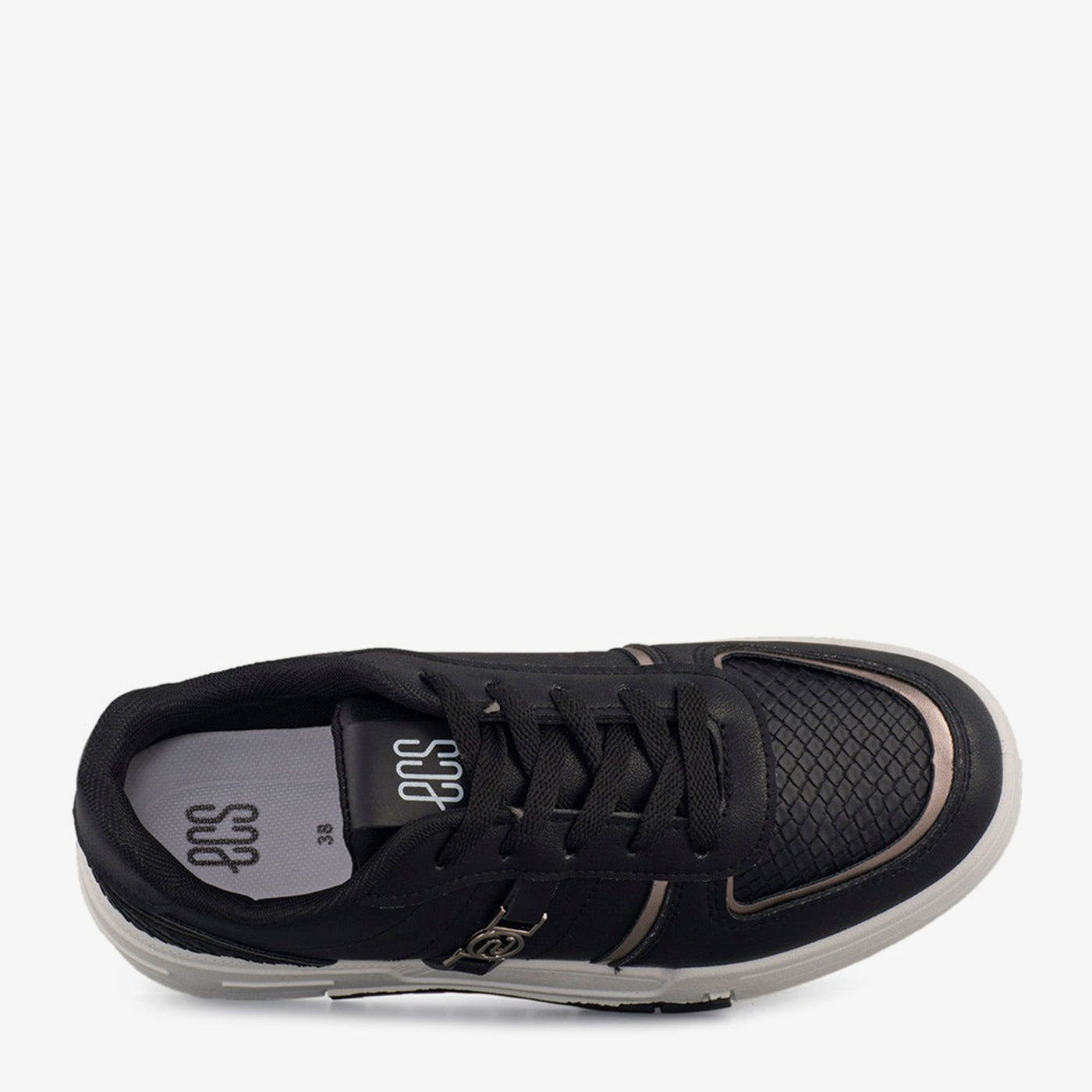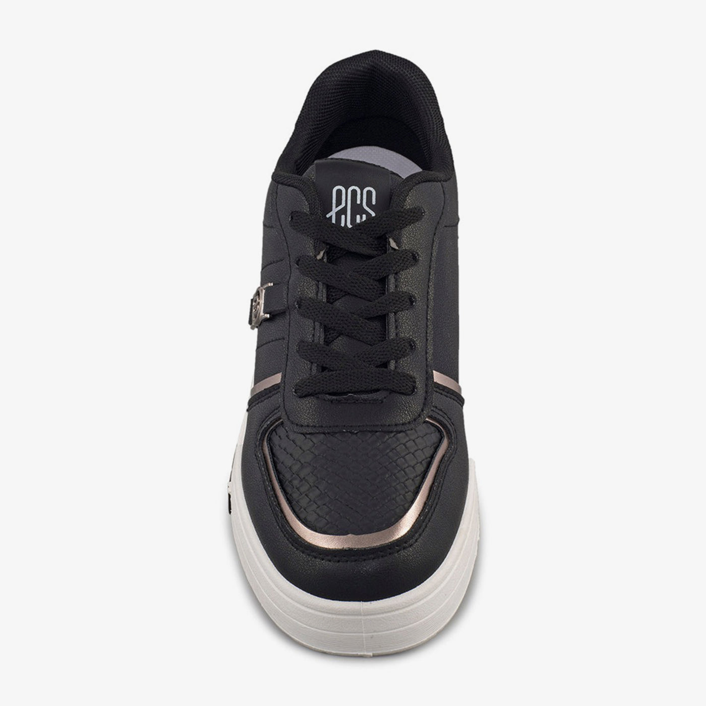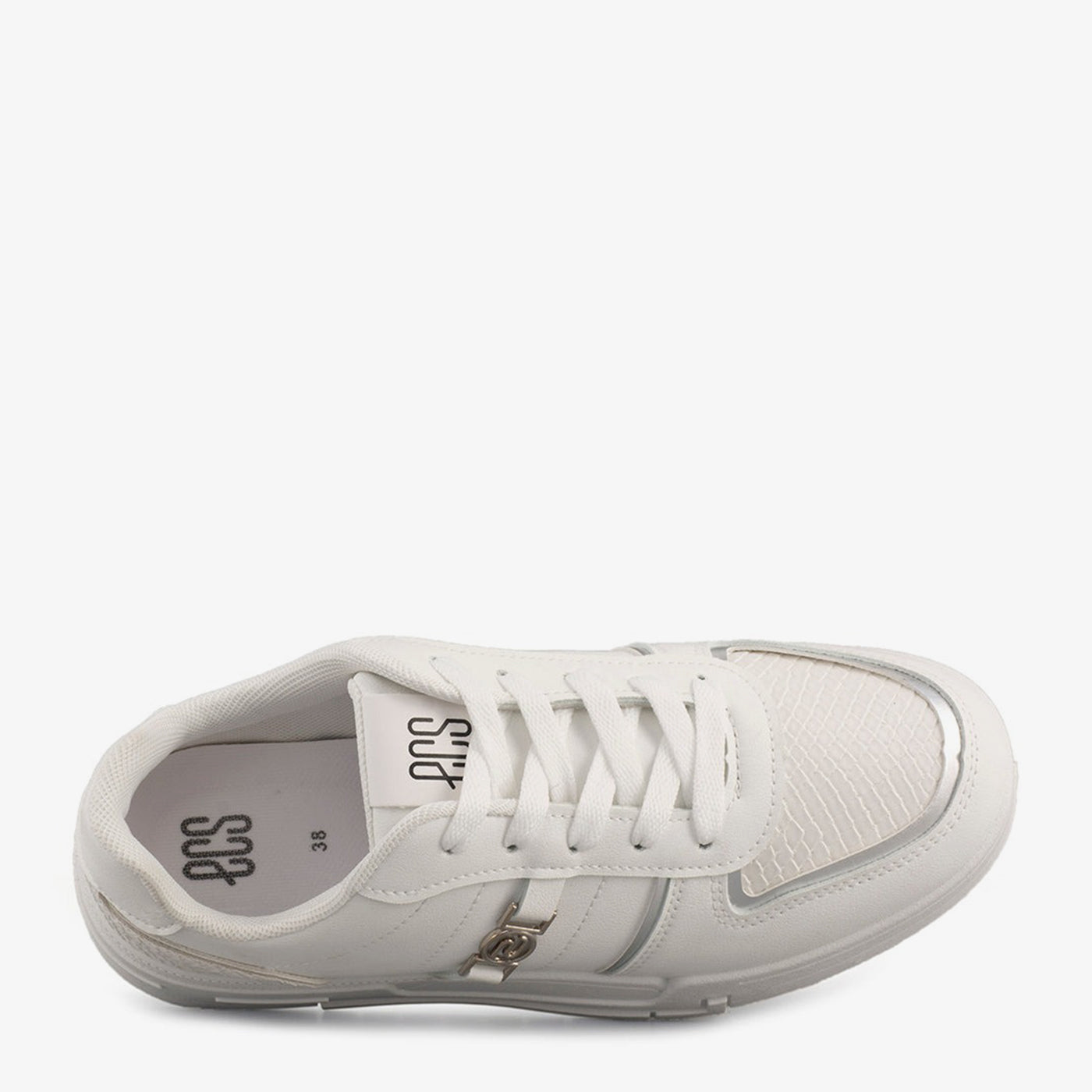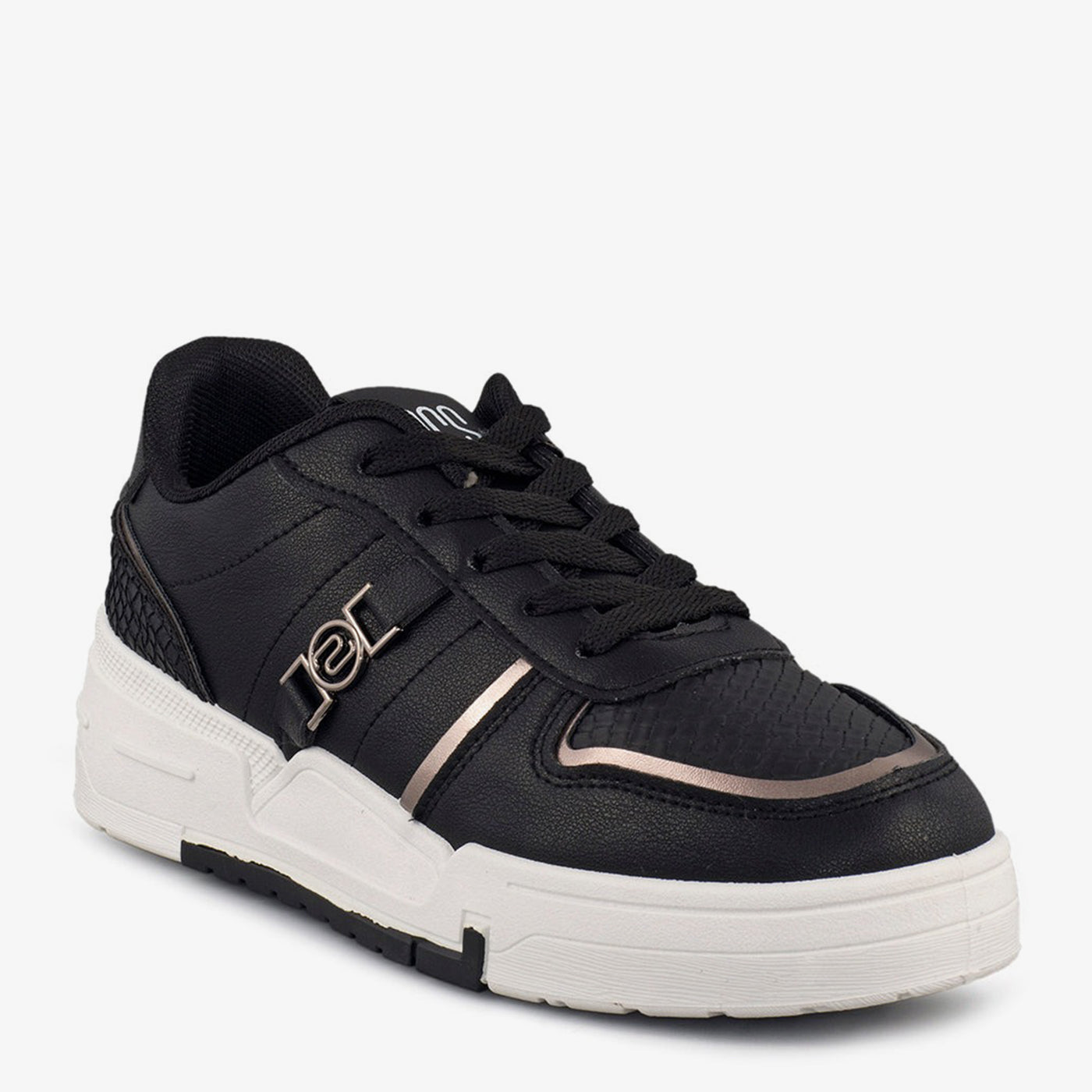 Combining monochrome appeal with metallic trims, this sneaker offers a sleek finish for daily wear. The textured panels and embossed logo add sporty sophistication.