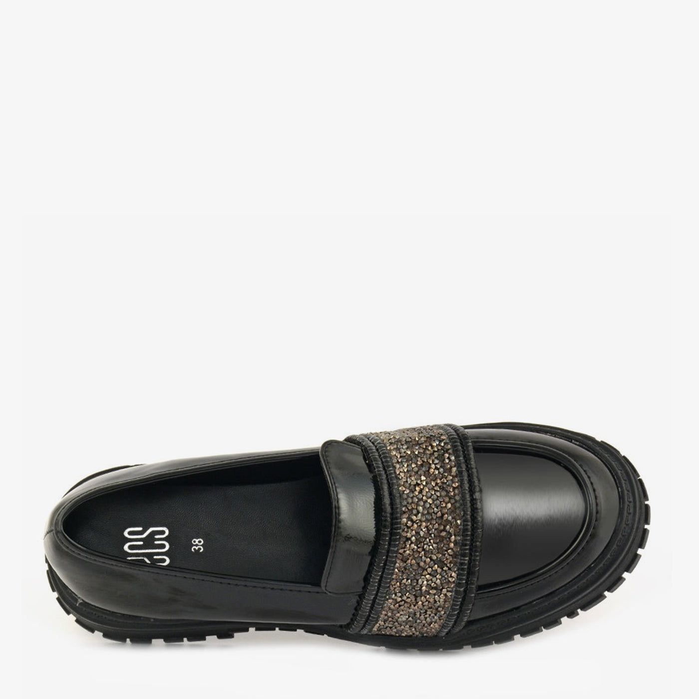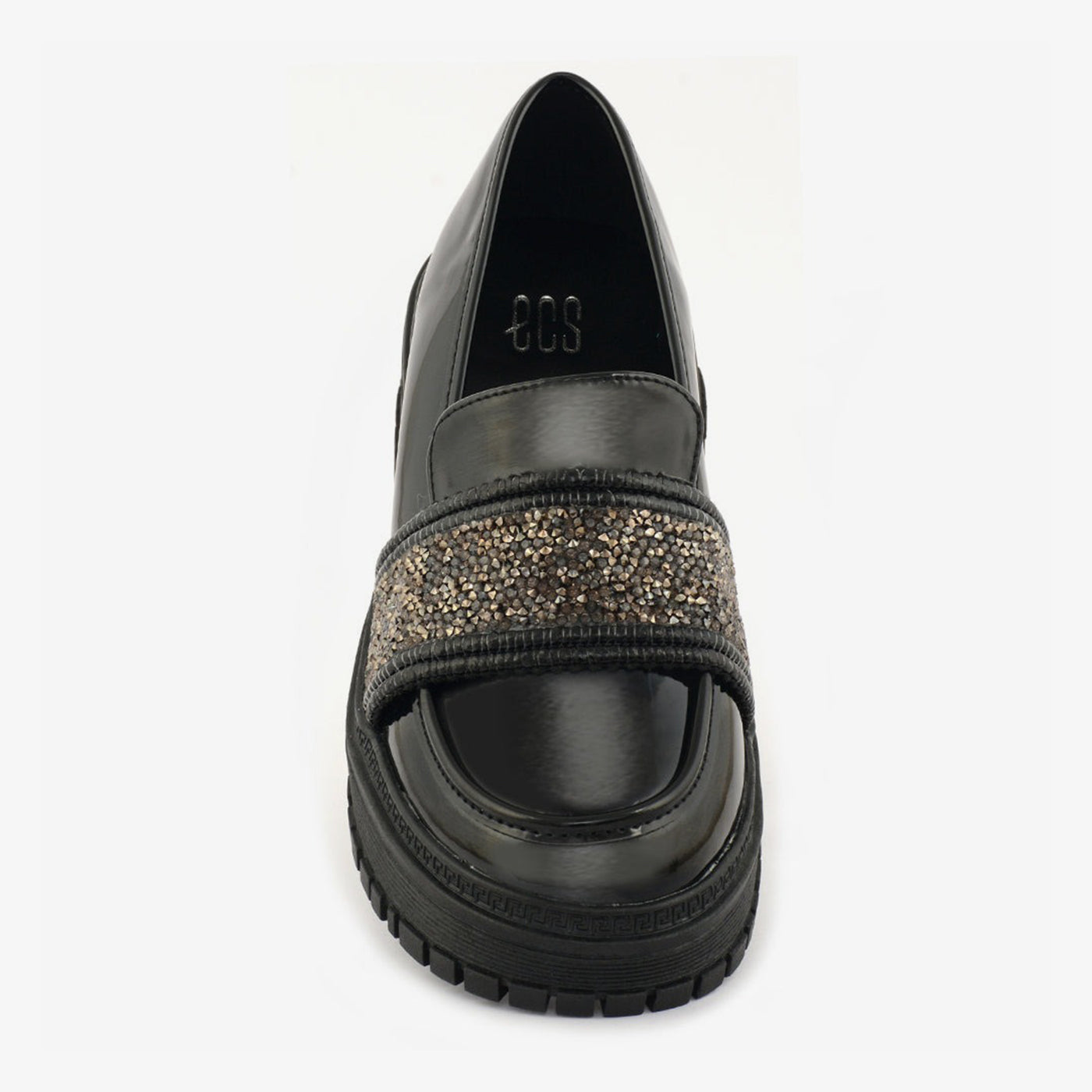 Bold and statement-making, the Urban Edge Loafer features a chunky sole and a smooth finish, accented by crystal embellishments. It brings together everyday comfort with a touch of flair.