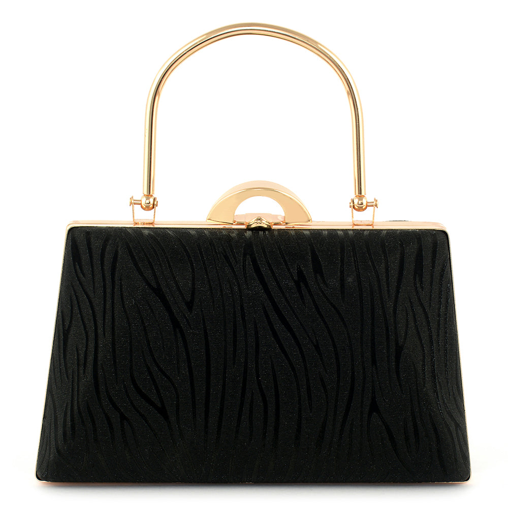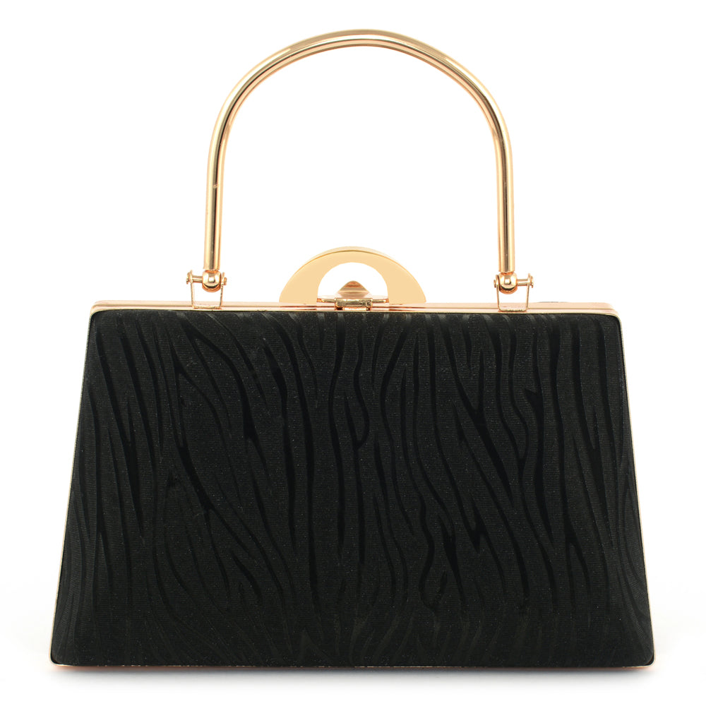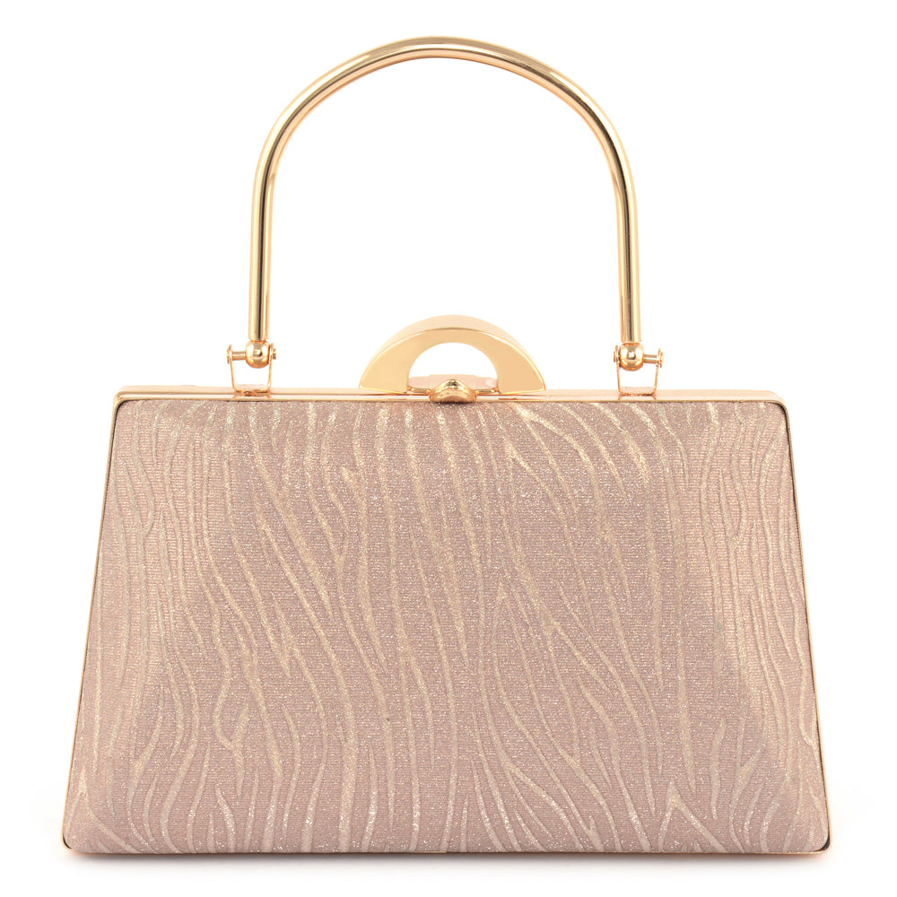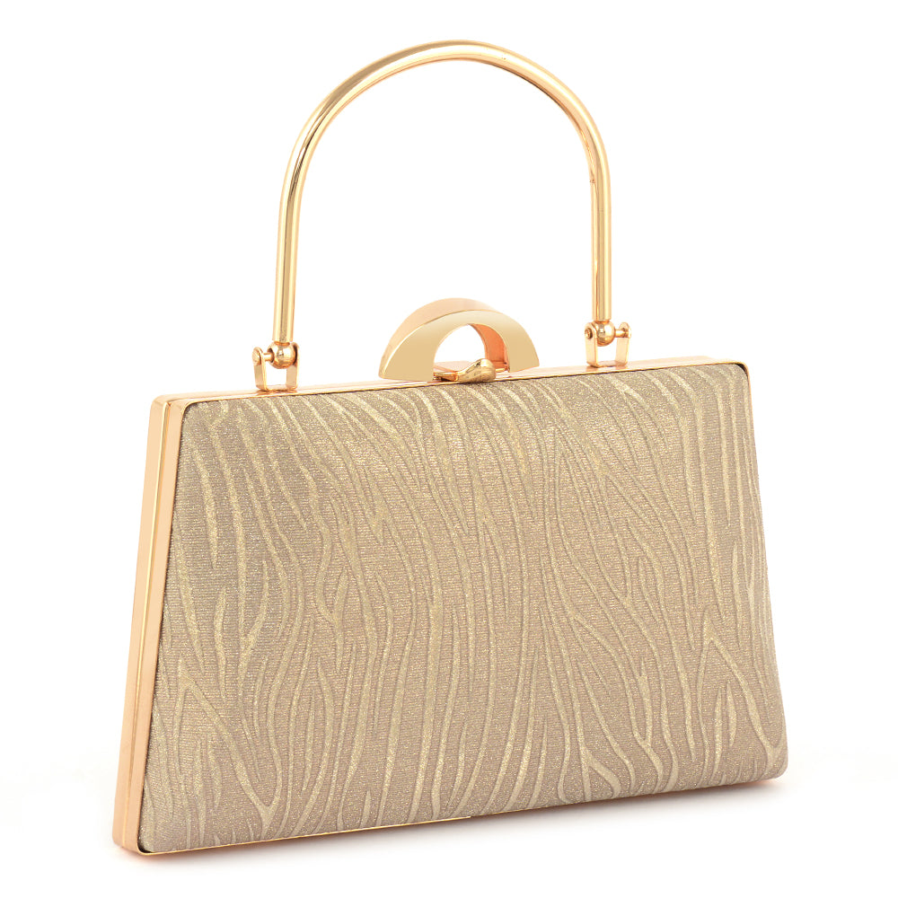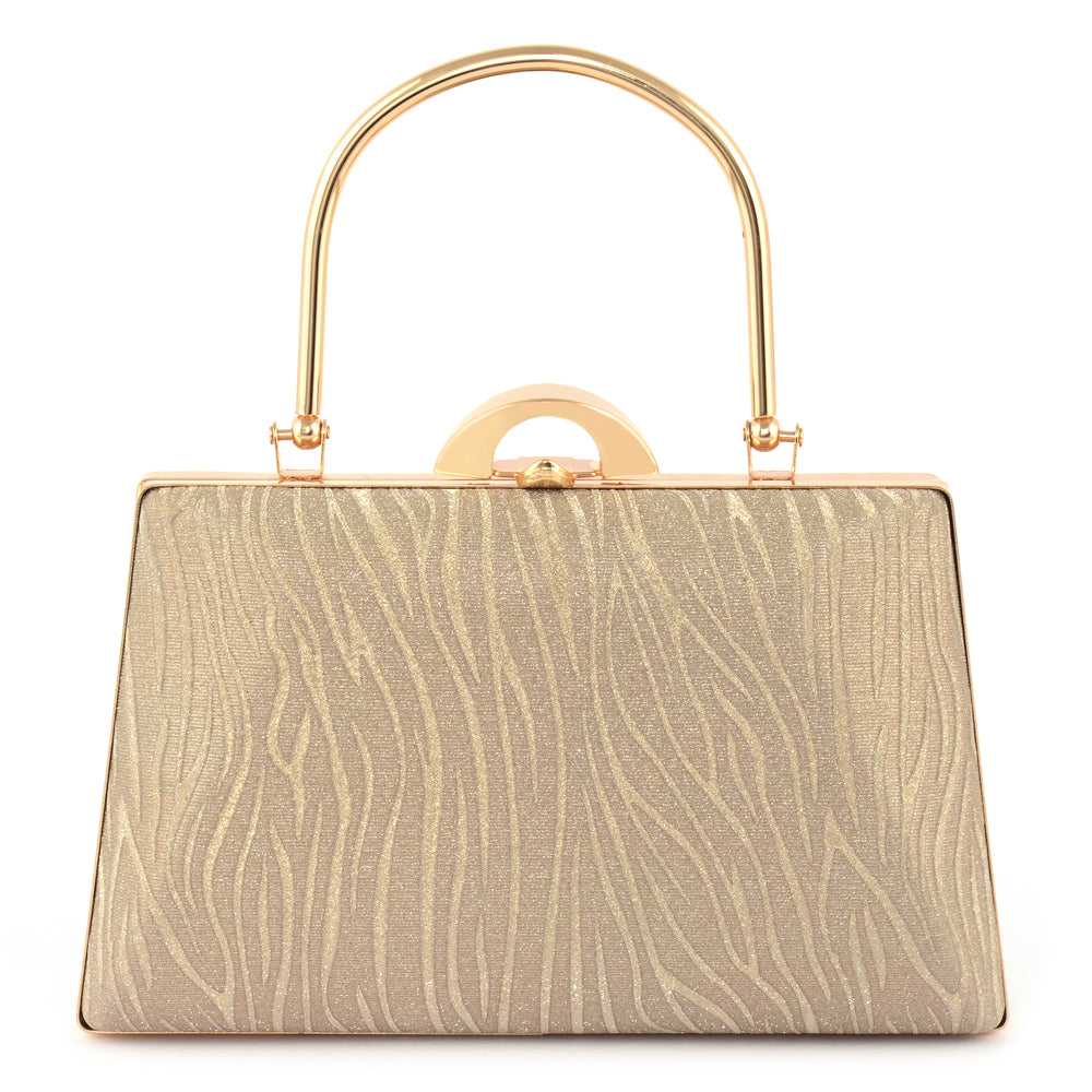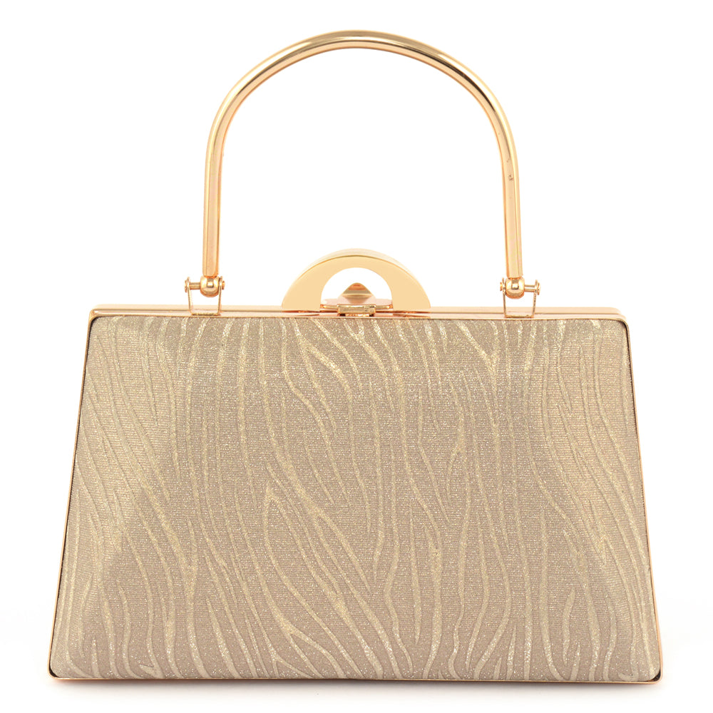 • Style: Gold frame with sculpted metallic handle and unique clasp